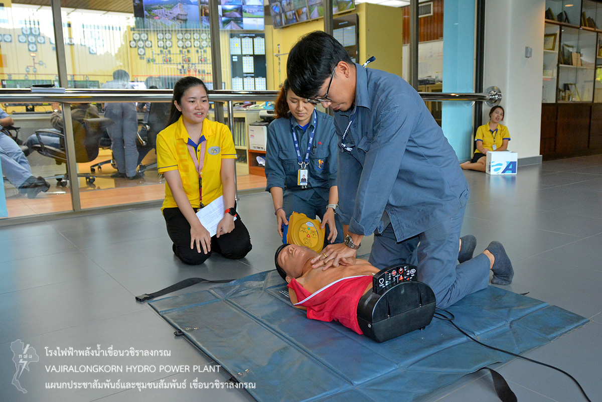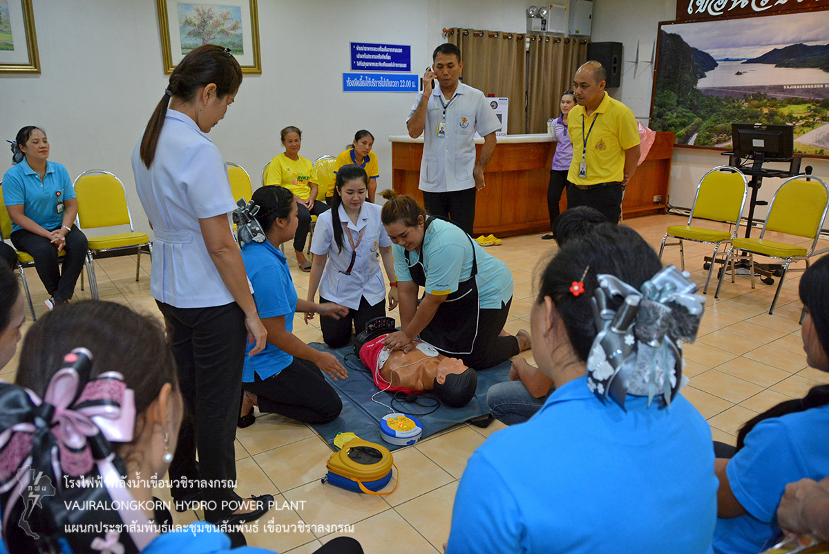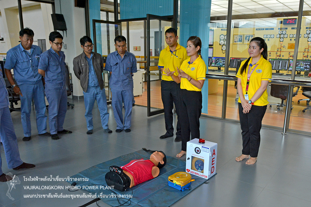 โดยมีวัตถุประสงค์เพื่อให้ผู้เข้ารับการอบรมมีความรู้ ความเข้าใจในการช่วยชีวิตขั้นพื้นฐานและการใช้เครื่อง AED ในการช่วยชีวิตคนขั้นพื้นฐานได้ และได้มีการติดตั้งเครื่องกระตุกหัวใจไฟฟ้าอัตโนมัติ (AED) จำนวน 3 เครื่อง ติดตั้งบริเวณโรงไฟฟ้าชั้น 5 ร้านอารเรือนเขาแหลม และแผนกหรปว-ฟ.
