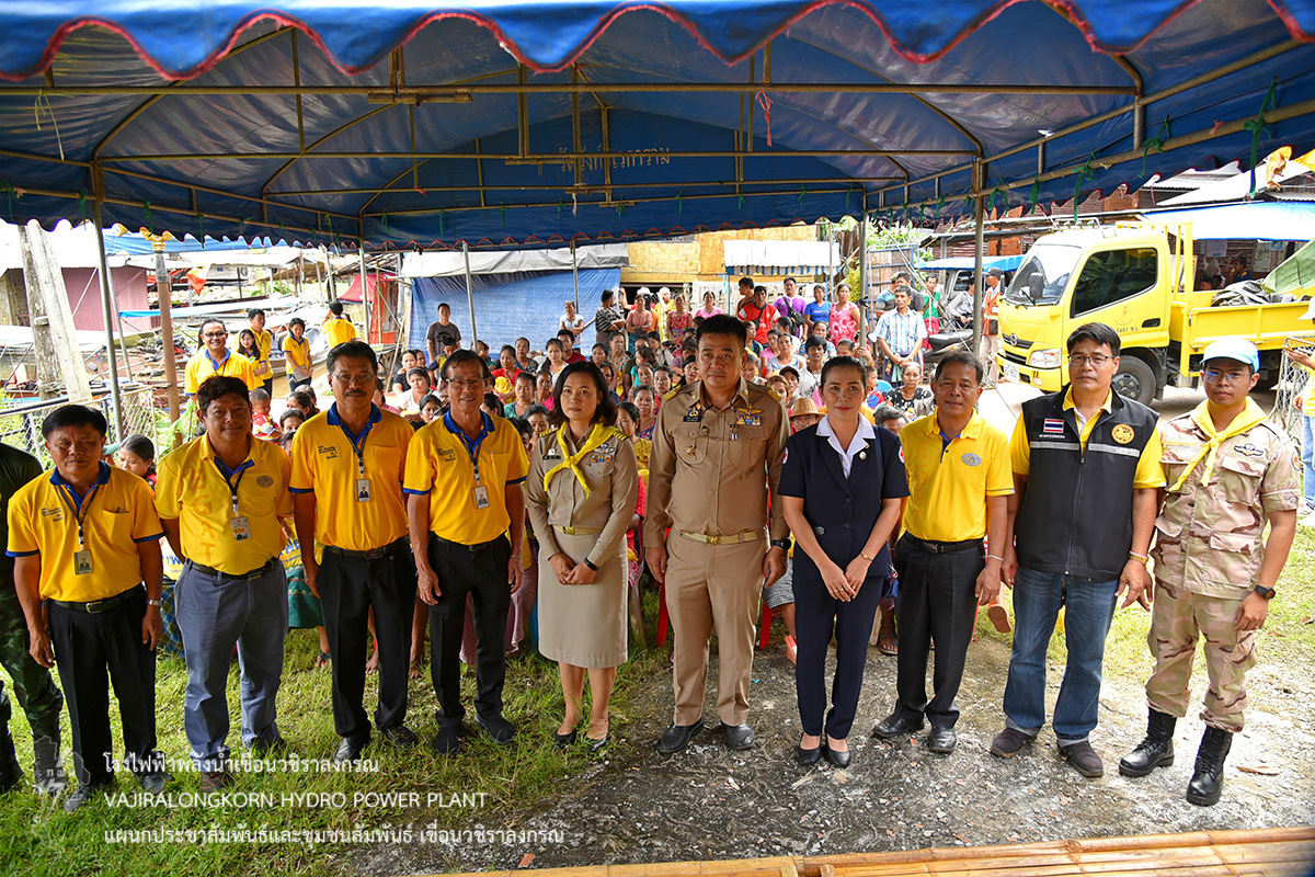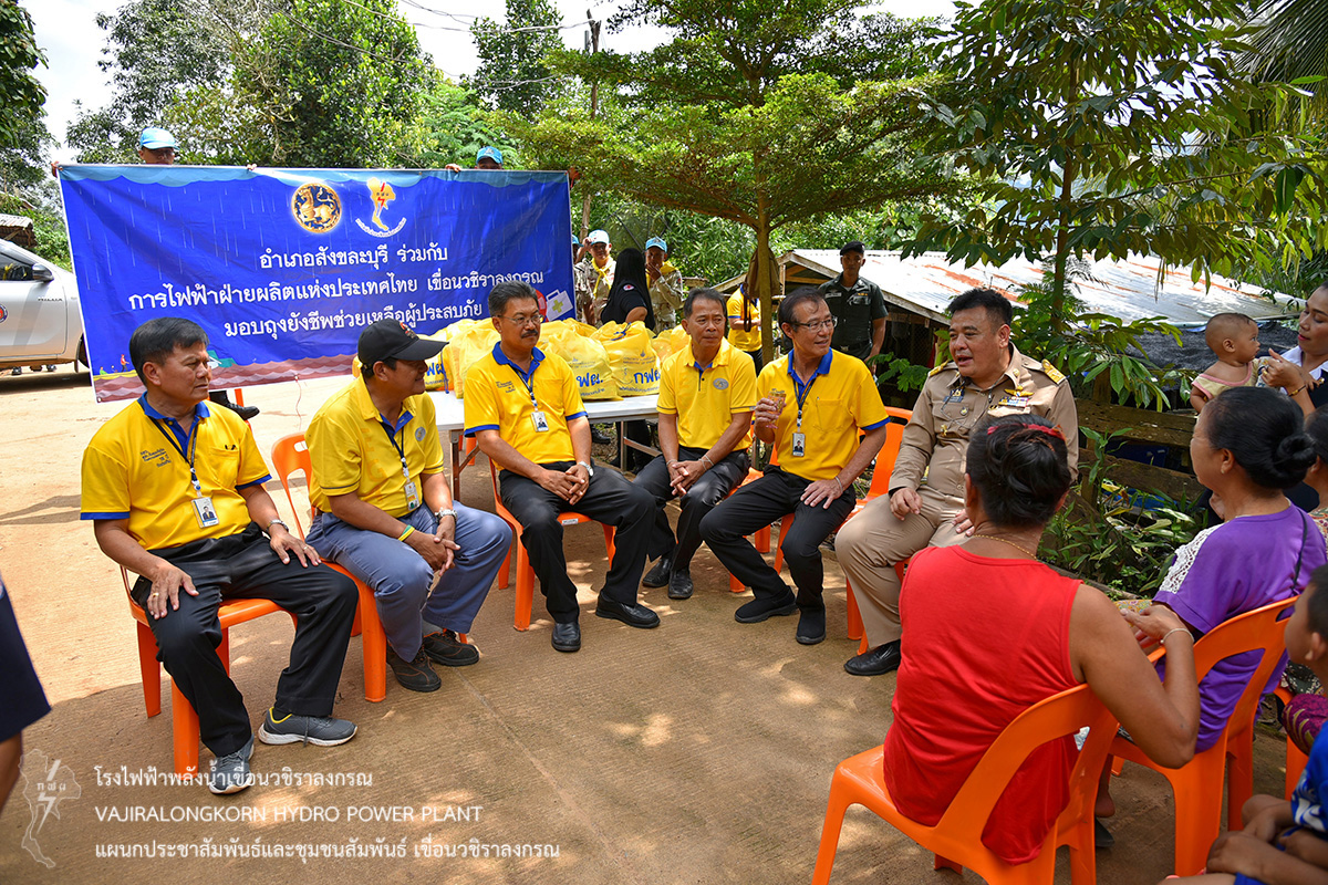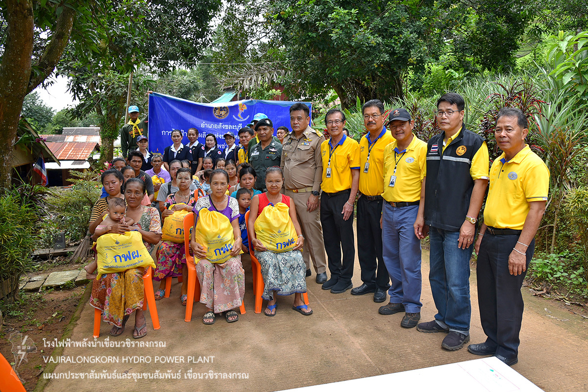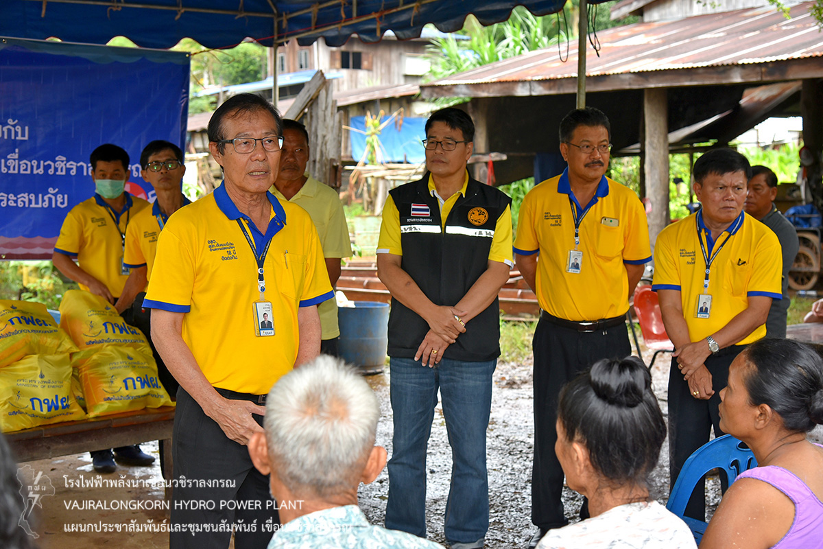 โดยมอบถุงยังชีพให้กับประชาชนที่ประสบอุทกภัย ณ บ้านเรดาห์ จำนวน 46 ราย ชุมชนบริเวณริมฝั่ง สะพานมอญ จำนวน 110 ราย ณ ท่าเรือท่องเที่ยว และชุมชนบ้านหลังเขา จำนวน 16 ราย เป็นจำนวนทั้งหมด 172 ราย โดยมีนายปกรณ์ กรรณวัลลี นายอำเภอสังขละบุรี ตัวแทนผู้ประสานงานชุมชน และประชาชนที่รับมอบถุงยังชีพ ร่วมให้การต้อนรับ คณะการไฟฟ้าฝ่ายผลิตแห่งประเทศไทย เขื่อนวชิราลงกรณ และคอยอำนวยความสะดวก และร่วมมอบสิ่งของเครื่องอุปโภคและบริโภคให้กับประชาชน เพื่อช่วยบรรเทาทุกข์และเป็นขวัญกำลังใจในการดำรงชีพ ของพี่น้องประชาชนชาวสังขละบุรีต่อไป