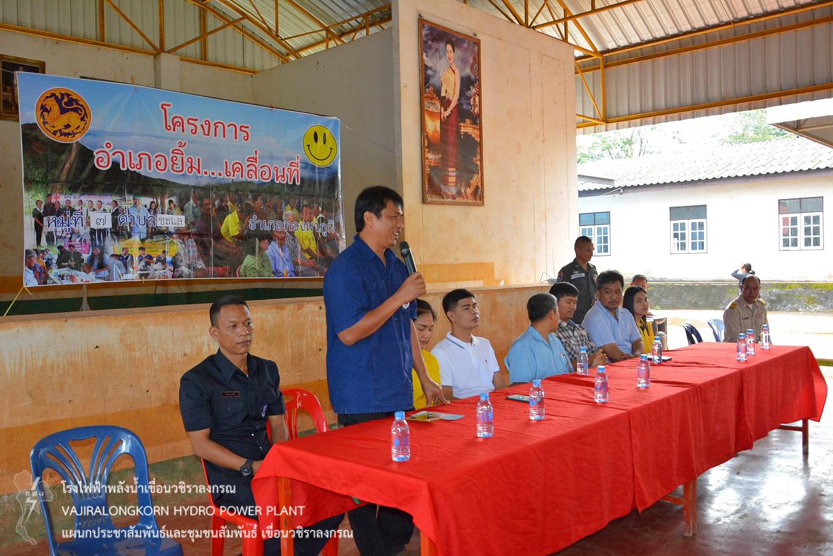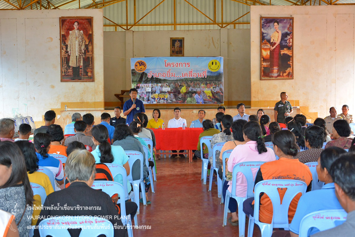 เมื่อวันที่ 19 กันยายน 2562 นายอำนวย เข็มเงิน หัวหน้าแผนกบำรุงรักษาบริเวณ กองบำรุงรักษาโยธา เขื่อนวชิราลงกรณ เป็นตัวแทนผู้เขื่อนวชิราลงกรณ ร่วมโครงการอำเภอยิ้ม...เคลื่อนที่ ของอำเภอทองผาภูมิ ณ อาคารเอนกประสงค์ หมู่ที่ 7 ตำบลชะแล อำเภอทองผาภูมิ จังหวัดกาญจนบุรี โดยเขื่อนวชิราลงกรณได้นำจุลินทรีย์ EM มอบให้กับประชาชนที่มาเข้าเข้าร่วมโครงการฯ