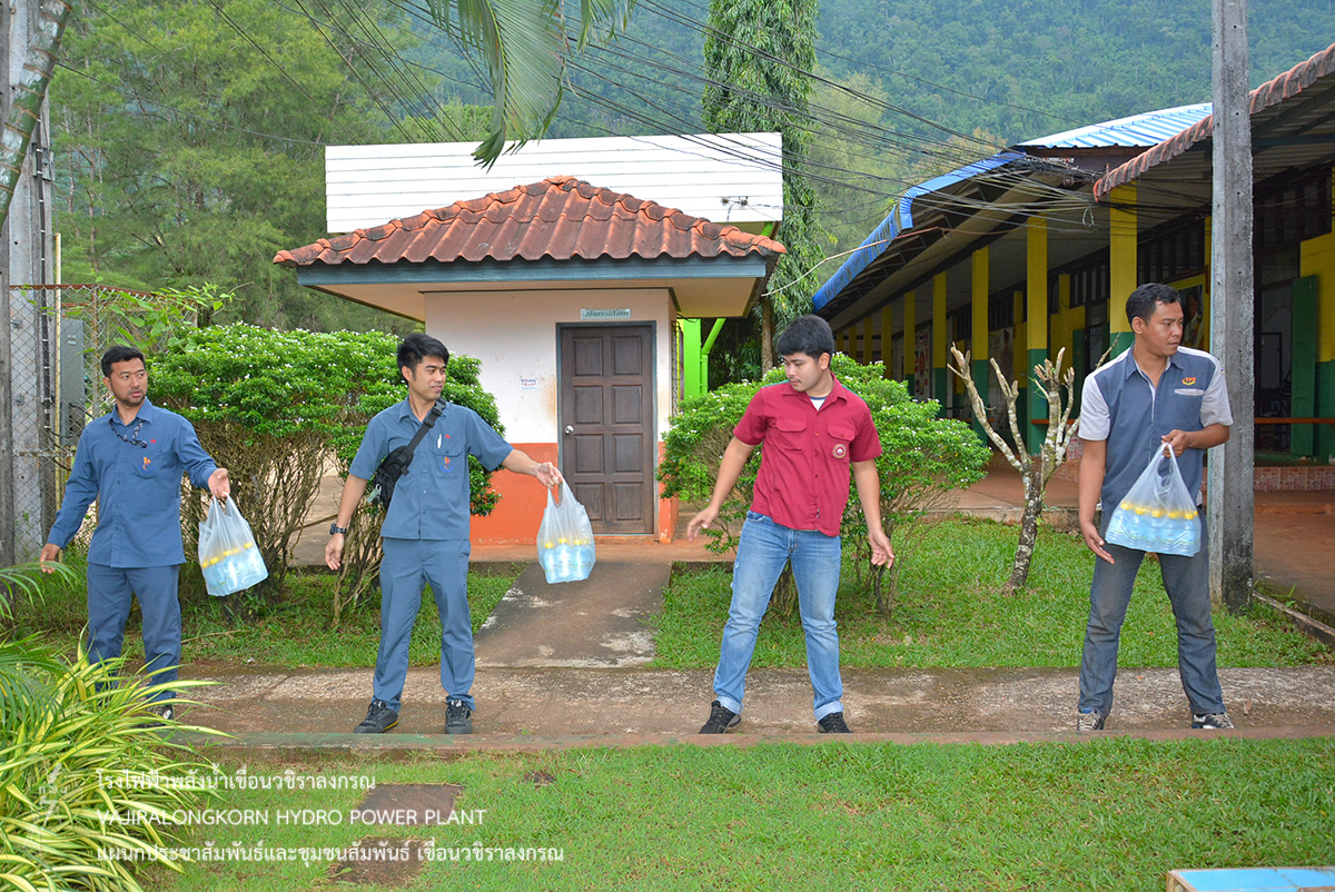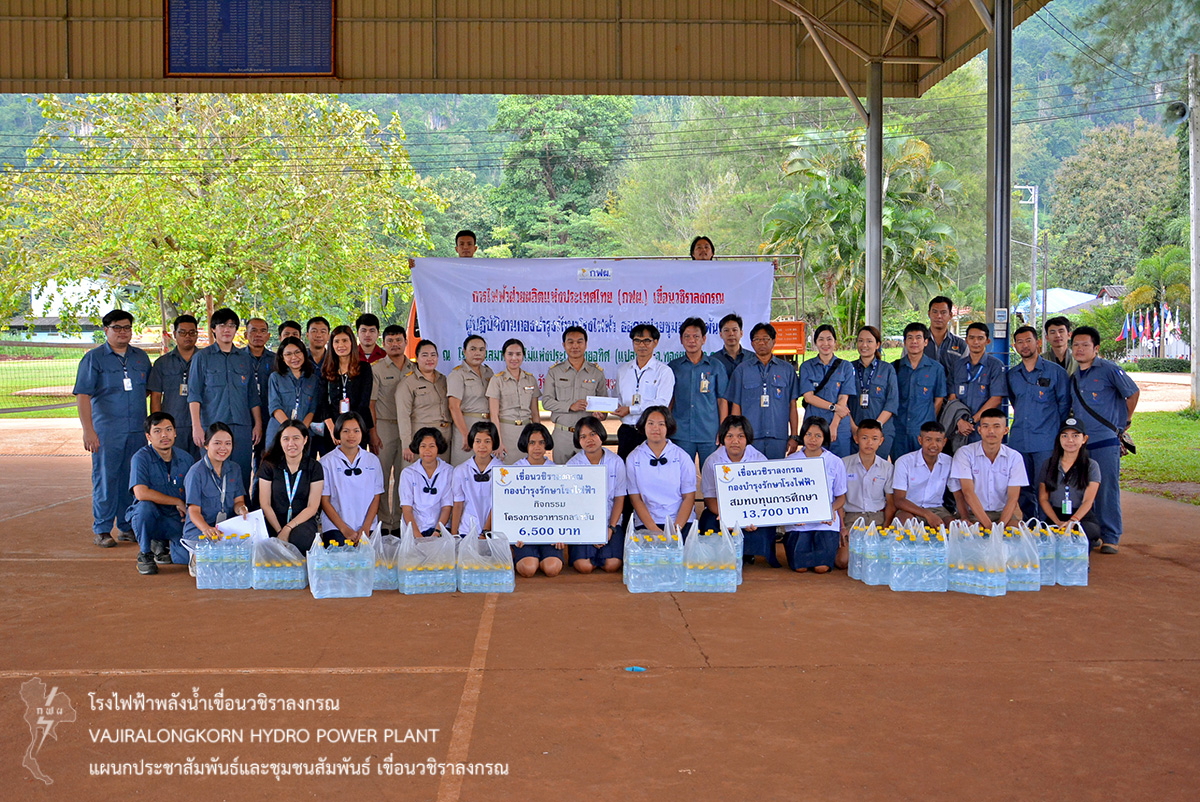 เมื่อวันที่ 23 กันยายน 2562 นายวีระพล สาระพจน์ หัวหน้ากองบำรุงรักษาโรงไฟฟ้า เขื่อนวชิราลงกรณ นำผู้ปฏิบัติงานกองบำรุงรักษาโรงไฟฟ้า จัดออกหน่วยโครงการชุมชนสัมพันธ์ ณ โรงเรียนสมาคมป่าไม้แห่งประเทศไทยอุทิศ ตำบลห้วยเขย่ง อำเภอทองผาภูมิ จังหวัดกาญจนบุรี มอบน้ำดื่ม มอบยาสามัญประจำบ้าน มอบเงินสมทบทุนการศึกษาเด็กเรียน จำนวน 13,700 บาท และมอบเงินสมทบโครงการอาหารกลางวัน จำนวน 6,500 บาท ให้กับโรงเรียนสมาคมป่าไม้แห่งประเทศอุทิศ สำหรับไว้ใช้ในภารกิจของโรงเรียน