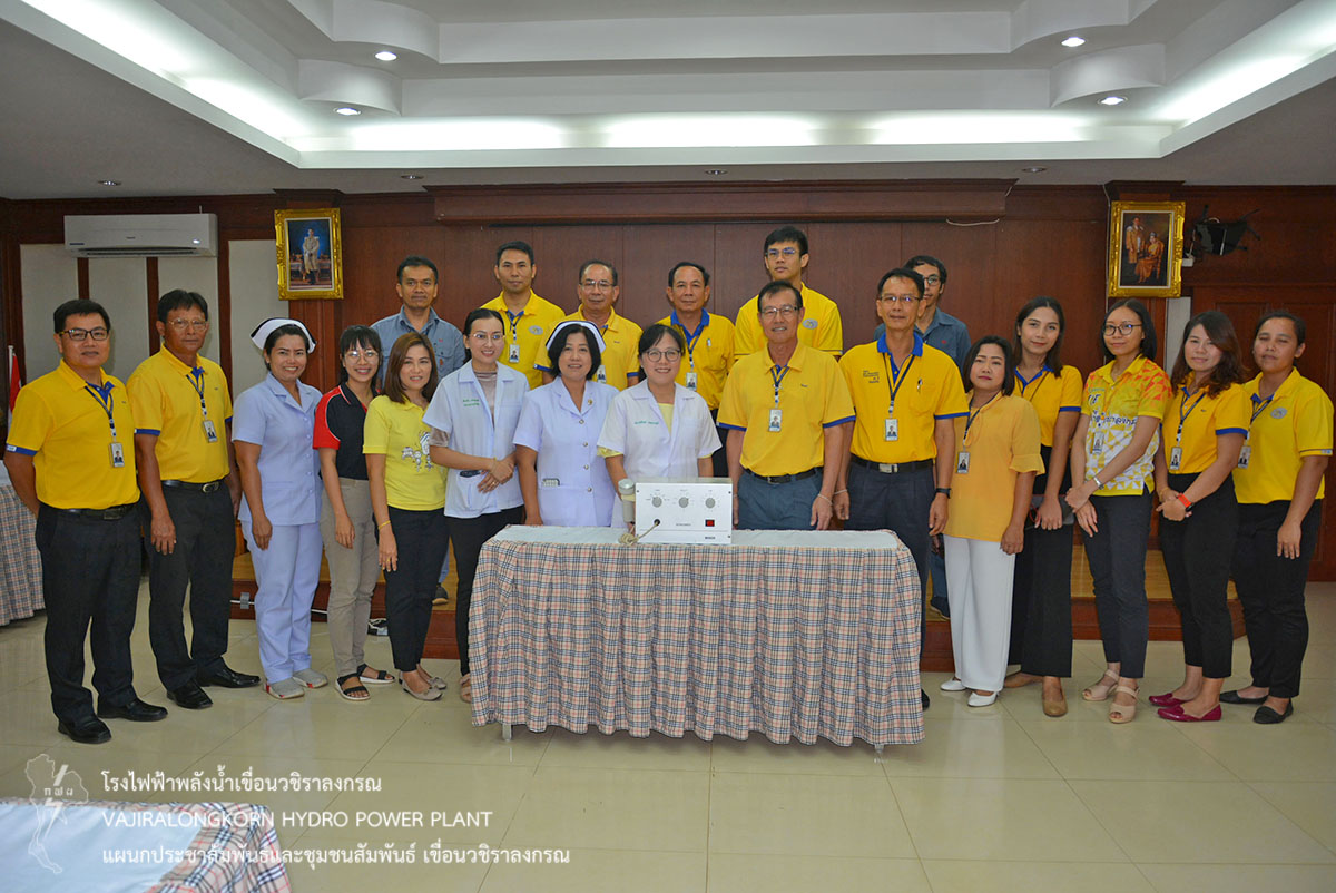 เมื่อวันที่ 28 ตุลาคม 2560 นายไววิทย์ แสงพานิชย์ ผู้อำนวยการเขื่อนวชิราลงกรณ มอบเครื่องอัลตร้าซาวด์กายภาพ จำนวน 1 เครื่อง ให้กับแพทย์หญิง นวลจันทร์ เวชสุวรรณมณี ผู้อำนวยการโรงพยาบาลทองผาภูมิ เป็นผู้รับมอบเพื่อใช้ในงานกายภาพบำบัด พร้อมด้วยนายธนสาร ฐานะวุฑฒ์ ผู้ช่วยผู้อำนวยการเขื่อนวชิราลงกรณ-2 และผู้บริหารผู้ปฏิบัติงานเขื่อนวชิราลงกรณ โดยมีคณะหมอและพยาบาลร่วมให้การต้อนรับ ณ โรงพยาบาลทองผาภูมิ ตำบลท่าขนุน อำเภอทองผาภูมิ จังหวัดกาญจนบุรี
