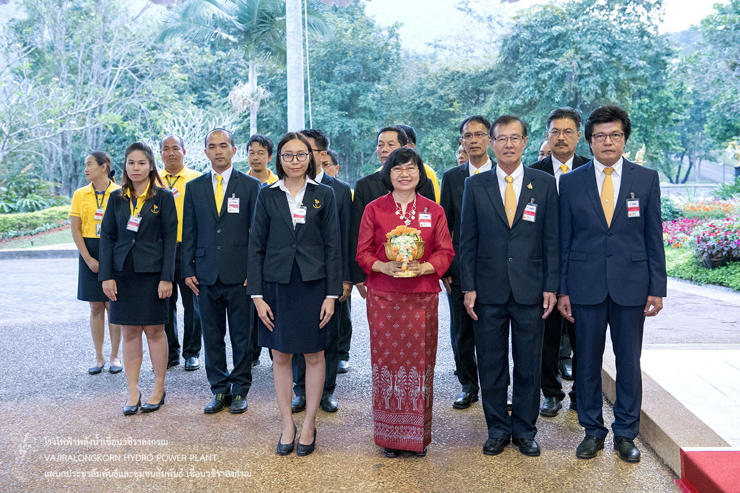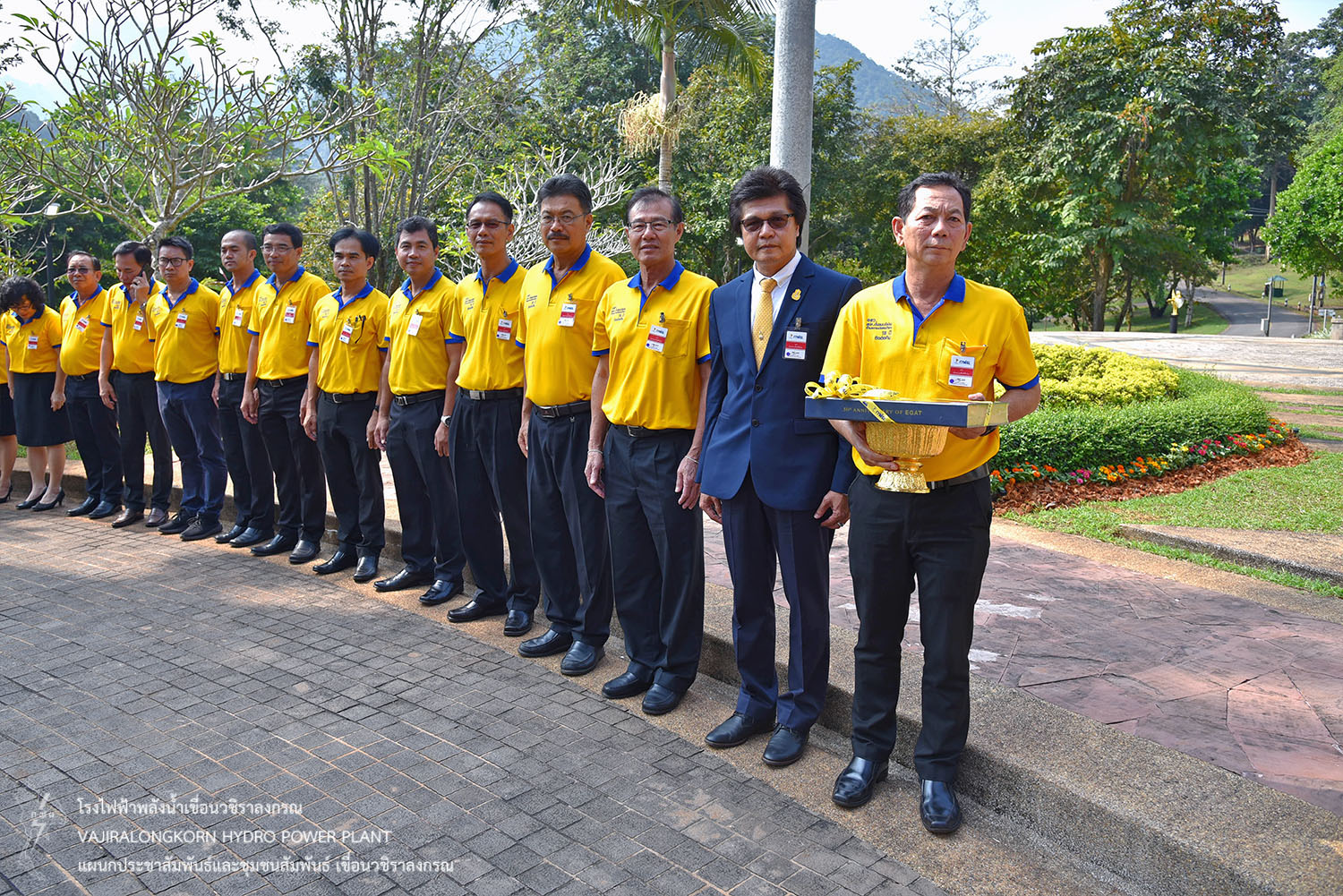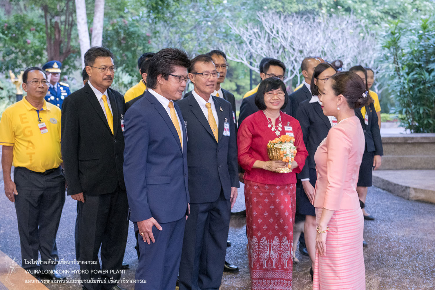 จากนั้นนายประเสริฐ อินทับ ผู้ช่วยผู้ว่าการผลิตไฟฟ้าพลังงานหมุนเวียน (ชฟม.) กล่าวถวายรายงาน พร้อมด้วยผู้บริหารและผู้ปฏิบัติงาน กฟผ. เข้ารับเสด็จ ณ เรือนรับรองพิเศษ เขื่อนวชิราลงกรณ