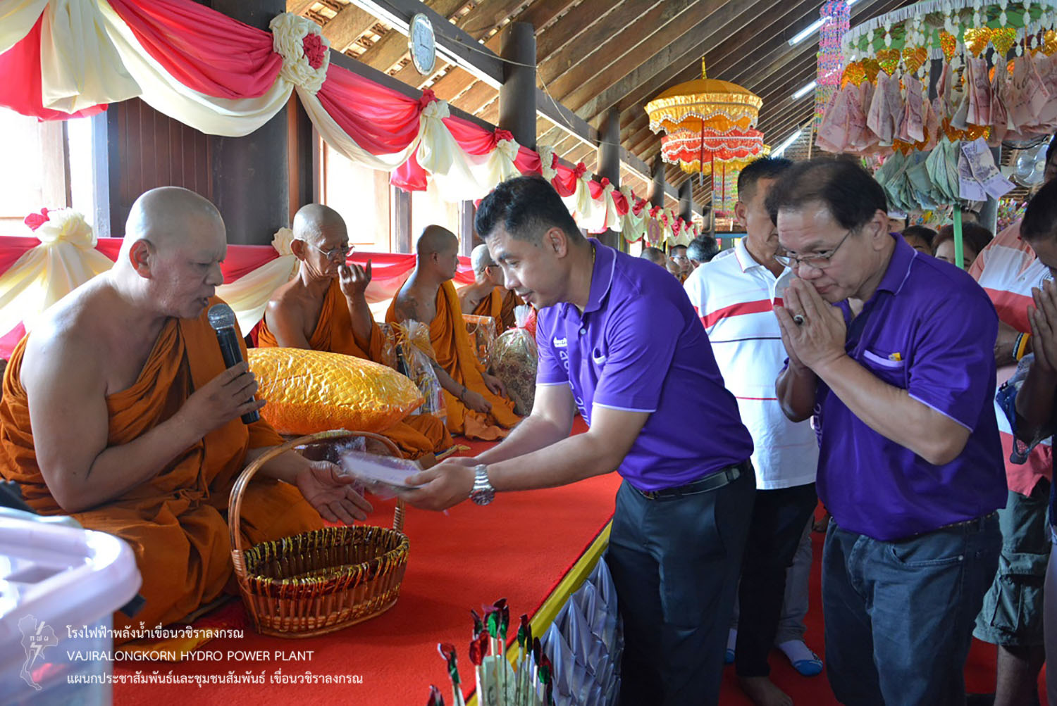 เมื่อวันที่ 10 พฤศจิกายน 2562 นายวิรัช ภู่ช้าง หัวหน้ากองเดินเครื่อง เขื่อนวชิราลงกรณ นายธวัชชัย หวังเจริญสุข หัวหน้าแผนกเดินเครื่องกะ 2 นายฉลอง ณะเสนพ หัวหน้าแผนกเดินเครื่องกะ 4 พร้อมด้วยผู้ปฏิบัติงานกองเดินเครื่อง เป็นตัวแทนผู้อำนวยการเขื่อนวชิราลงกรณ เข้าร่วมพิธีทอดกฐินสามัคคี ณ วัดวังโพธิ์ ตำบลลุ่มสุ่ม อำเภอไทรโยค จังหวัดกาญจนบุรี ร่วมเงินทำบุญทั้งสิ้น 10,000 บาท