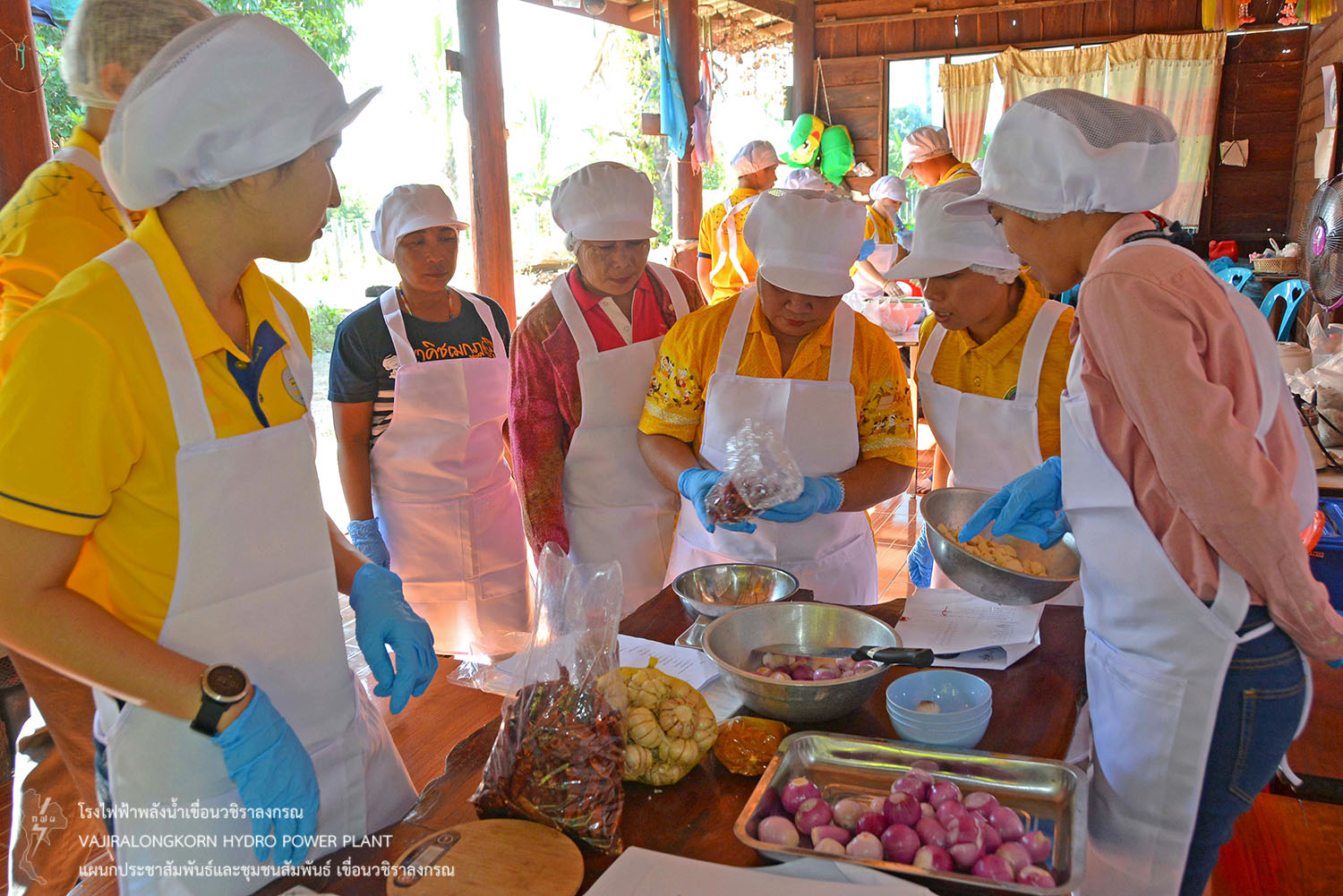 เมื่อวันที่ 18 ธันวาคม 2562 นายอดิเรกผล ดวงแก้ว ช่างระดับ 7 กลุ่มงานวิชาการและวางแผน เขื่อนวชิราลงกรณ พร้อมคณะทำงานวิจัยเขื่อนวชิราลงกรณ ให้การต้อนรับ นางสาวปิ่นธิดา ณ ไธสง หัวหน้าคณะทำงานวิจัยจากคณะวิทยาศาสตร์และเทคโนโลยี มหาวิทยาลัยราชภัฏกาญจนบุรี ผู้ร่วมงานวิจัยพัฒนาและนวัตกรรม ในหัวข้อโครงการ "การพัฒนาผลิตภัณฑ์อาหารจากวัตถุดิบท้องถิ่นชุมชนบ้านองธิ อำเภอทองผาภูมิ จังหวัดกาญจนบุรี" ณ ชุมชนบ้านองธิ โดยสาธิตการพัฒนาผลิตภัณฑ์อาหาร คือ น้ำพริกกระท้อนรามัญ และเครื่องแกงฮังเลรามัญ ซึ่งจะมีการพัฒนาบรรจุภัณฑ์ และจัดจำหน่ายเพื่อสร้างรายได้ให้กับชุมชนต่อไป