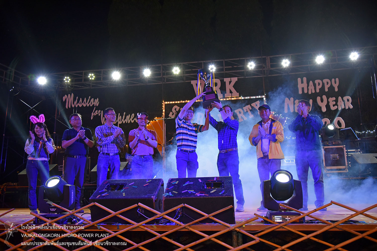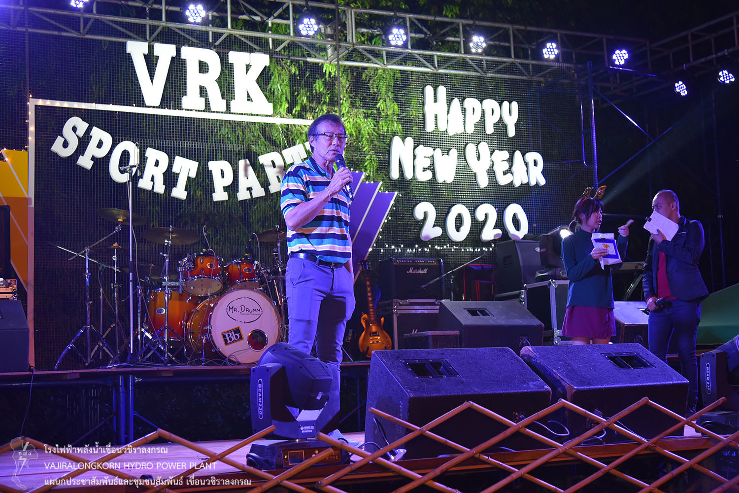 ช่วงกลางคืนจัดงาน VRK SPORT PARTY จัดงานเลี้ยงสังสรรค์ โดยจัดพิธีมอบรางวัลการแข่งขันกีฬาสีภายใน ประจำปี 2562 ผลการแข่งขันทีมสีหลืองชนะทีมสีม่วง โดยมีนายไววิทย์ แสงพานิชย์ ผู้อำนวยการเขื่อนวชิราลงกรณ เป็นประธานมอบถ้วยรางวัลชนะเลิศให้กับนายอภิรักษ์ ทองโต ผู้ช่วยผู้อำนวยการเขื่อนวชิราลงกรณ-1. เป็นผู้รับมอบ