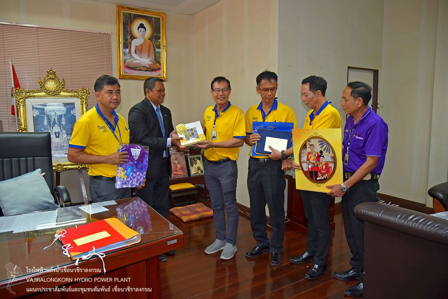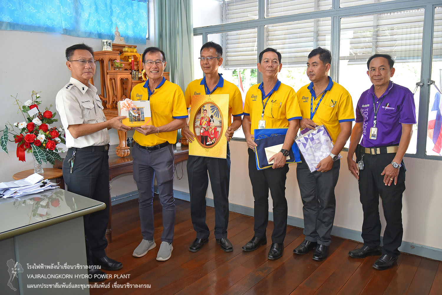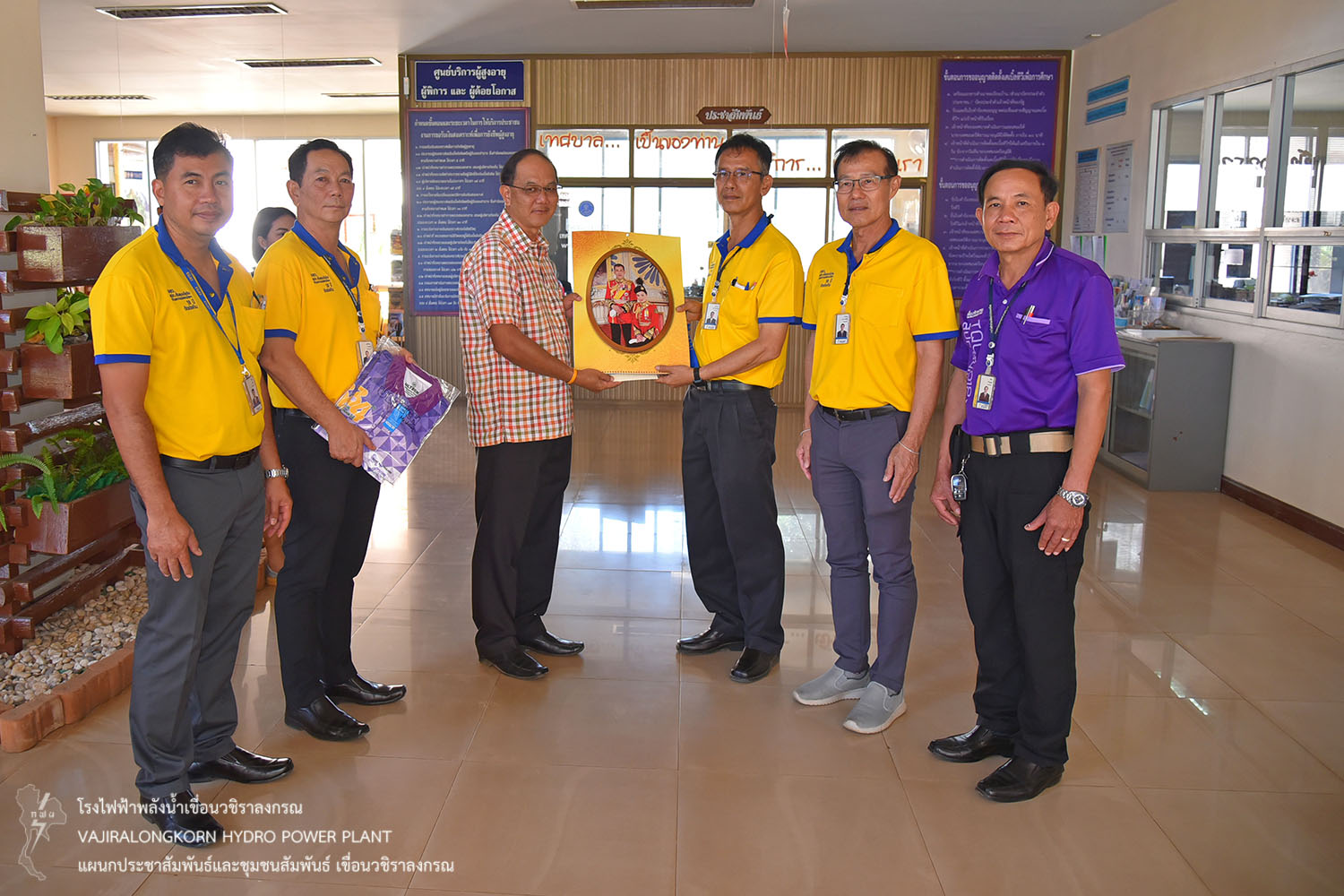 เมื่อวันที่ 3 มกราคม 2563 นายไววิทย์ แสงพานิชย์ ผู้อำนวยการเขื่อนวชิราลงกรณ นายอภิรักษ์ ทองโต ผู้ช่วยผู้อำนวยการเขื่อนวชิราลงกรณ-1 นายธนสาร ฐานะวุฑฒ์ ผู้ช่วยผู้อำนวยการเขื่อนวชิราลงกรณ-2 พร้อมด้วยผู้ปฏิบัติงานเขื่อนวชิราลงกรณ เข้าสวัสดีปีใหม่ 2563 และมอบปฏิทิน กฟผ.ให้กับ นายประหยัด แดงบรรจง ผู้พิพากษาหัวหน้าศาลจังหวัดทองผาภูมิ ร้อยตรีมิตร มูลสวัสดิ์ อัยการจังหวัดทองผาภูมิ พ.ต.อ.จิรายุส วานิชกูล ผู้กำกับการสถานีตำรวจภูธรทองผาภูมิ นายเฉลิมพล จิระเดชประไพ ผู้บัญชาการเรือนจำอำเภอทองผาภูมิ และนายประเทศ บุญยงค์ นายกเทศมนตรีตำบลทองผาภูมิ เนื่องในโอกาสสวัสดีปีใหม่และรับพรปีใหม่ เพื่อสร้างความสัมพันธ์อันดีระหว่าง กฟผ. กับหน่วยงานราชการในพื้นที่ใกล้เคียงเขื่อนวชิราลงกรณ