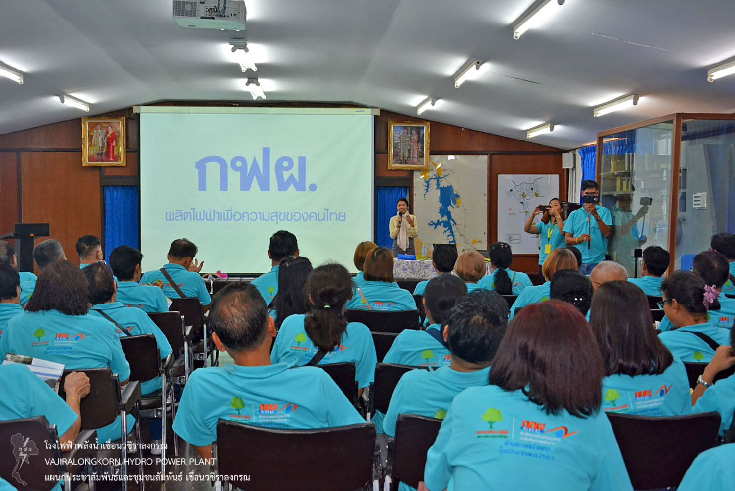 เมื่อวันที่ 23 มกราคม 2563 นางสาวอริยา ก้านทอง วิทยากรระดับ 6 แผนกประชาสัมพันธ์และชุมชนสัมพันธ์ เขื่อนวชิราลงกรณ ให้การต้อนรับนางสาวพิมพา เจ็งใจบุญ ประธาน คพรต. ตำบลบางหญ้าแพรก ในโอกาสนำคณะชุมชนตำบลบางหญ้าแพรก จังหวัดสมุทรปราการ จำนวน 110 คน เข้าศึกษาดูงานด้านการผลิตไฟฟ้า และความรับผิดชอบต่อสังคม ณ ห้องบรรยายแผนกประชาสัมพันธ์