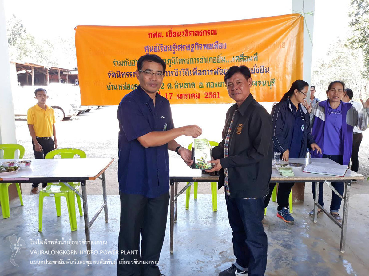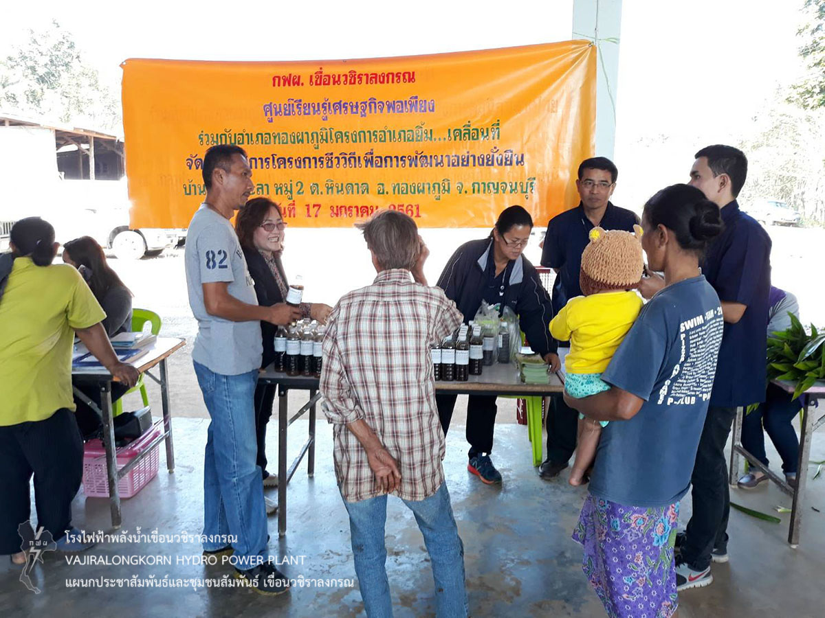 เมื่อวันที่ 17 มกราคม 2561 นายชาญชัย พันธ์ไพโรจน์ หัวหน้ากองบำรุงรักษาโยธา เขื่อนวชิราลงกรณ พร้อมด้วยผู้ปฏิบัติงานและพนักงานจ้างเหมา แผนกบำรุงรักษาบริเวณ เขื่อนวชิราลงกรณ ร่วมโครงการอำเภอยิ้ม...เคลื่อนที่ ของอำเภอทองผาภูมิ ณ ศาลาประชาคมหมู่ที่ 2บ้านหม่องกะลา ตำบลหินดาด อำเภอทองผาภูมิ จังหวัดกาญจนบุรี โดยเขื่อนวชิราลงกรณได้นำโครงการชีววิถีเพื่อการพัฒนาอย่างยั่งยืนมาให้ความรู้และสาธิตการใช้งานจุลินทรีย์ EM ให้กับประชาชนผู้สนใจนำไปใช้ประโยชน์ ทางด้านเกษตร ปศุสัตว์ ประมง และสิ่งแวดล้อม