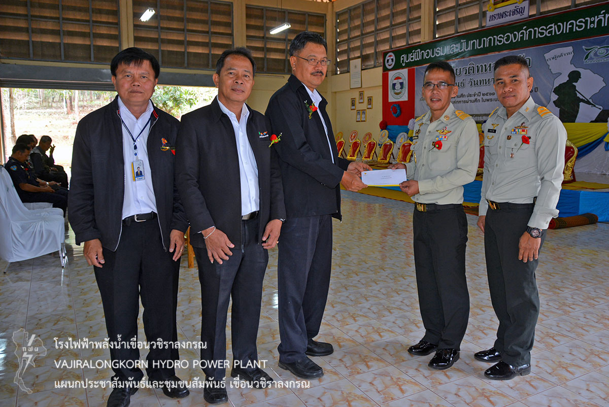 การไฟฟ้าฝ่ายผลิตแห่งประเทศไทย (กฟผ.) เขื่อนวชิราลงกรณ ร่วมงานวันทหารผ่านศึก เพื่อเชิดชูเกียรติของเหล่าทหารผ่านศึก ที่ได้เสียสละเลือดเนื้อและชีวิต เพื่อรักษาอธิปไตยของชาติไทย ณ ศูนย์สนับสนุนการฝึกอบรมองค์การสงเคราะห์ทหารผ่านศึก อำเภอทองผาภูมิ จังหวัดกาญจนบุรี