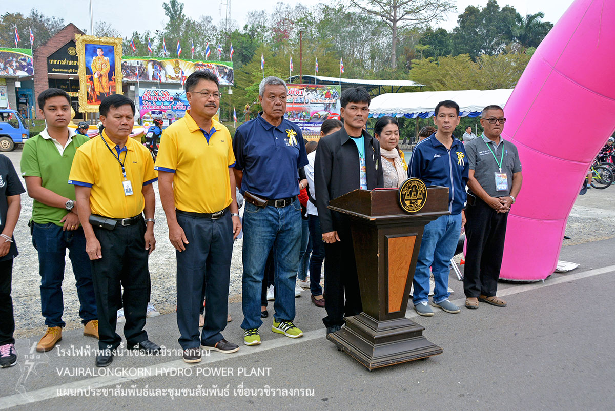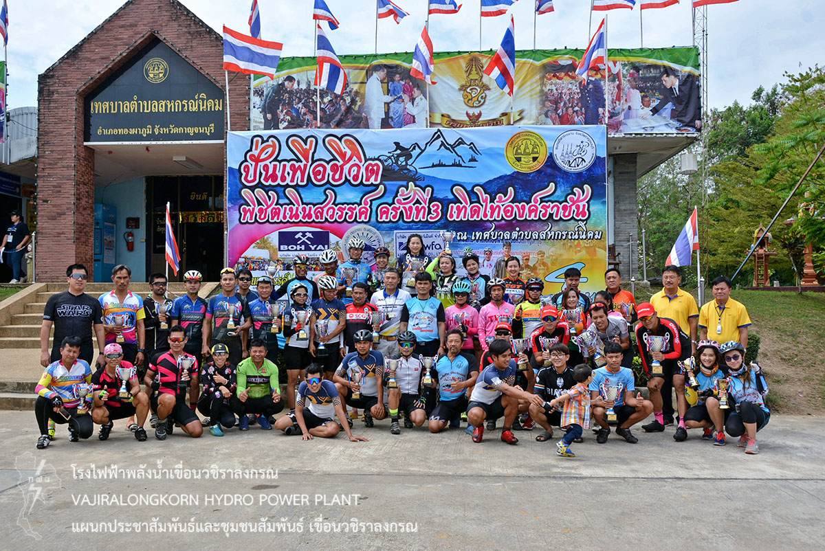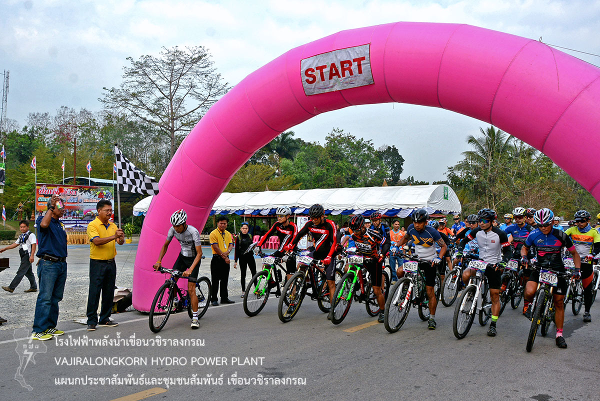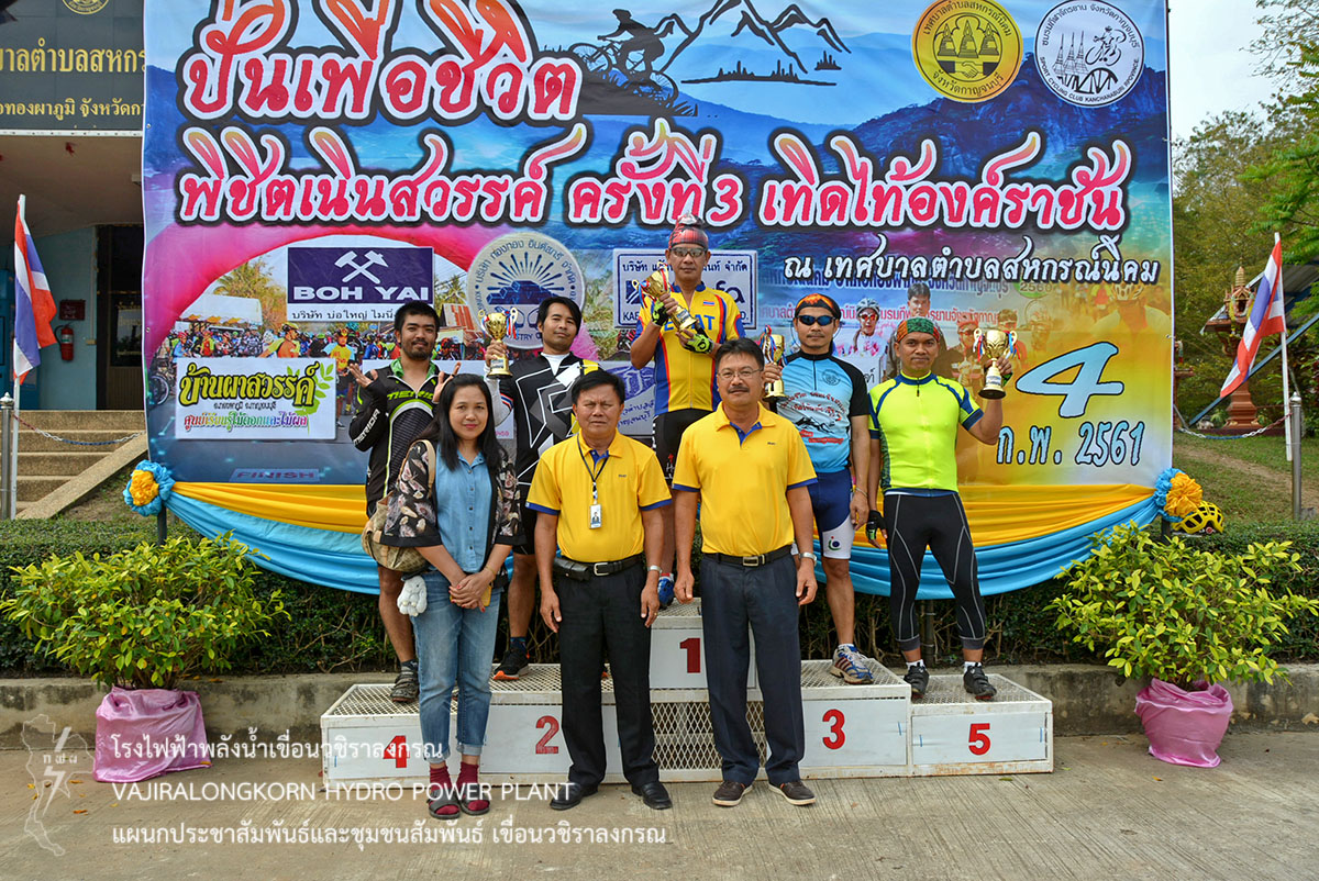 เมื่อวันที่ 4 กุมภาพันธ์ 2561 นายนภฤทธิ์ ผดุงศรี ผู้ช่วยผู้อำนายการเขื่อนวชิราลงกรณ-บริหาร และนายสม ขุมโมกข์ หัวหน้าแผนกประชาสัมพันธ์และชุมชนสัมพันธ์ เข้าร่วมพิธีเปิดการแข่งขันจักรยานพร้อมนำสมาชิกชมรมจักรยานเพื่อสุขภาพ ร่วมกิจกรรม“ปั่นเพื่อชีวิต พิชิตเนินสวรรค์ ครั้งที่ 3 เทิดไท้องค์ราชัน” เพื่อพัฒนานักกีฬาจักรยานจังหวัดกาญจนบุรีสู่นักกีฬามืออาชีพ ส่งเสริมการท่องเที่ยวในอำเภอทองผาภูมิ ให้เป็นที่รู้จักอย่างแพร่หลาย และเพื่อแสดงความจงรักภักดีต่อสมเด็จพระเจ้าอยู่หัวมหาวชิราลงกรณ บดินทรเทพวรางกูร