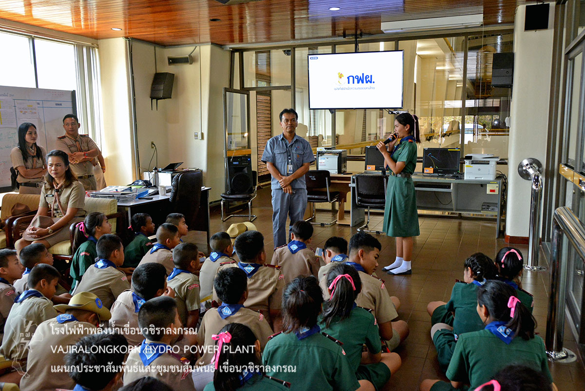 เมื่อวันที่ 8 กุมภาพันธ์ 2561 นางสาวบาหยัน หวังรวมกลาง พนักงานวิชาชีพระดับ 7 แผนกประชาสัมพันธ์และชุมชนสัมพันธ์ และนายพฤทธา พฤกษเมธาพันธ์ ช่างระดับ 5 แผนกประชาสัมพันธ์และชุมชนสัมพันธ์ ให้การต้อนรับ นายวุฒิพร ใจสงบ ผู้อำนวยการโรงเรียนวัดศรีอุปลาราม ในโอกาสนำคณะลูกเสือ-เนตรนารี สามัญและสามัญรุ่นใหญ่ โรงเรียนวัดศรีอุปลาราม ตำบลหนองบัว อำเภอเมือง จังหวัดกาญจนบุรี จำนวน 150 คน เข้าศึกษาดูงานด้านการบริหารงาน และความรับผิดชอบต่อสังคม ณ ห้องบรรยายแผนกประชาสัมพันธ์