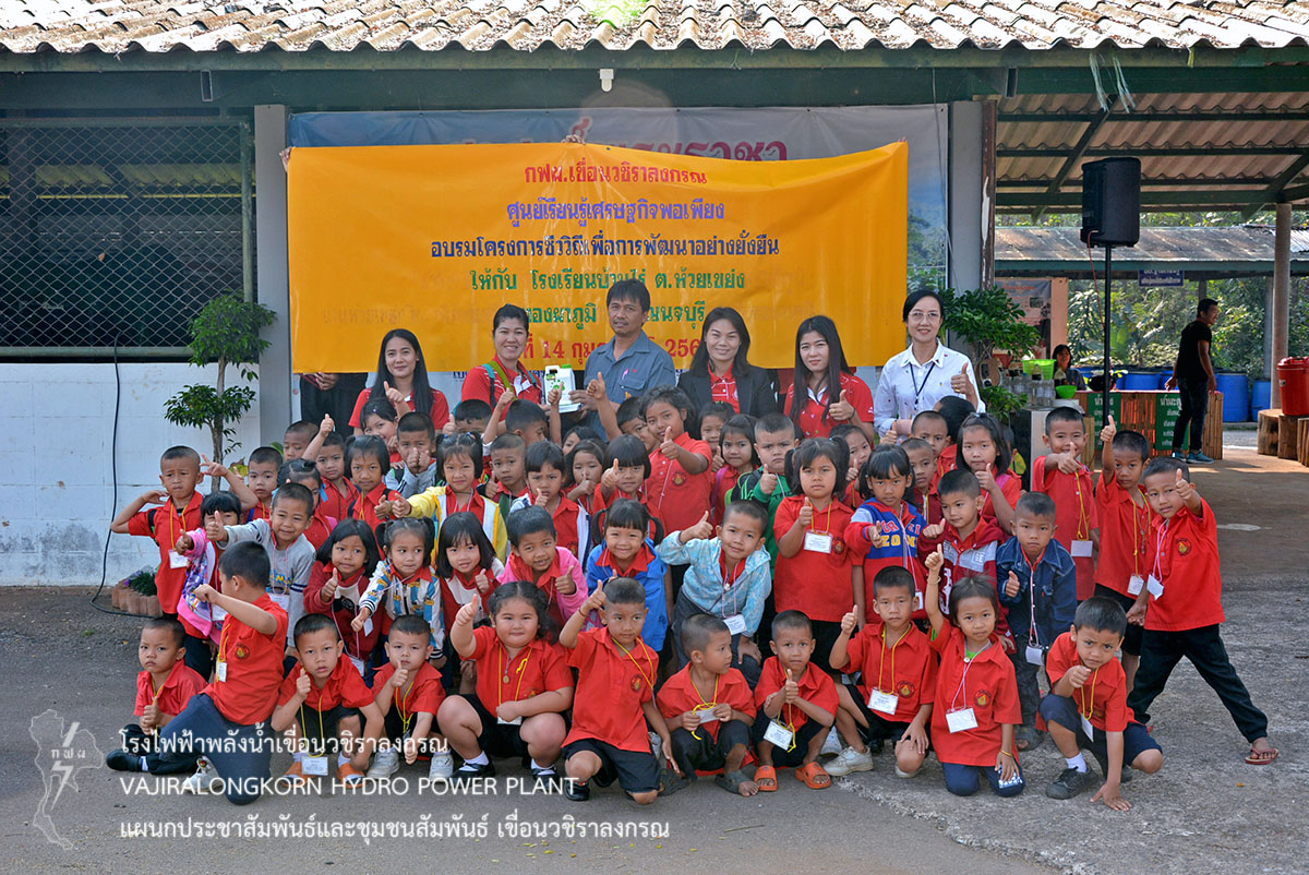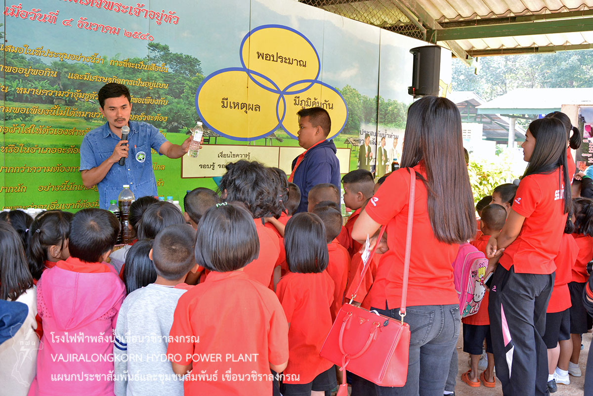 วันที่ 14 กุมภาพันธ์ 2561 นายอำนวย เข็มเงิน หัวหน้าแผนกบำรุงรักษาบริเวณ กองบำรุงรักษาโยธา และนายพฤทธา พฤกษเมธาพันธ์ ช่างระดับ 5 แผนกประชาสัมพันธ์และชุมชนสัมพันธ์เขื่อนวชิราลงกรณ ให้การต้อนรับคณะครูและนักเรียนโรงเรียนบ้านไร่ จำนวน 70 คน เข้าฟังบรรยายโครงการชีววิถีเพื่อการพัฒนาอย่างยั่งยืนและอบรมการทำน้ำยา EM ณ เรือนเพาะชำ เป็นวิทยากร ต่อมานำคณะชมทัศนียภาพ ณ สันเขื่อนวชิราลงกรณ