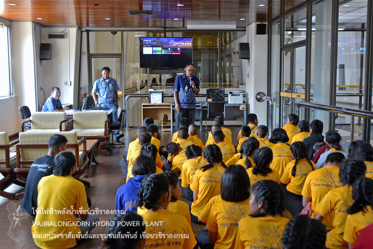 ต่อมานำคณะเข้าชมโรงไฟฟ้าเขื่อนวชิราลงกรณ และฟังบรรยายสรุปขั้นตอนการผลิตไฟฟ้า โดยมี นายพงษ์พันธุ์ พรหมชัยศรี หัวหน้ากองเดินเครื่อง นายชัยรัตน์ ป่วนสุขเปี่ยม ช่างระดับ 7 แผนกเดินเครื่องกะ 2 กองเดินเครื่อง นายเกรียงไกร กระจ่างแจ้ง ช่างระดับ 7 แผนกเดินเครื่องกะ 2 กองเดินเครื่อง เป็นวิทยากร