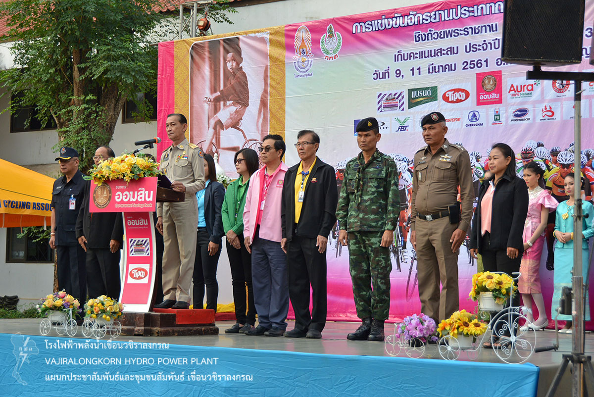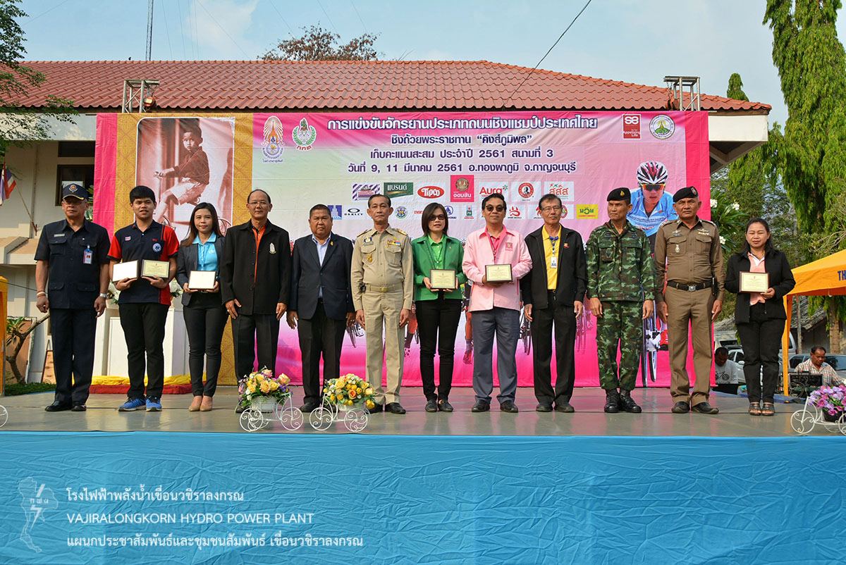 เมื่อวันที่ 9 มีนาคม 2561 ว่าที่ร้อยตรีสุจินต์ ศรีวิเชียร นายอำเภอทองผาภูมิ เป็นประธานเปิดการแข่งขันจักรยานชิงแชมป์ประเทศไทย ชิงถ้วยพระราชทาน “คิงส์คัพ” สนามที่ 3 ประจำปี 2561 ระหว่างวันที่ 9-11 มีนาคม 2561 ณ หน้าที่ว่าการอำเภอทองผาภูมิ จังหวัดกาญจนบุรี โดยมีพลเอกเดชา เหมกระศรี นายกสมาคมกีฬาจักรยานแห่งประเทศไทย ในพระบรมราชูปถัมภ์ เป็นผู้มอบโล่ขอบคุณผู้สนับสนุนการแข่งขันในครั้งนี้ และมีนายไววิทย์ แสงพานิชย์ ผู้อำนวยการเขื่อนวชิราลงกรณ นายนภฤทธิ์ ผดุงศรี ผู้ช่วยผู้อำนวยการเขื่อนวชิราลงกรณ-บริหาร นายสุรพล กองแก้ว หัวหน้ากองบริหาร นายสม ขุมโมกข์ หัวหน้าแผนกประชาสัมพันธ์และชุมชนสัมพันธ์ และนายวิชิต ขวัญสูนู หัวหน้าแผนกแผนกรักษาความปลอดภัย เขื่อนวชิราลงกรณ หัวหน้าส่วนราชการ ผู้นำส่วนท้องถิ่น รัฐวิสาหกิจ และผู้เกี่ยวข้องเข้าร่วมพิธีเปิดการแข่งขันจักรยานชิงแชมป์แห่งประเทศไทย