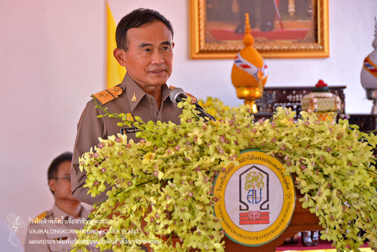 เมื่อวันที่ 28 มีนาคม 2561 นายนภฤทธิ์ ผดุงศรี ผู้ช่วยผู้อำนวยการเขื่อนวชิราลงกรณ-บริหาร นายภาณุ ทิพย์ ภาระ วิทยากรระดับ 10 หัวหน้ากลุ่มงานนันทนาการ และนายสม ขุมโมกข์ หัวหน้าแผนกประชาสัมพันธ์และชุมชนสัมพันธ์เขื่อนวชิราลงกรณ เข้าร่วมพิธีเปิดอาคารเรียน โรงเรียนสมาคมป่าไม้แห่งประเทศไทยอุทิศ โดยมี พลเอกไพบูลย์ คุ้มฉายา องคมนตรี เป็นประธานในพิธีเปิดงาน และพิธีมอบประกาศนียบัตรนักเรียนชั้นมัธยมศึกษาปีที่ 6 พร้อมด้วยหัวหน้าส่วนราชการ ผู้นำส่วนท้องถิ่น รัฐวิสาหกิจ และผู้เกี่ยวข้องเข้าร่วมพิธี ณ เรียนโรงเรียนสมาคมป่าไม้แห่งประเทศไทยอุทิศ ตำบลห้วยเขย่ง อำเภอทองผาภูมิ จังหวัดกาญจนบุรี