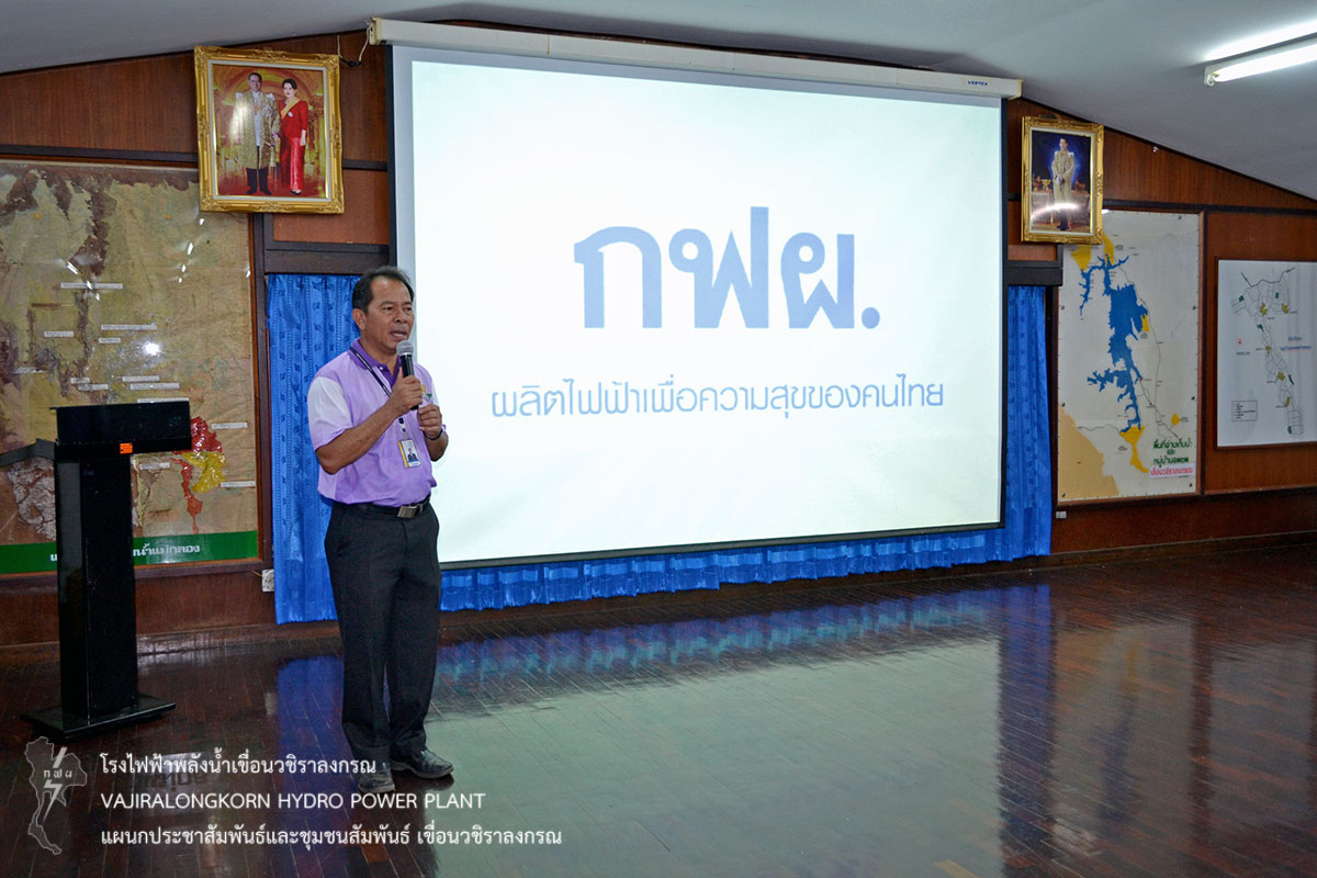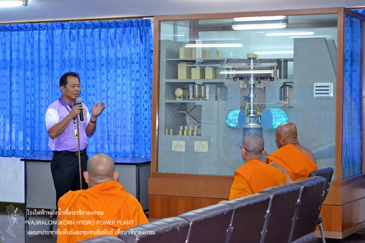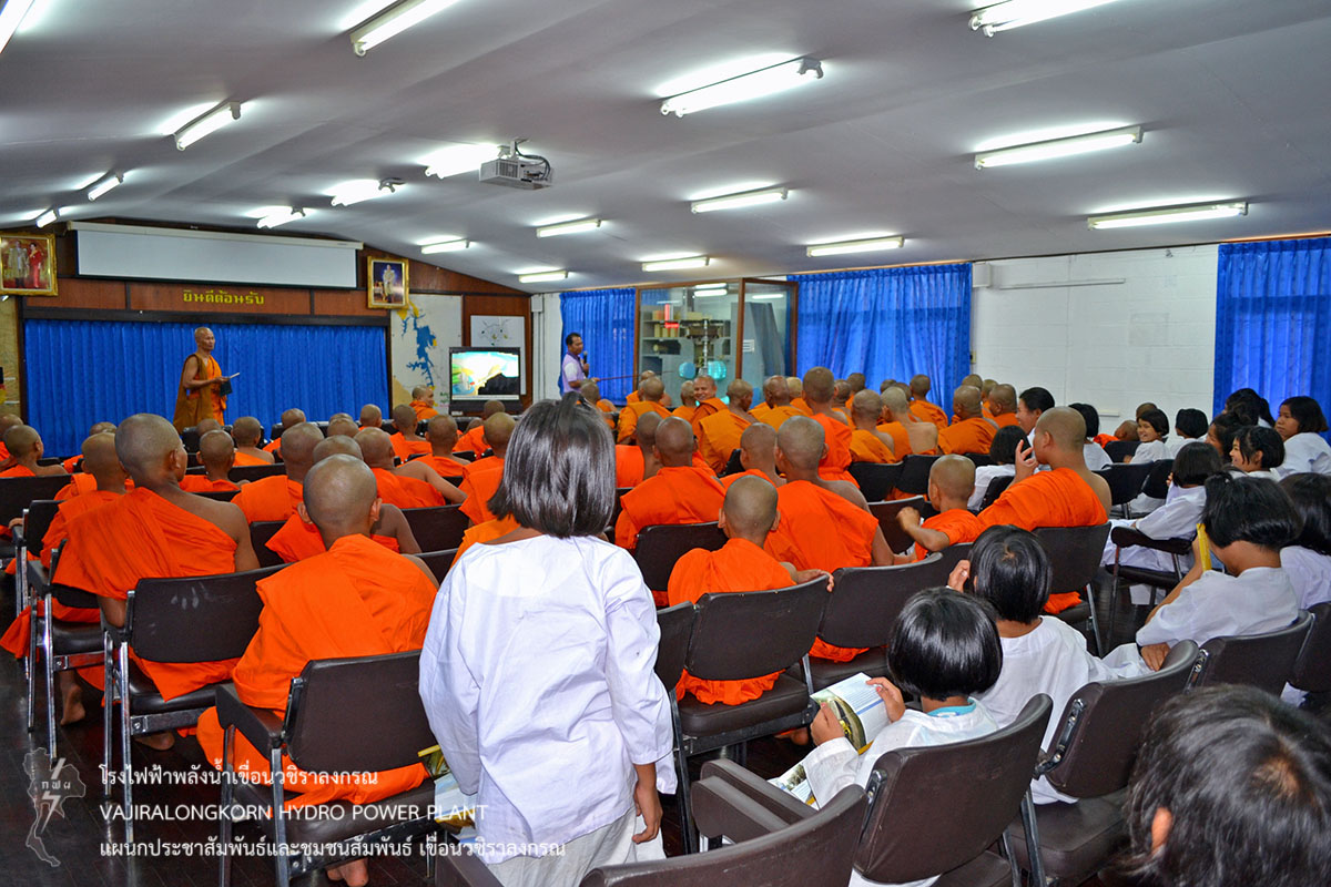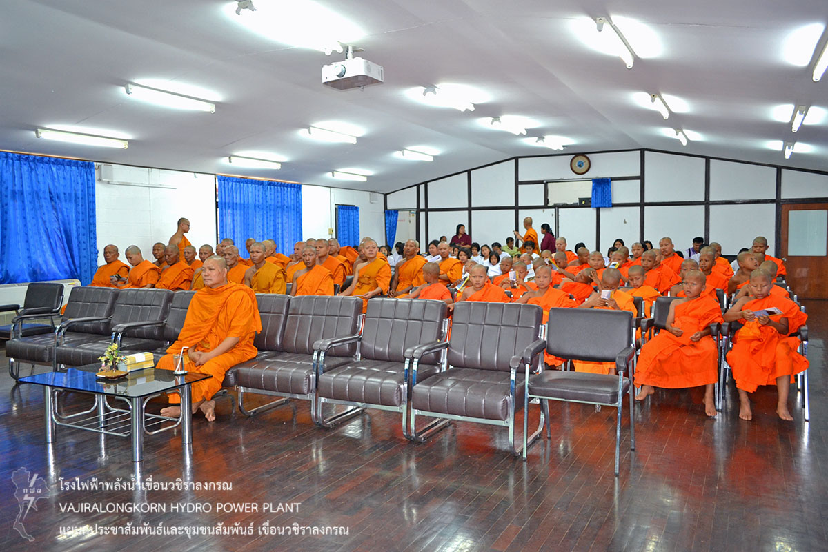 เมื่อวันที่ 2 เมษายน 2559 นายสุรพล กองแก้ว กองบริหารเขื่อนวชิราลงกรณ และนายสม ขุมโมกข์ หัวหน้าแผนกประชาสัมพันธ์และชุมชนสัมพันธ์เ ขื่อนวชิราลงกรณ ให้การต้อนรับและเป็นวิทยากรบรรยายสรุปประวัติความเป็นมาของเขื่อนวชิราลงกรณ และความมั่นคงแข็งแรงของ เขื่อนวชิราลงกรณ เพื่อให้ความรู้และความเข้าใจแก่คณะสามเณรภาคฤดูร้อน จากวัดท่ามะเดื่อ ตำบลห้วยเขย่ง อำเภอทองผาภูมิ จังหวัดกาญจนบุรี จำนวน 102 รูป ในโครงการบรรพชาสามเณรและบวชศีลจาริณีภาคฤดูร้อน เฉลิมพระเกียรติสมเด็จพระเทพรัตนราชสุดาฯ สยามบรมราชกุมารี เข้ารับฟังบรรยายสรุปการดำเนินงานของเขื่อนวชิราลงกรณ