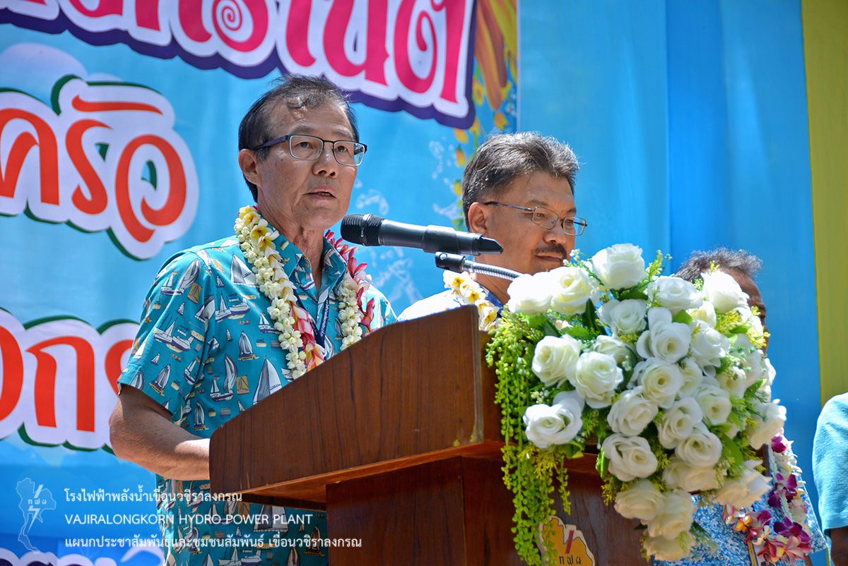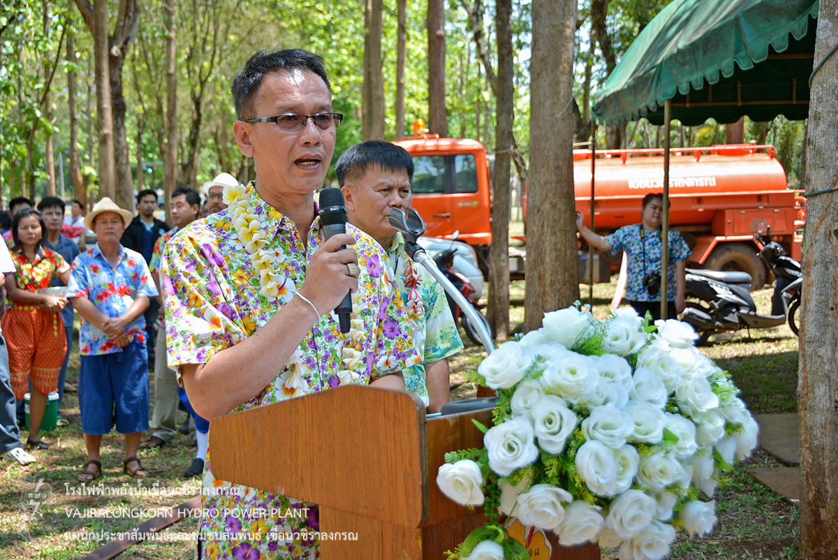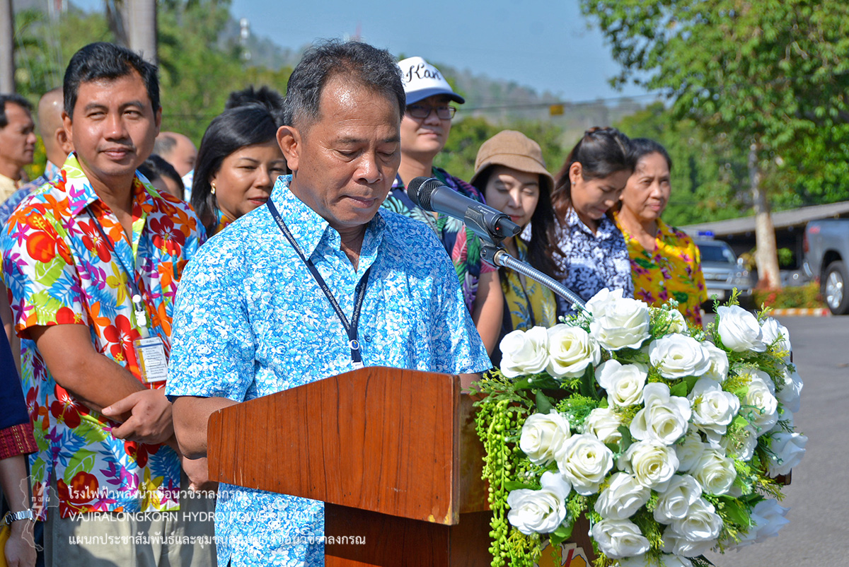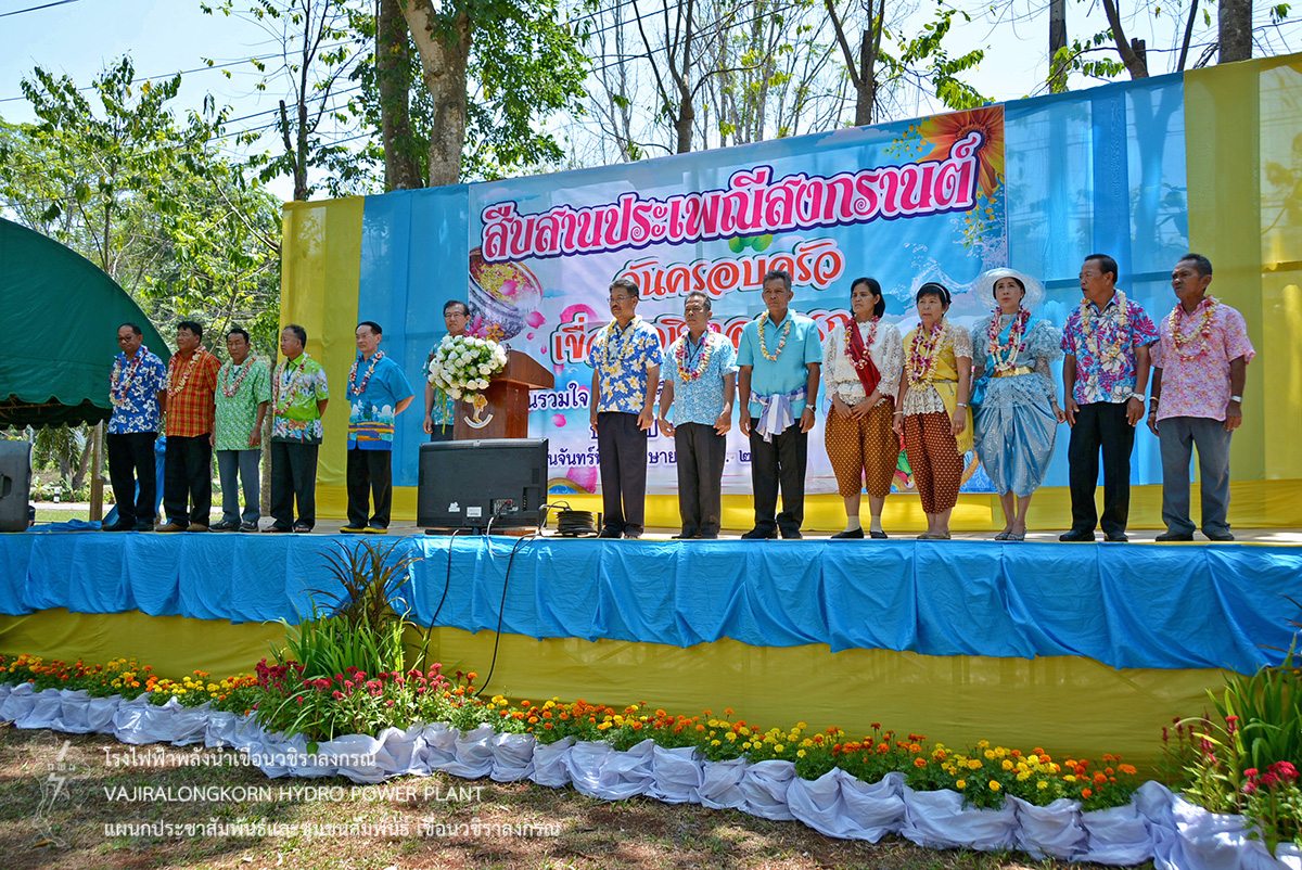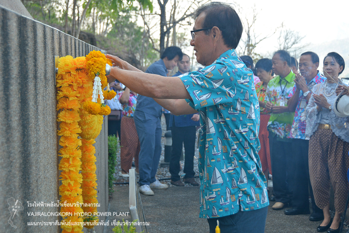 ช่วงพักเที่ยงร่วมกันรับประทานอาหารและเครื่องดื่ม และจัดพิธีรดน้ำขอพรผู้ใหญ่ โดยมีนายไววิทย์ แสงพานิชย์ ผู้อำนวยการเขื่อนวชิราลงกรณ เป็นประธานในพิธีรดน้ำขอพร และมีนายธนสาร ฐานะวุฑฒ์ วิศวกรระดับ 11 เขื่อนวชิราลงกรณ เป็นผู้แทนผู้ปฏิบัติงานกล่าวนำคำขอขมา จากนั้น ผู้อำนวยการเขื่อนวชิราลงกรณ กล่าวขอบคุณคณะผู้จัดกิจกรรม ผู้บริหาร ผู้ปฏิบัติงานเขื่อนวชิราลงกรณ พร้อมทั้งกล่าวอวยพร และเป็นประธานในพิธีสรงน้ำพระพุทธสิริสัตตราช และจัดพิธีรดน้ำขอพรผู้เกษียณอายุเขื่อนวชิราลงกรณ