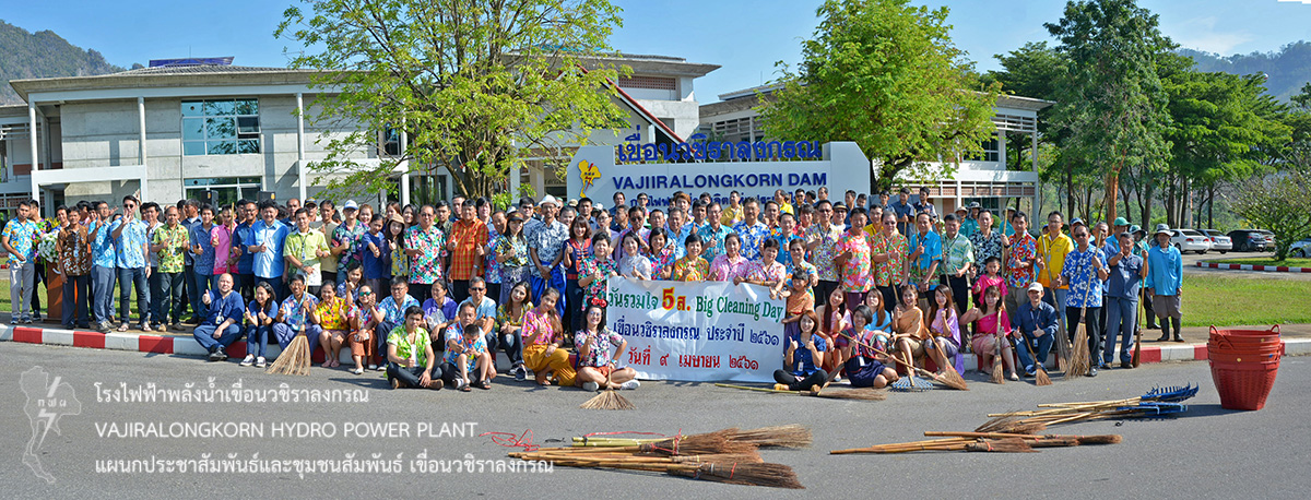 ต่อมา เวลา 08.30 น. นายไววิทย์ แสงพานิชย์ ผู้อำนวยการเขื่อนวชิราลงกรณ เป็นประธานเปิดการทำกิจกรรม Big Cleaning Day ประจำปี 2561 โดยมีนายสุรพล กองแก้ว หัวหน้ากองบริหาร เขื่อนวชิราลงกรณ เป็นผู้กล่าวรายงาน จากนั้นถ่ายภาพหมู่ และร่วมกันทำกิจกรรมบริเวณปั๊มน้ำมัน แผนกพัสดุ เพื่อร่วมกันทำความสะอาดบริเวณพื้นที่ รณรงค์สร้างจิตสำนึก และเชิญชวนให้ร่วมกันทำความสะอาด ครั้งใหญ่ปีละ 1 ครั้ง