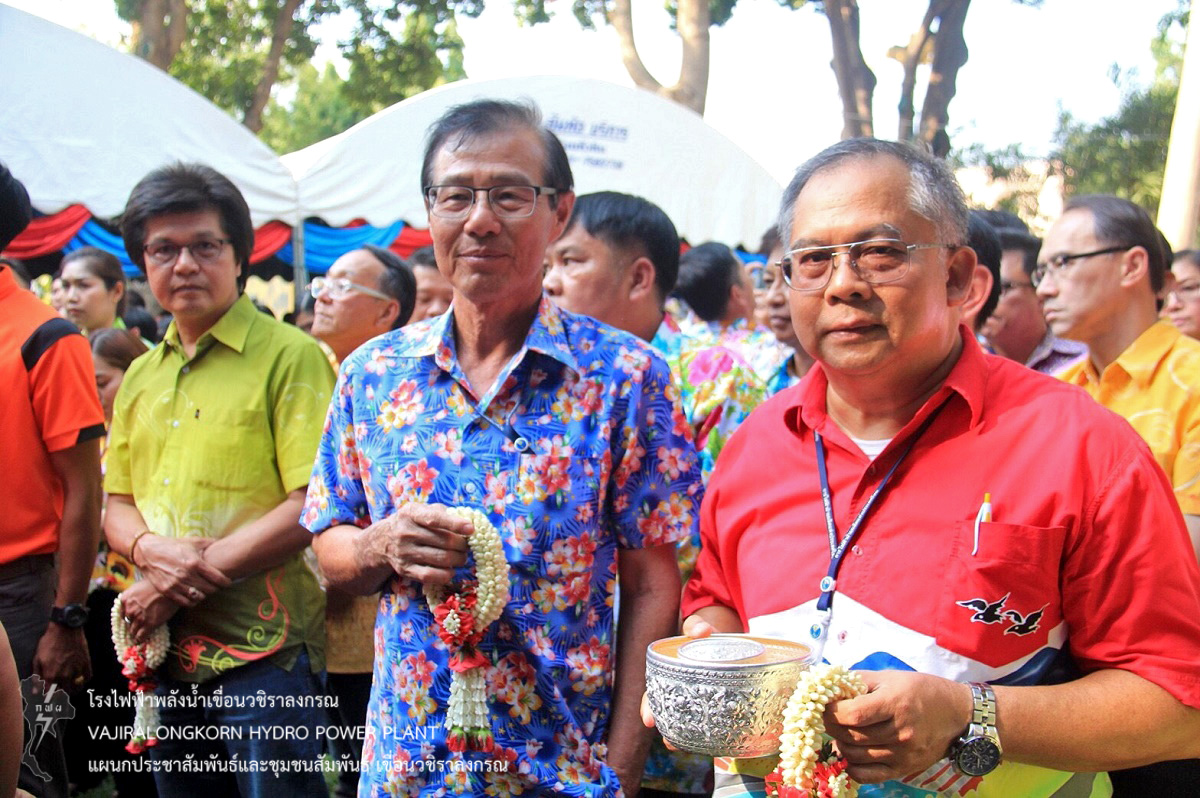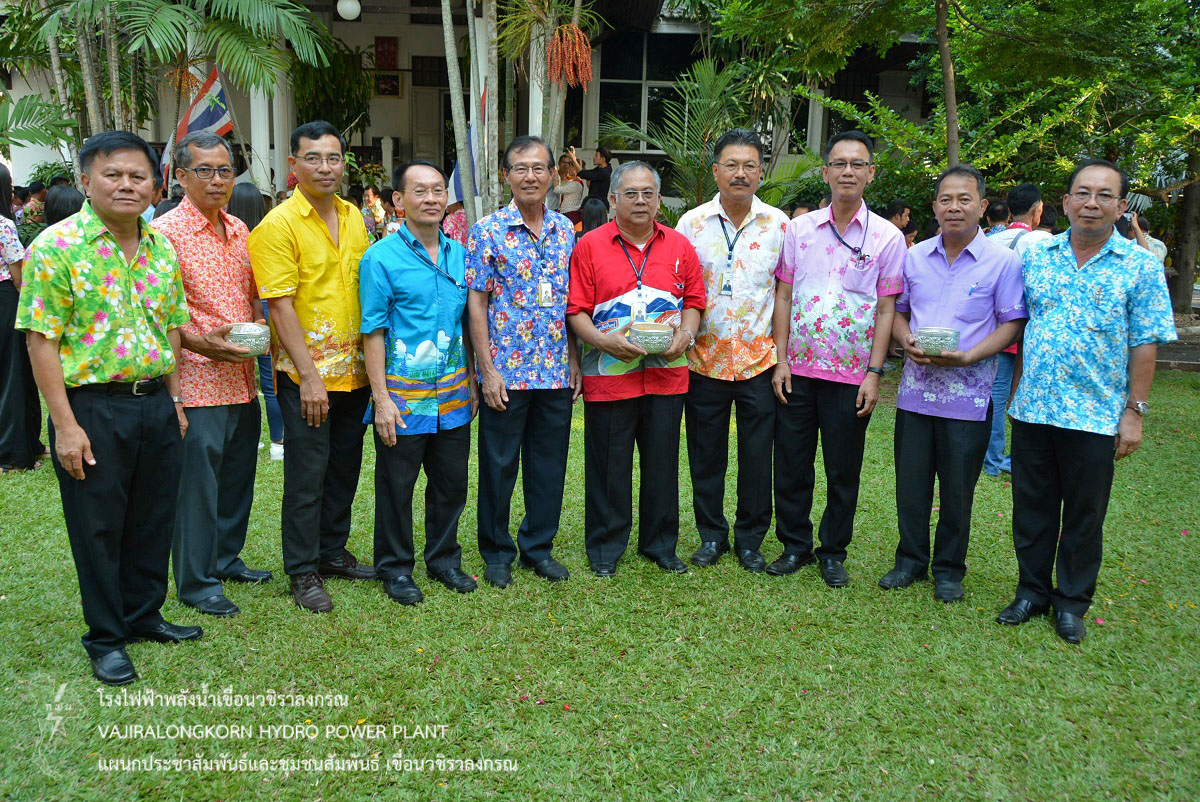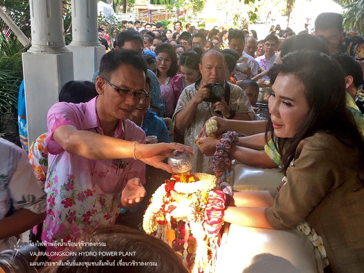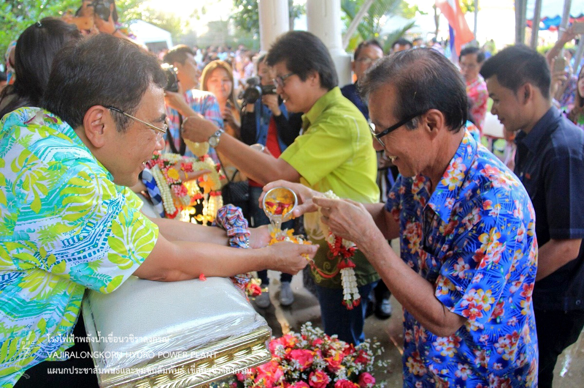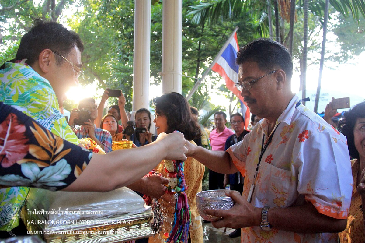 เมื่อวันที่ 10 เมษายน 2561 นายไววิทย์ แสงพานิชย์ ผู้อำนวยการเขื่อนวชิราลงกรณ พร้อมด้วย นายศราวุธ ธนศิลปวิทยา ผู้ช่วยผู้อำนวยการเขื่อนวชิราลงกรณ-ปฏิบัติการ นายนภฤทธิ์ ผดุงศรี ผู้ช่วยผู้อำนวยการเขื่อนวชิราลงกรณ-บริหาร นายธนสาร ฐานะวุฒฑ์ วิศวกรระดับ 11 เขื่อนวชิราลงกรณ หัวหน้ากอง และหัวหน้าแผนก เขื่อนวชิราลงกรณ เข้าร่วมรดน้ำขอพรให้กับนายจิระเกียรติ์ ภูมิสวัสดิ์ ผู้ว่าราชการจังหวัดกาญจนบุรี เพื่อเป็นการสืบสานประเพณีไทยและความเป็นสิริมงคลเนื่องในโอกาสวันขึ้นปีใหม่ไทย หรือเทศกาลสงกรานต์ ณ จวนผู้ว่าราชการจังหวัดกาญจนบุรี อำเภอเมือง จังหวัดกาญจนบุรี