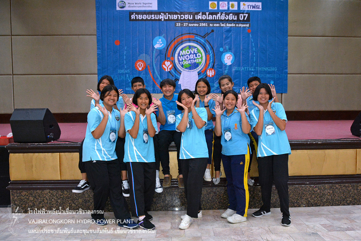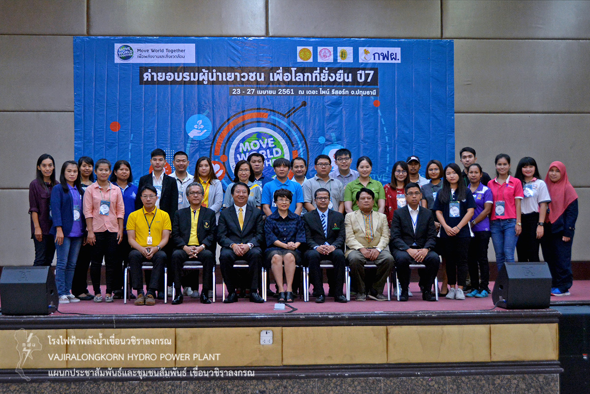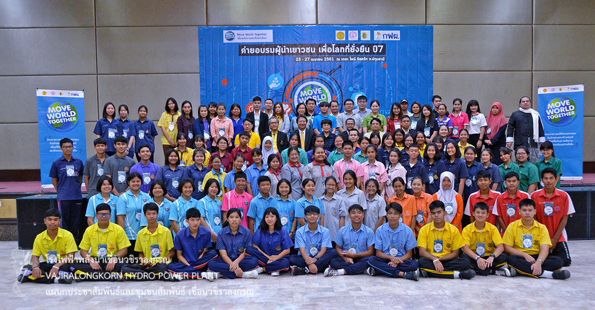 เมื่อวันที่ 23 เมษายน 2561 นายสุพีร์ เอี่ยมเดชา ช่างระดับ 5 แผนกประชาสัมพันธ์และชุมชนสัมพันธ์ เขื่อนวชิราลงกรณ นำกลุ่มเยาวชนและครูโรงเรียนร่มเกล้ากาญจนบุรี และโรงเรียนทองผาภูมิวิทยา อำเภอทองผาภูมิ จังหวัดกาญจนบุรี เข้าร่วมค่ายอบรมผู้นำเยาวชนภาคกลาง ภาคตะวันออกและภาคตะวันตก เพื่อโลกที่ยั่งยืนปีที่ 7 Move World Together: เพื่อพลังงานและสิ่งแวดล้อม ณ เดอะไพน์ รีสอร์ท จังหวัดปทุมธานี ระหว่างวันที่ 23-27 เมษายน 2561