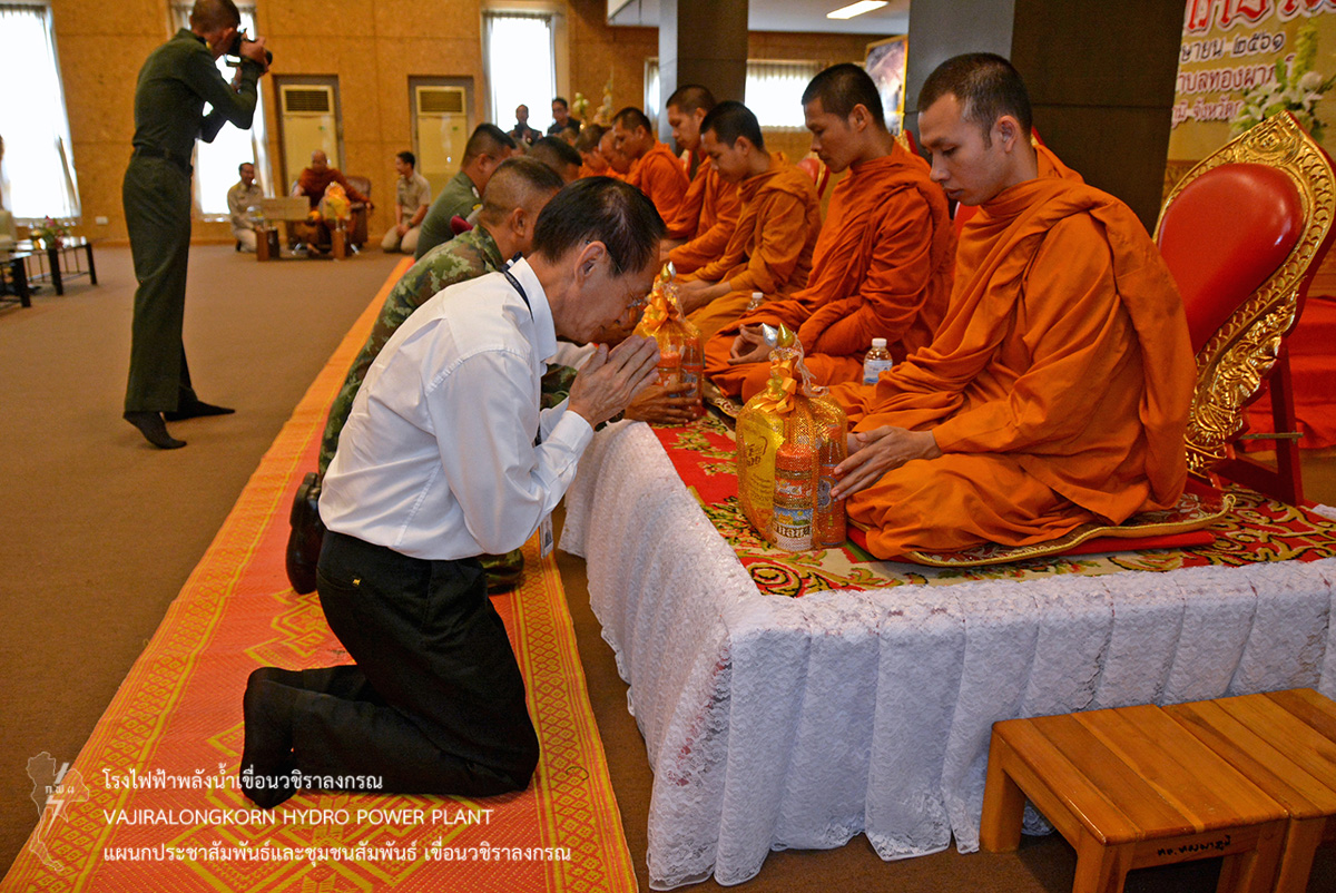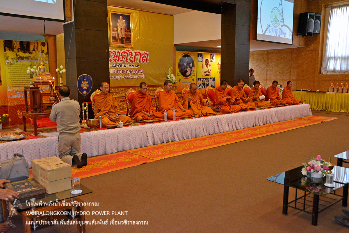 เมื่อวันที่ 24 เมษายน 2561 นายศราวุธ ธนศิลปวิทยา ผู้ช่วยผู้อำนวยการเขื่อนวชิราลงกรณ-ปฏิบัติการ เข้าร่วมพิธีทำบุญเลี้ยงพระสงฆ์ 9 รูป เนื่องในงานวันเทศบาล ประจำปี 2561 ณ ห้องประชุมหลวงปู่สาย สำนักงานเทศบาลตำบลทองผาภูมิ อำเภอทองผาภูมิ จังหวัดกาญจนบุรี โดยมีนายประเทศ บุญยงค์ นายกเทศมนตรีตำบลทองผาภูมิ ให้การต้อนรับ และมีหัวหน้าส่วนราชการ หน่วยงานรัฐวิสาหกิจ ประชาชน เข้าร่วมพิธี เพื่อระลึกถึงความสำคัญและความเป็นมาของการก่อกำเนิดเทศบาล และเห็นความสำคัญของการปกครองท้องถิ่นโดยเฉพาะการปกครองท้องถิ่นรูปแบบเทศบาล