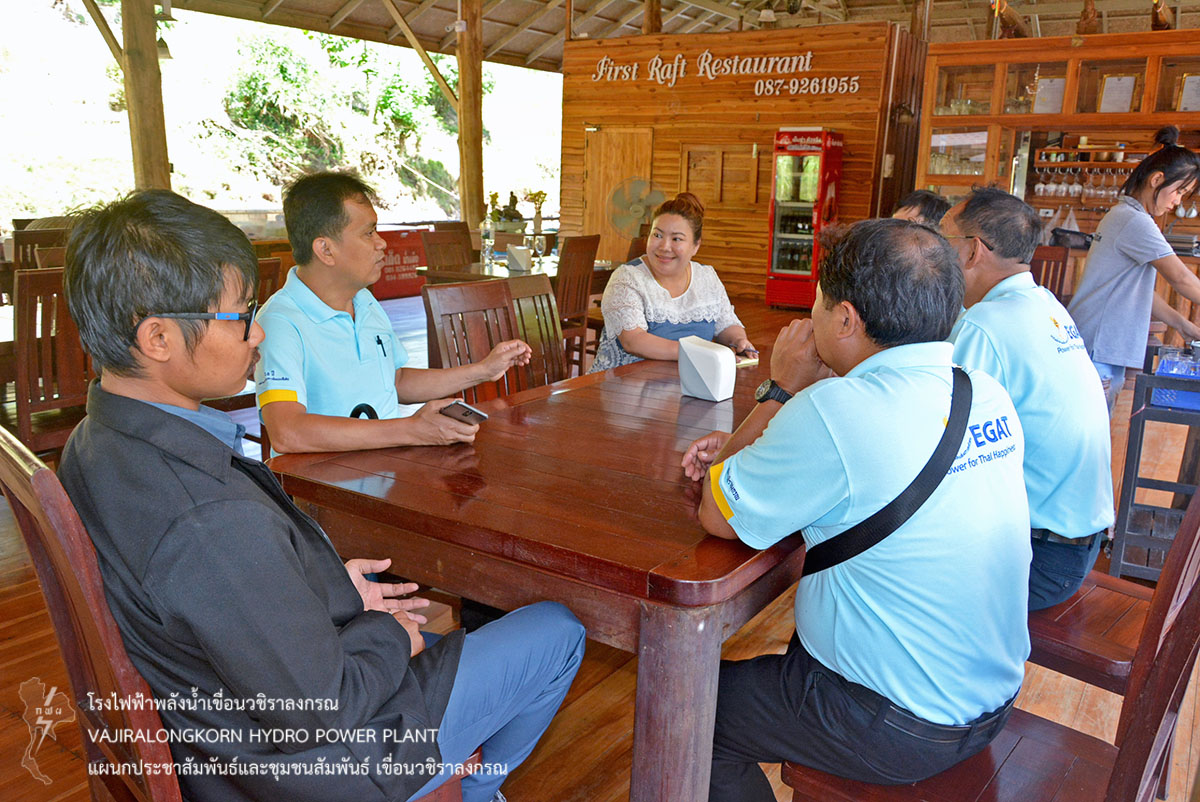 เมื่อวันที่ 16 พฤษภาคม 2561 นายพงษ์พันธุ์ พรหมชัยศรี หัวหน้ากองเดินเครื่อง พร้อมด้วยผู้บริหารและผู้ปฏิบัติงาน กองเดินเครื่อง เขื่อนวชิราลงกรณ ลงพื้นที่ตรวจเยี่ยมผู้ประกอบการรีสอร์ท และชุมชนท้ายน้ำ ประกอบด้วยโรงแรมริเวอร์แคววิลเลจ ผึ้งหวานรีสอร์ท ตำบลท่าเสา อำเภอไทรโยค ไทรโยคเพลส บ้านริมแคว-แพริมน้ำ ตำบลลุ่มสุ่ม อำเภอไทรโยค และเฟิร์สราฟท์ แอนด์ รีสอร์ท ตำบลท่าขนุน อำเภอทองผาภูมิ จังหวัดกาญจนบุรี เพื่อสร้างความสัมพันธ์ที่ดีต่อกัน และชี้แจงให้รับทราบข้อมูลแผนการระบายน้ำของเขื่อนวชิราลงกรณในช่วงฤดูฝน ซึ่งถ้า กฟผ. มีความจำเป็นต้องระบายน้ำในปริมาณมาก จะส่งผลให้ระดับน้ำท้ายเขื่อนสูงขึ้น ซึ่งอาจจะทำให้เกิดความเสียหายต่อทรัพย์สินได้ จึงขอให้ผู้ประกอบการและชุมชนท้ายน้ำคอยติดตามข่าวสารจาก กฟผ. หน่วยงานที่เกี่ยวข้องอย่างต่อเนื่อง