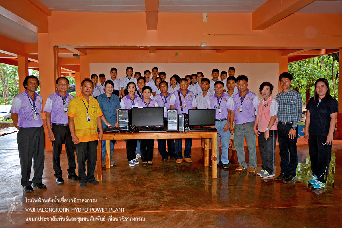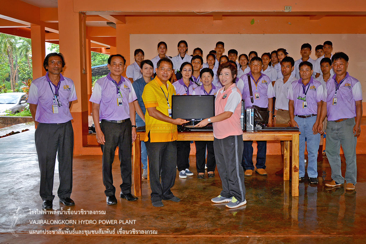 เมื่อวันที่ 24 พฤษภาคม 2561 นายสุรพล กองแก้ว หัวหน้ากองบริหาร เขื่อนวชิราลงกรณ เป็นตัวแทนฝ่ายควบคุมระบบกำลังไฟฟ้า สำนักงานกลาง กฟผ. มอบคอมพิวเตอร์ตั้งโต๊ะ จำนวน 3 เครื่อง ให้กับอาจารย์สุณิสา อุดมสุข ครูชำนาญการโรงเรียนทองผาภูมิวิทยา ตำบลท่าขนุน อำเภอทองผาภูมิ จังหวัดกาญจนบุรี เพื่อเป็นการสนับสนุนการศึกษาและนำไปใช้ในกิจกรรมของโรงเรียนต่อไป