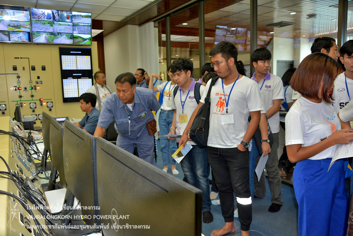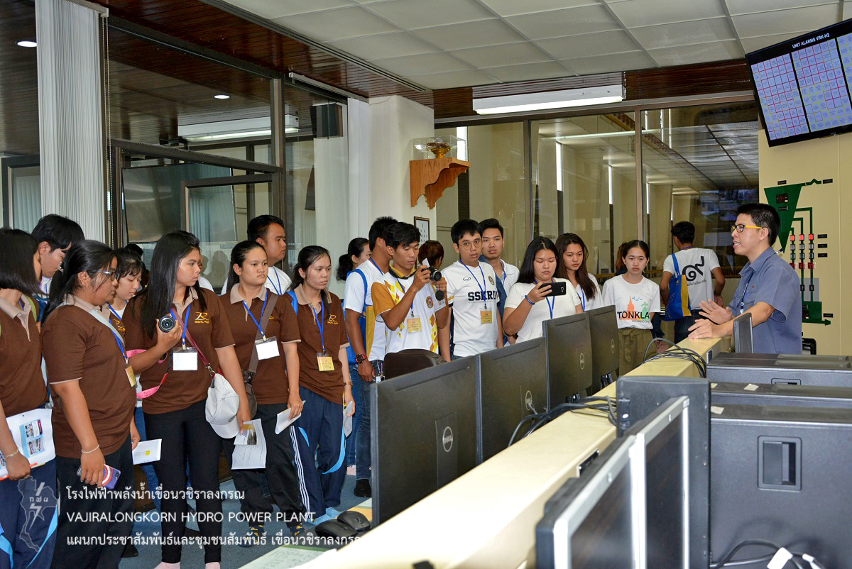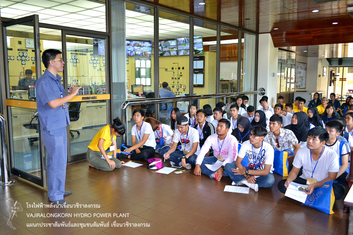 เมื่อวันที่ 5 มิถุนายน 2561 นายเพชร ร่มโพธิ์ภักดิ์ วิศวกรระดับ 7 แผนกเดินเครื่องกะ 2 กองเดินเครื่อง และนางสาวอริยา ก้านทอง วิทยากรระดับ 5 แผนกประชาสัมพันธ์และชุมชนสัมพันธ์ เขื่อนวชิราลงกรณ ให้การต้อนรับ ผู้ปฏิบัติงานฝ่ายกิจการสังคม (อกค.) ในโอกาสนำคณะนักศึกษาโครงการ กฟผ.เพาะเมล็ดพันธุ์จิตอาสาพัฒนาสังคม รุ่นที่ 10 (ค่ายเศรษฐกิจพอเพียง กฟผ.) ซึ่งมีวัตถุประสงค์เพื่อสนับสนุนให้นักศึกษาทำความดีผ่านกิจกรรมค่ายอาสาพัฒนาสังคม ที่ขยายผลการขับเคลื่อนหลักปรัชญาเศรษฐกิจพอเพียงสู่เยาวชน จำนวน 130 คน เข้าศึกษาดูงานเกี่ยวกับการบริหารจัดการน้ำ ขั้นตอนการผลิตไฟฟ้า และความมั่นคงปลอดภัยเขื่อน ณ โรงไฟฟ้าเขื่อนวชิราลงกรณ ต่อมานำคณะชมทัศนียภาพ ณ สันเขื่อนวชิราลงกรณ และถ่ายภาพที่ระลึกร่วมกัน