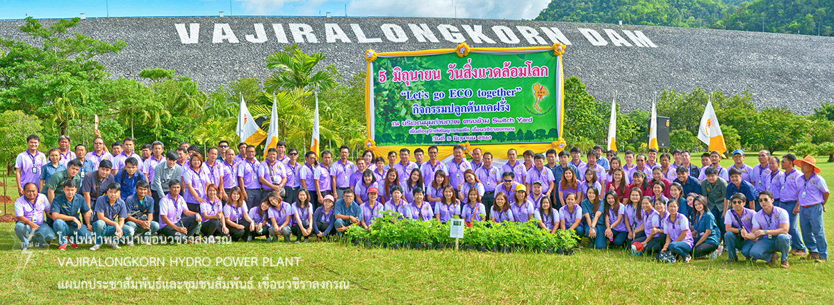 เขื่อนวชิราลงกรณ จัดกิจกรรมปลูกต้นไม้ยืนต้น เนื่องในวันสิ่งแวดล้อมโลก ประจำปี 2561 ณ บริเวณมุมถ่ายภาพ ตรงข้าม Switch Yard พื้นที่อนุรักษ์พันธุกรรมพืช เขื่อนวชิราลงกรณ ภายใต้แนวคิด “Beat Plastic Pollution” โดยมีผู้บริหาร ผู้ปฏิบัติงาน และลูกจ้างเหมา เข้าร่วมกิจกรรมเป็นจำนวนมาก