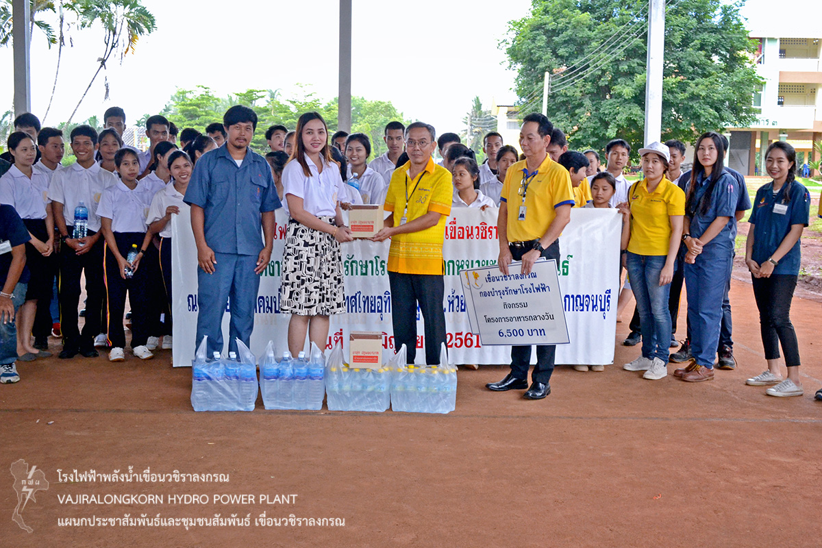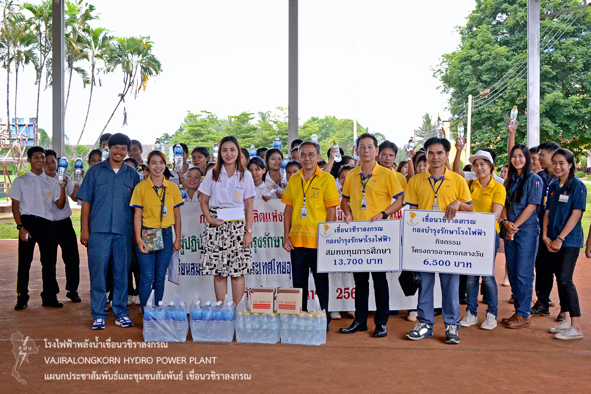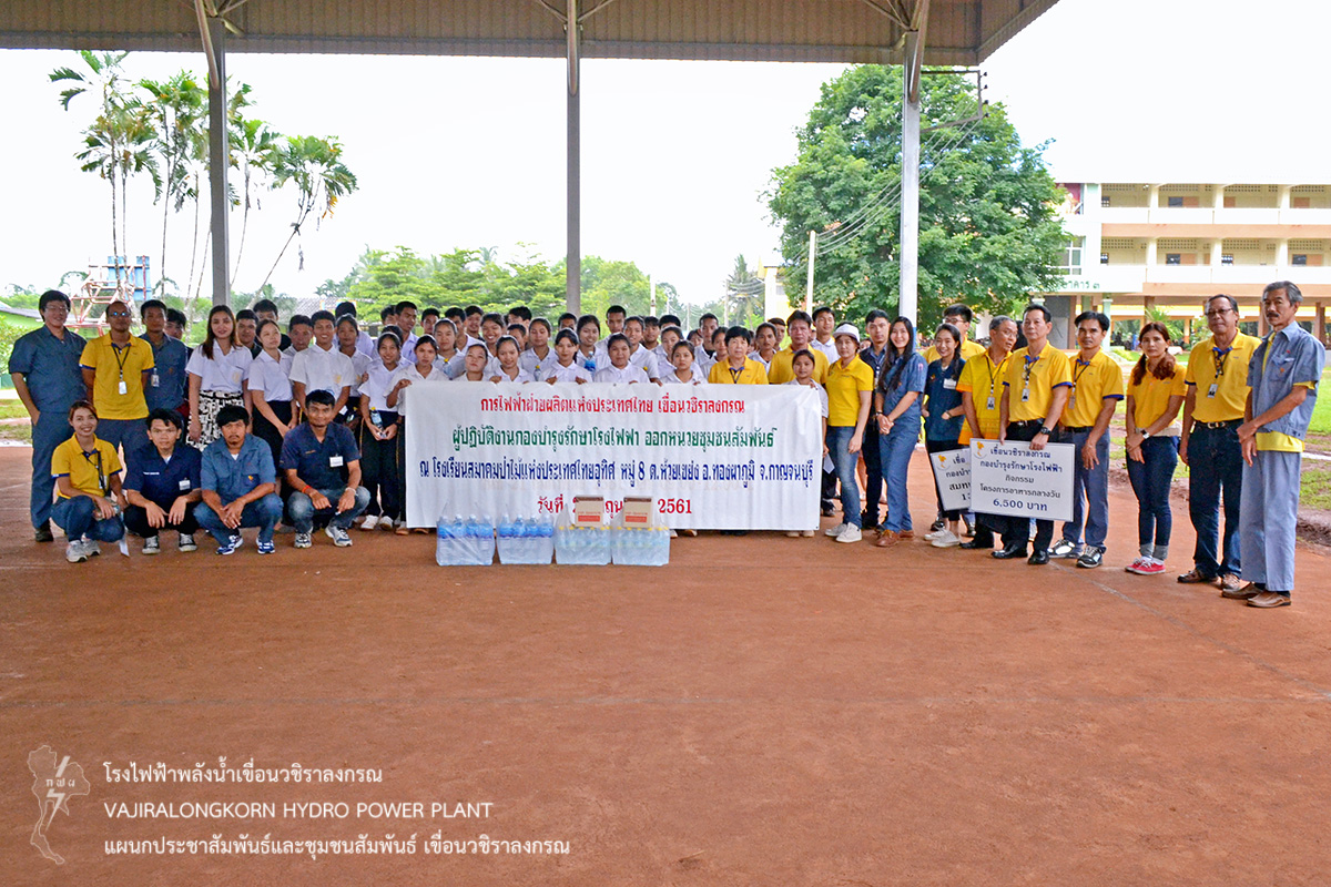 เมื่อวันที่ 27 มิถุนายน 2561 นายอภิรักษ์ ทองโต หัวหน้ากองบำรุงรักษาโรงไฟฟ้า เขื่อนวชิราลงกรณ นายมาโนช เอกะกุลานันต์ ช่างระดับ 10 กองบำรุงรักษาโรงไฟฟ้า เขื่อนวชิราลงกรณ พร้อมด้วยผู้ปฏิบัติงานกองบำรุงรักษาโรงไฟฟ้า จัดออกหน่วยโครงการชุมชนสัมพันธ์ ณ โรงเรียนสมาคมป่าไม้แห่งประเทศไทยอุทิศ หมู่ที่ 8 ตำบลห้วยเขย่ง อำเภอทองผาภูมิ จังหวัดกาญจนบุรี โดย มอบเงินสมทบทุนการศึกษา จำนวน 13,700 บาท มอบเงินสนับสนุนโครงการอาหารกลางวันนักเรียน จำนวน 6,500 บาท มอบน้ำดื่มและยาสามัญประจำบ้าน ให้กับคณะครูและนักเรียนโรงเรียนสมาคมป่าไม้แห่งประเทศไทยอุทิศ สำหรับไว้ใช้ในภารกิจของโรงเรียน