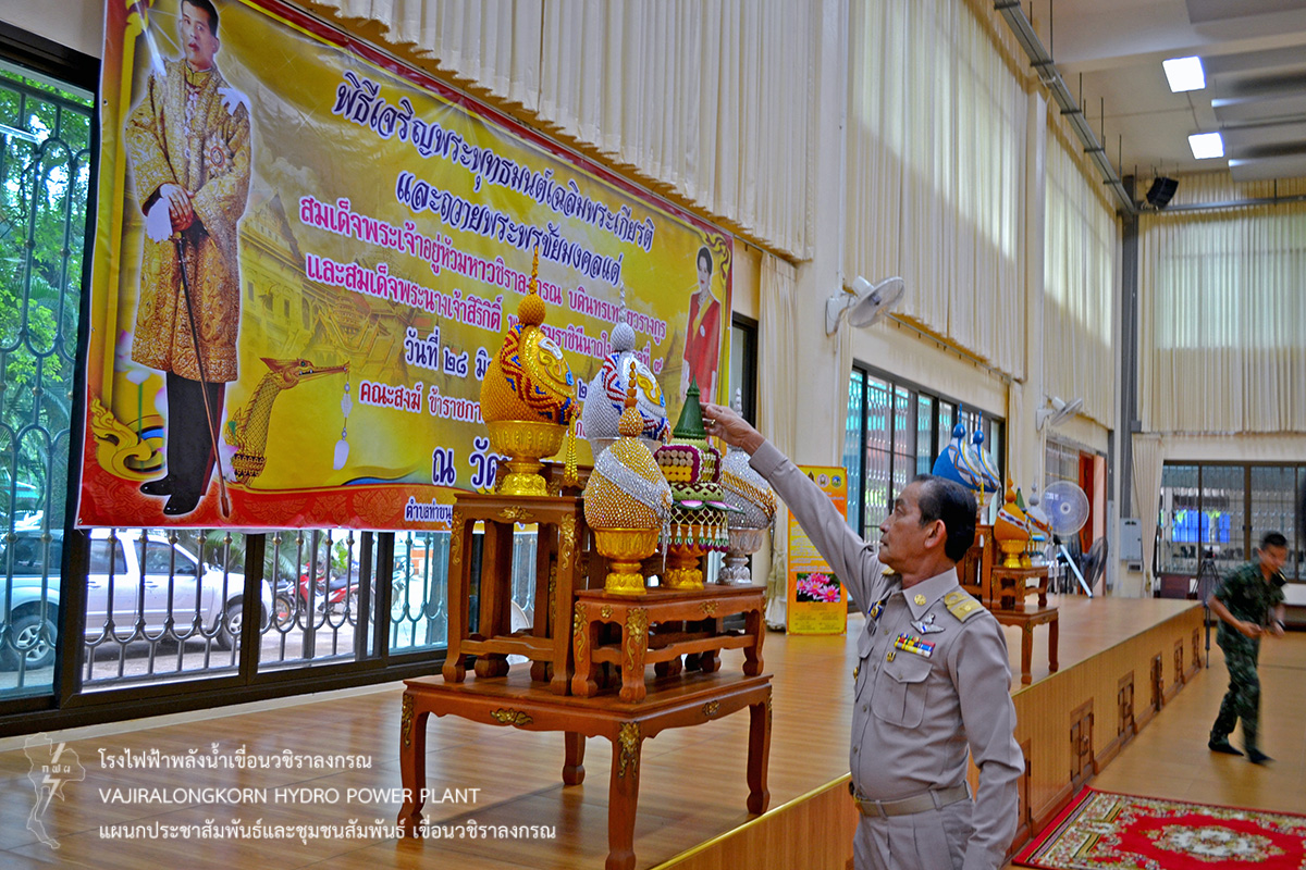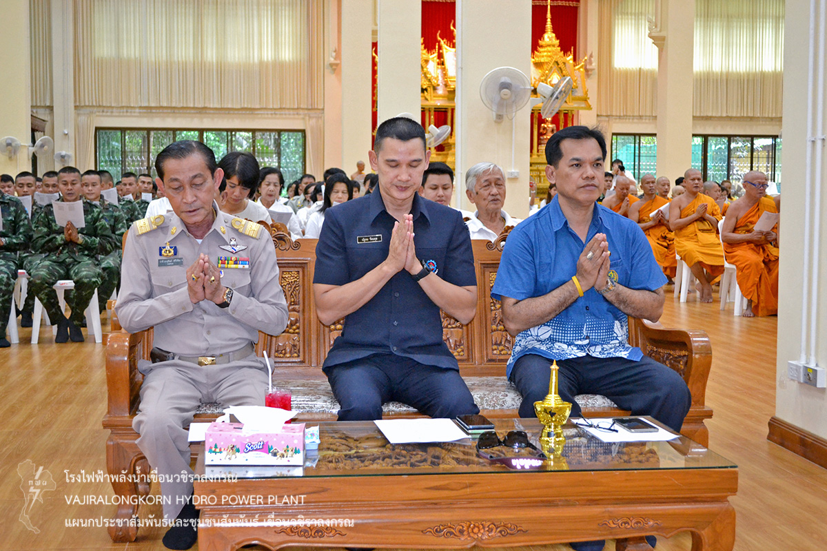 วันที่ 28 มิถุนายน 2561 นายธนสาร ฐานะวุฒฑ์ วิศวกรระดับ11 เขื่อนวชิราลงกรณ พร้อมด้วยนายสม ขุมโมกข์ หัวหน้าแผนกประชาสัมพันธ์และชุมชนสัมพันธ์ เขื่อนวชิราลงกรณ นายวิชิต ขวัญสูนู หัวหน้าแผนกรักษาความปลอดภัยเขื่อนวชิราลงกรณ ร่วมพิธีเจริญพระพุทธมนต์เฉลิมพระเกียรติและถวายพระพรชัยมงคล สมเด็จพระเจ้าอยู่หัวมหาวชิราลงกรณ บดินทรเทพยวรางกูรและสมเด็จพระนางเจ้าสิริกิติ์ พระบรมราชินีนาถในรัชกาลที่ 9 ณ วัดท่าขนุน ตำบลท่าขนุน อำเภอทองผาภูมิ จังหวัดกาญจนบุรี