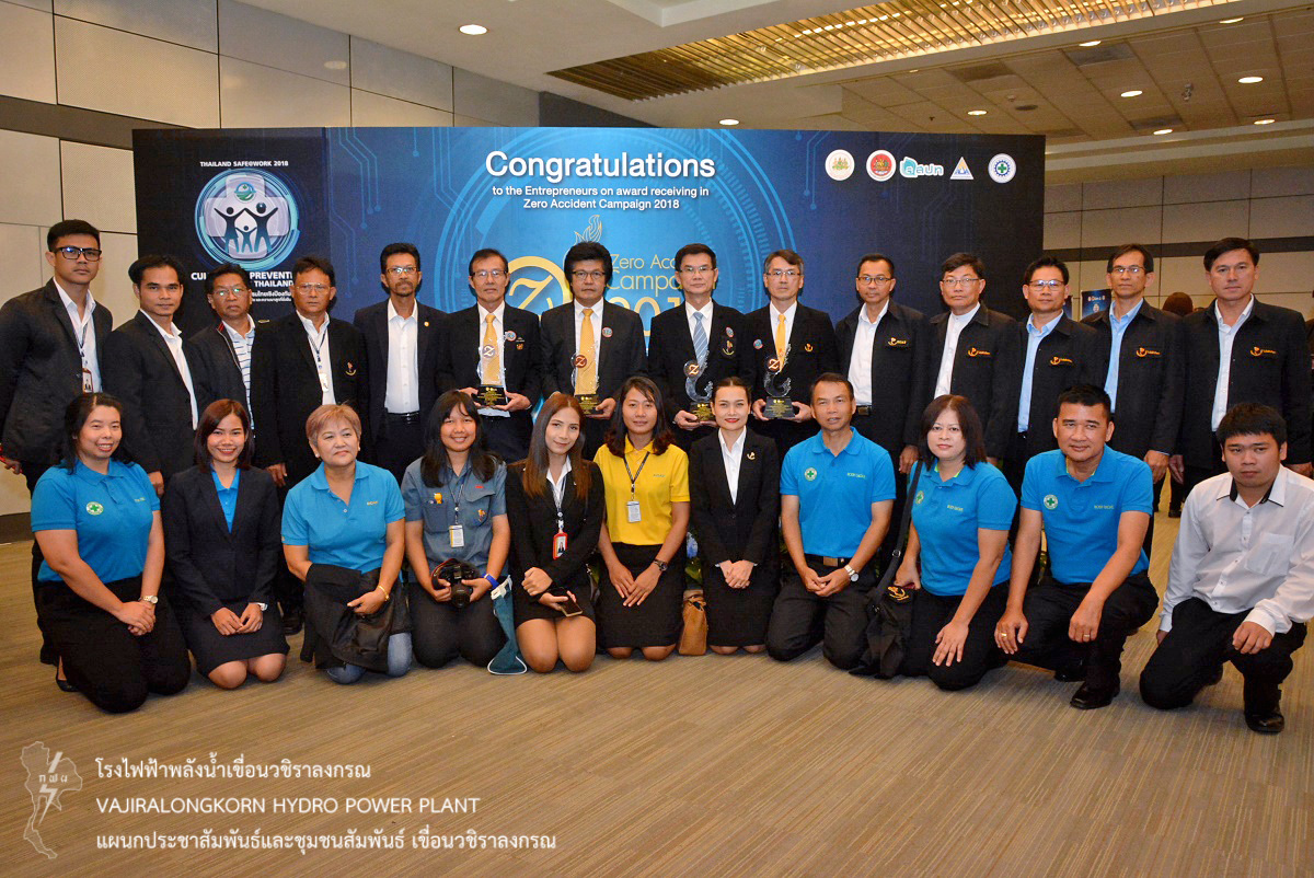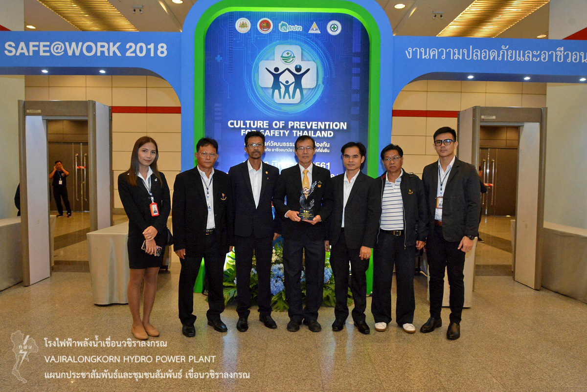 การไฟฟ้าฝ่ายผลิตแห่งประเทศไทย (กฟผ.) เขื่อนวชิราลงกรณ ได้รับโล่ประกาศเกียรติคุณ ระดับทองแดง (Zero Accident Campaign) ประจำปี 2561 จากสถาบันความปลอดภัยในการทำงาน กรมสวัสดิการและคุ้มครองแรงงาน กระทรวงแรงงาน