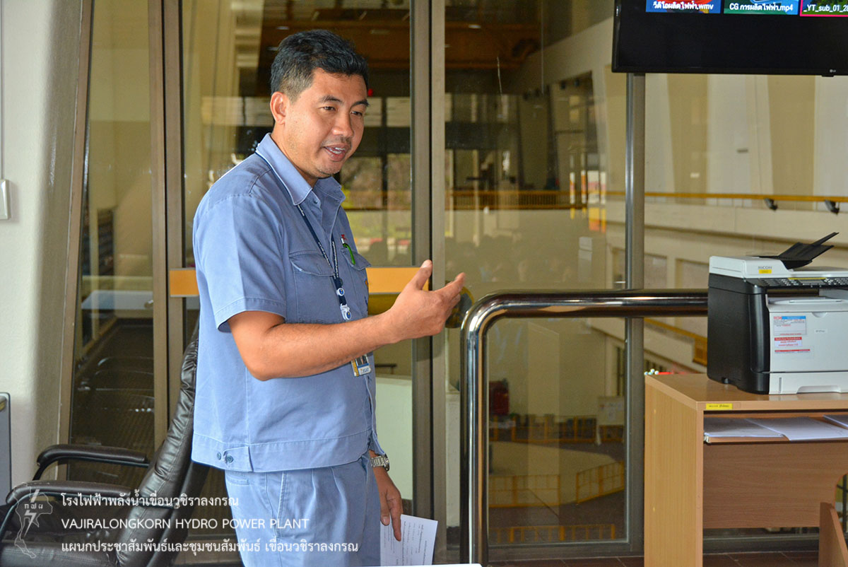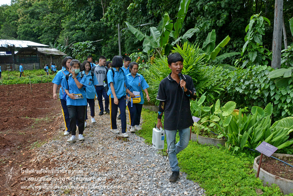 หลังจากนั้นนำคณะนักเรียนเข้าเยี่ยมชมศูนย์การเรียนรู้เศรษฐกิจพอเพียง รับการอบรมการทำน้ำยา EM ณ เรือนเพาะชำ โดยมีนายสันติภูมิ เซี่ยงไฮ้ ผู้ปฏิบัติงานแผนกบำรุงรักษาบริเวณ กองบำรุงรักษาโยธา เป็นวิทยากร ต่อมาเข้าชมโรงไฟฟ้าเขื่อนวชิราลงกรณ และฟังบรรยายสรุปขั้นตอนการผลิตไฟฟ้า โดยมีนายวิรัช ภู่ช้าง วิศวกรระดับ 9 ทำหน้าที่แทนหัวหน้าแผนกเดินเครื่องกะ 4 กองเดินเครื่อง เขื่อนวชิราลงกรณ เป็นวิทยากร