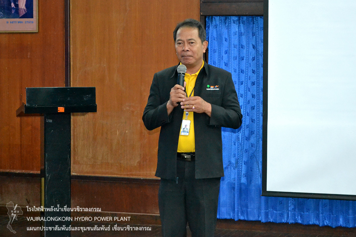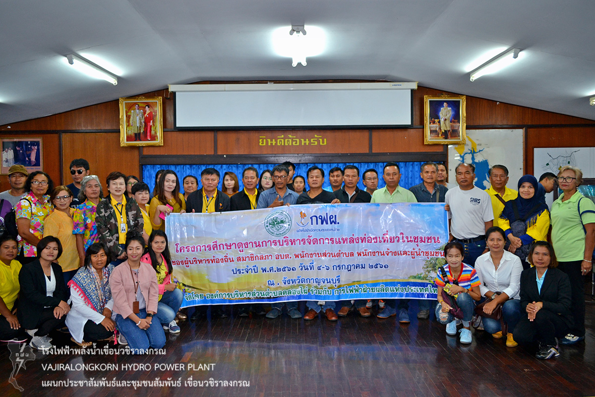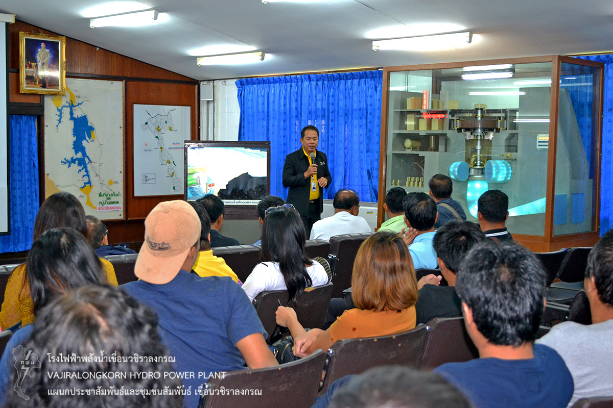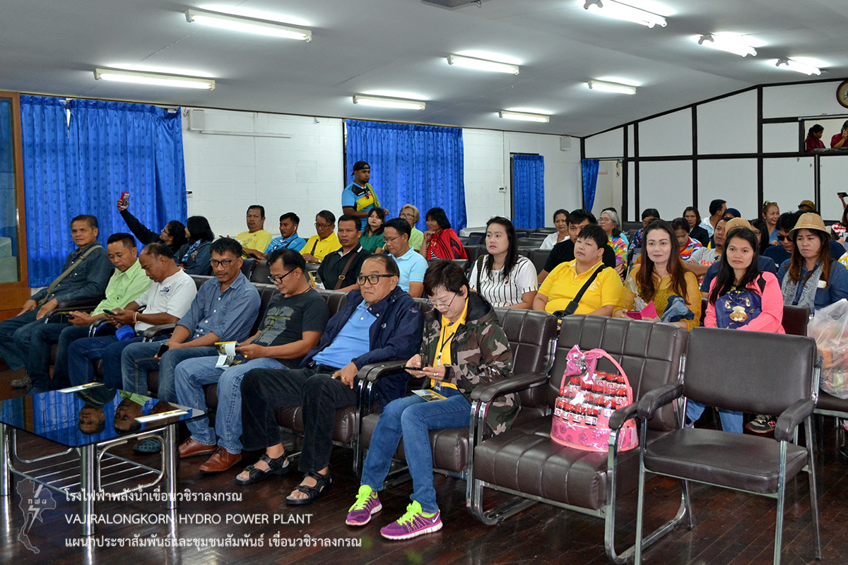 เมื่อวันที่ 6 กรกฎาคม 2561 นายสุรพล กองแก้ว หัวหน้ากองบริหาร เขื่อนวชิราลงกรณ ให้การต้อนรับ นายมุตตอฟาร์ ศรีรานี นายก อบต.คลองไผ่ และนางอรวรรณ กอบวิทยา พนักงานวิชาชีพระดับ 10 กองโรงไฟฟ้าลำตะคองชลภาวัฒนา โรงไฟฟ้าพลังน้ำภาคตะวันออกเฉียงเหนือ ในโอกาสนำชุมชนรอบกองโรงไฟฟ้าลำตะคองชลภาวัฒนา อำเภอสีคิ้ว จังหวัดนครราชสีมา จำนวน 80 คน ฟังบรรยายประวัติความเป็นมาของเขื่อนวชิราลงกรณและการพัฒนาคุณภาพชีวิตของชุมชนเขื่อนวชิราลงกรณ ณ ห้องบรรยายแผนกประชาสัมพันธ์