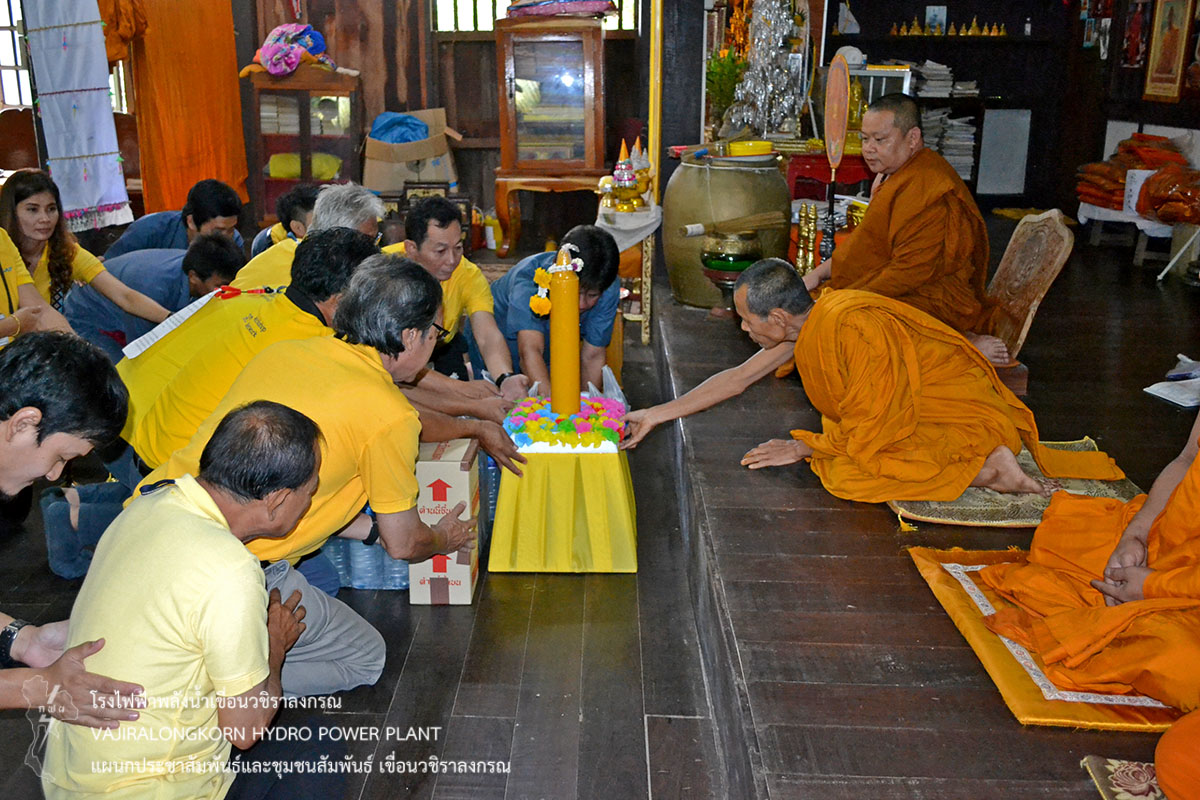 เมื่อวันที่ 19 กรกฎาคม 2561 นายอภิรักษ์ ทองโต หัวหน้ากองบำรุงรักษาโรงไฟฟ้า เขื่อนวชิราลงกรณ พร้อมด้วยผู้บริหารและผู้ปฏิบัติงานกองบำรุงรักษาโรงไฟฟ้า เข้าร่วมถวายเทียนจำนำพรรษา น้ำดื่มทิพย์แควน้อย ยาสามัญประจำบ้าน พร้อมเงินทำบุญ ณ วัดวังปะโท่ วัดห้วยเขย่ง วัดประจำไม้ และวัดไร่ป้า ตำบลห้วยเขย่ง อำเภอทองผาภูมิ จังหวัดกาญจนบุรี เพื่อเป็นการสืบสานพระพุทธศาสนาให้เจริญรุ่งเรืองตลอดไป