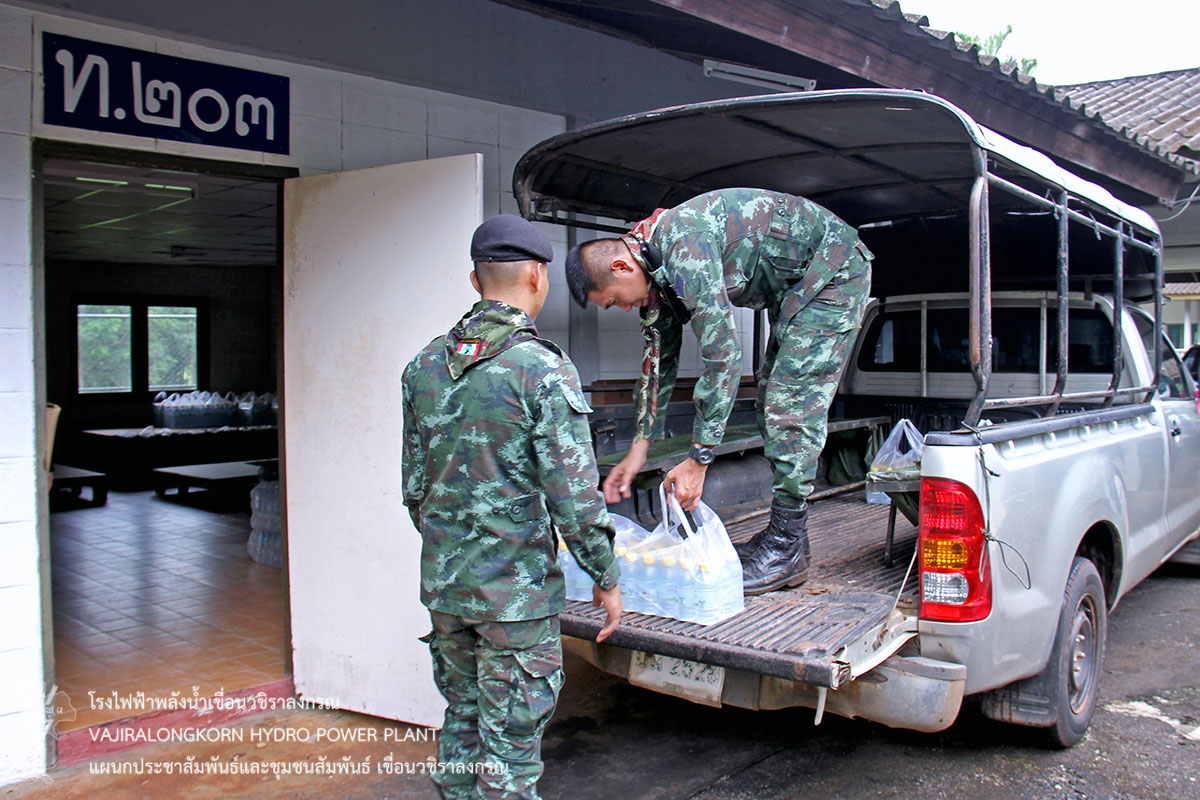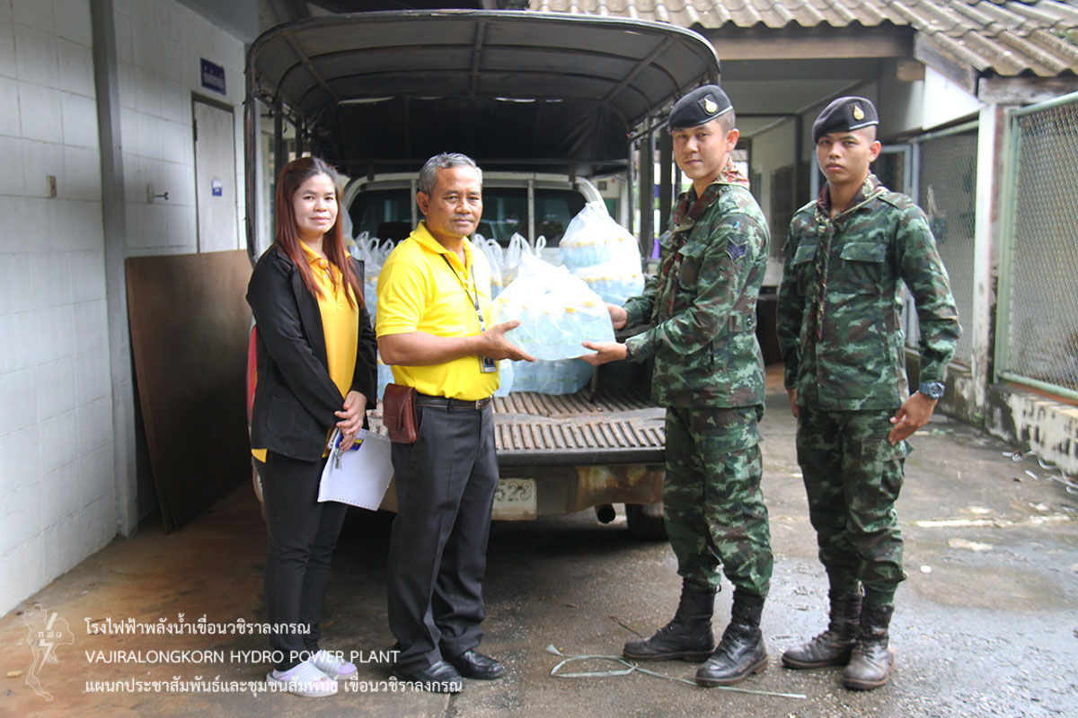 เมื่อวันที่ 19 กรกฎาคม 2561 นายครองธรรม ศรีเทพ หัวหน้าแผนกพัสดุ กองบริหารเขื่อนวชิราลงกรณ เป็นตัวแทนผู้อำนวยการเขื่อนวชิราลงกรณ มอบน้ำดื่มทิพย์แควน้อย ขนาดความจุ 350 ซีซี จำนวน 1,000 ขวด ให้กับ สอ.อนิรุทธิ์ ธงจันทร์ ผู้แทนรองผู้บังคับหน่วยเฉพาะกิจลาดหญ้า กองกำลังค่ายสุรสีห์ ตำบลท่าขนุน อำเภอทองผาภูมิ จังหวัดกาญจนบุรี เพื่อนำไปใช้ในกิจกรรมปลูกป่าตามโครงการ “กองทัพบกอาสาปลูกป่า สร้างฝาย สืบสานพระราชปณิธาร” ประจำปีงบประมาณ พ.ศ.2561 เนื่องในโอกาสวันเฉลิมพระชนมพรรษา 66 พรรษา สมเด็จพระเจ้าอยู่หัวมหาวชิราลงกรณ บดินเทพยวรางกูร ในวันที่ 24 กรกฎาคม 2561 ณ บริเวณป่าชุมชนบ้านสะพานลาว ตำบลสหกรณ์นิคม อำเภอทองผาภูมิ จังหวัดกาญจนบุรี