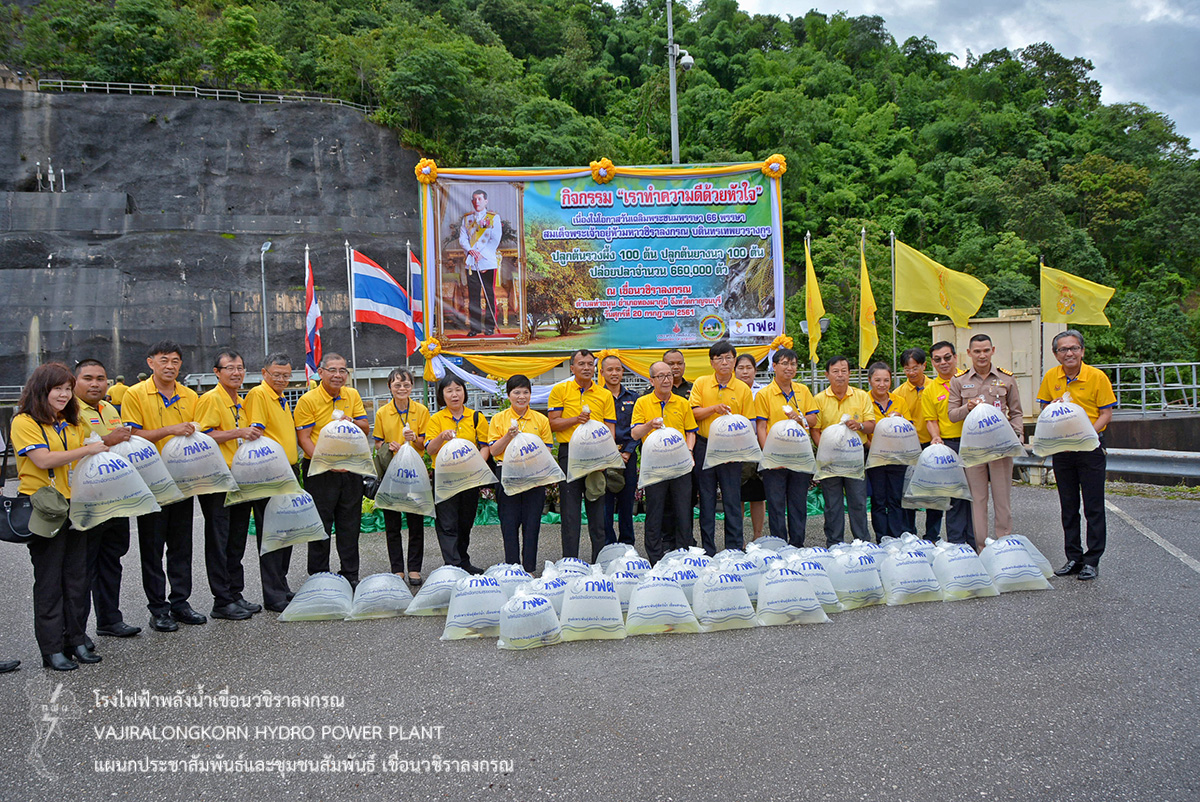 ดร.ศิริ จิระพงษ์พันธ์ รัฐมนตรีว่าการกระทรวงพลังงาน กล่าวว่า เขื่อนวชิราลงกรณ เป็นเขื่อนที่ในหลวงรัชกาลที่ 9 ทรงพระกรุณาโปรดเกล้าฯ พระราชทานนามตามพระนามาภิไธยในสมเด็จพระเจ้าอยู่หัวมหาวชิราลงกรณ บดินทรเทพยวรางกูร เมื่อวันที่ 13 กรกฎาคม 2544 แทนชื่อเขื่อนเขาแหลมเดิม ยังความปลาบปลื้มให้กับปวงชนชาวไทย และเนื่องในโอกาสวันเฉลิม พระชนมพรรษา 66 พรรษา กระทรวงพลังงาน จึงได้ร่วมกับ กฟผ. และประชาชนอำเภอทองผาภูมิ จัดกิจกรรม “เราทำความดีด้วยหัวใจ” เพื่อแสดงออกถึงความจงรักภักดีและสำนึกในพระมหากรุณาธิคุณสมเด็จพระเจ้าอยู่หัว ด้วยการทำความดี โดยร่วมกันปลูกต้นรวงผึ้ง ซึ่งเป็นต้นไม้ประจำรัชกาล จำนวน 100 ต้น ปลูกต้นยาง จำนวน 100 ต้น เพื่อเพิ่มพื้นที่สีเขียวและช่วยลดโลกร้อน และปล่อยพันธุ์ปลา จำนวน 660,000 ตัว เพื่อช่วยขยายพันธุ์ปลาน้ำจืด สามารถสร้างอาชีพและรายได้ให้กับชุมชน รวมถึงสร้างระบบนิเวศและเป็นแหล่งอาหารให้กับชุมชนอีกทางหนึ่ง ซึ่งการทำความดีด้วยหัวใจนี้จะทำให้ประเทศชาติเจริญรุ่งเรืองและมีความผาสุกตลอดไป