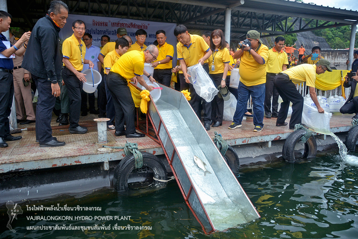กระทรวงพลังงาน กฟผ. และชาวอำเภอทองผาภูมิ ร่วมกิจกรรม “เราทำความดีด้วยหัวใจ” ปลูกต้นรวงผึ้ง ต้นยางนา พร้อมปล่อยพันธุ์ปลา เนื่องในโอกาสวันเฉลิมพระชนมพรรษา 66 พรรษา สมเด็จพระเจ้าอยู่หัวมหาวชิราลงกรณ บดินทรเทพยวรางกูร ณ เขื่อนวชิราลงกรณ จังหวัดกาญจนบุรี