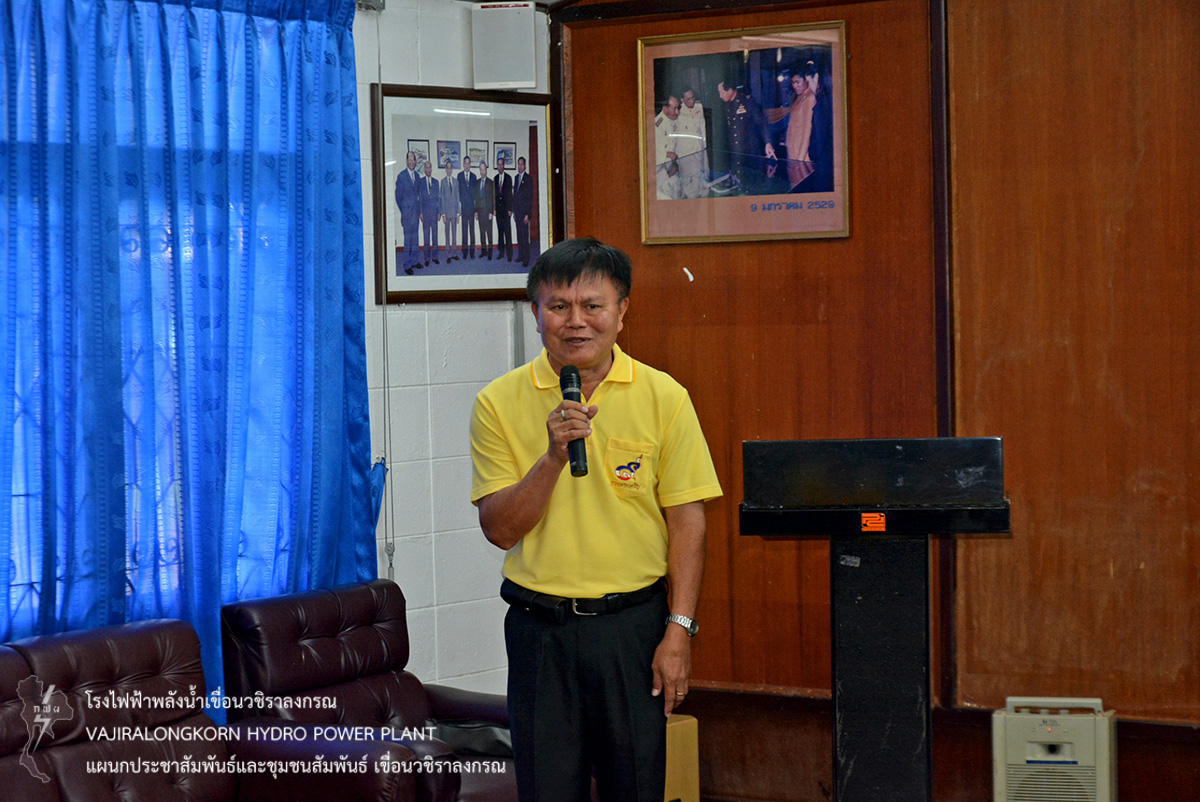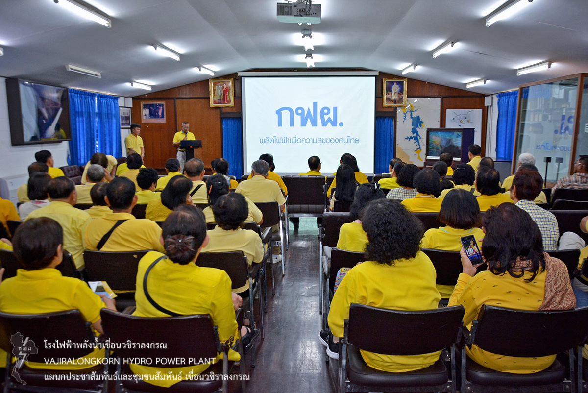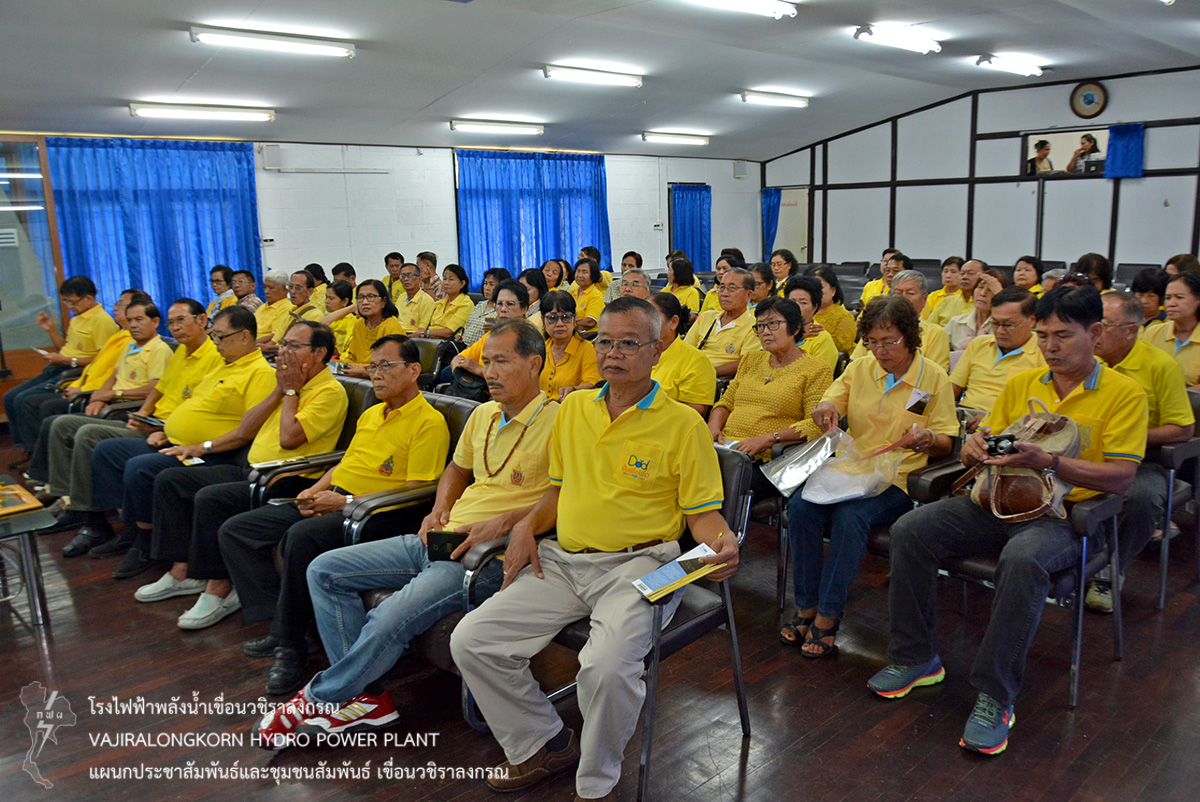 เมื่อวันที่ 21 กรกฎาคม 2561 นายสม ขุมโมกข์ หัวหน้าแผนกประชาสัมพันธ์และชุมชนสัมพันธ์ เขื่อนวชิราลงกรณ ให้การต้อนรับ นายประดิษฐ์ รังสิโยภาส ประธานชมรมราชการบำนาญ อำเภอวังทอง จังหวัดพิษณุโลก ในโอกาสนำข้าราชการบำนาญ อำเภอวังทอง จังหวัดพิษณุโลก จำนวน 70 คน เข้าศึกษาดูงานเกี่ยวกับการบริหารจัดการน้ำ ขั้นตอนการผลิตไฟฟ้า และความมั่นคงปลอดภัยเขื่อน ณ ห้องบรรยาย อาคารประชาสัมพันธ์ เขื่อนวชิราลงกรณ