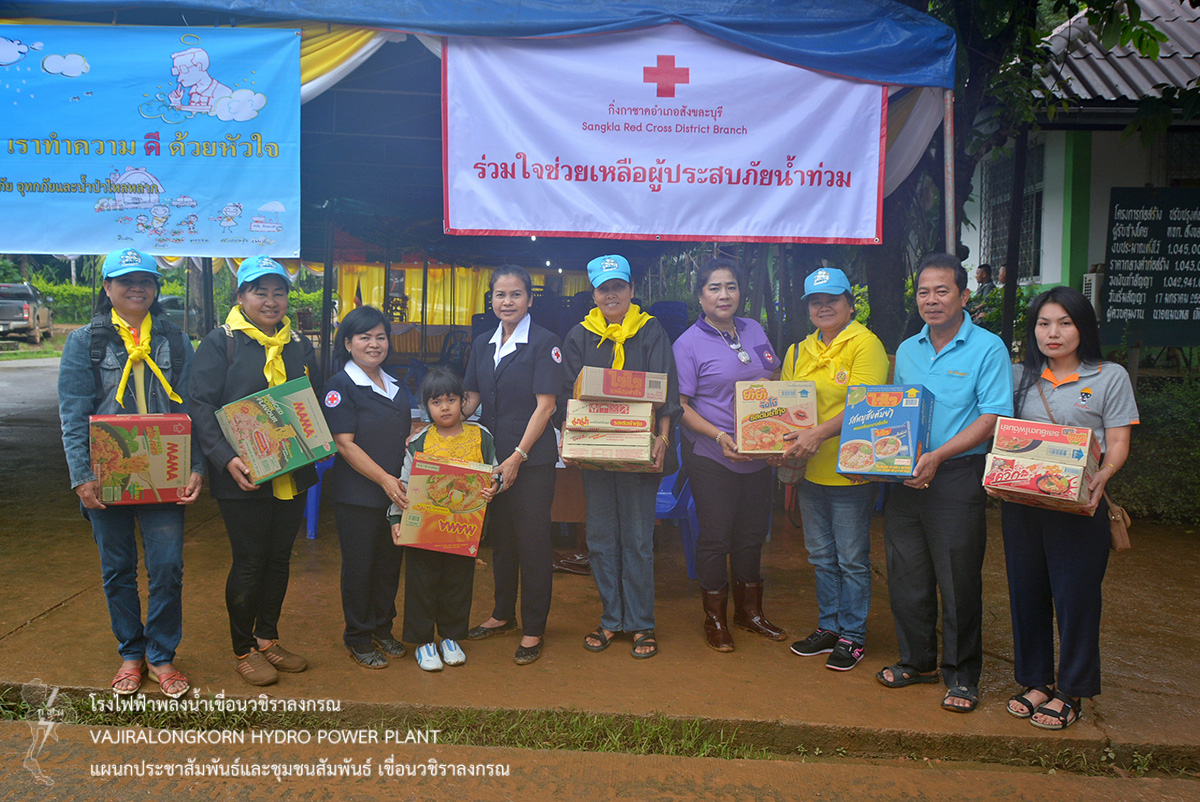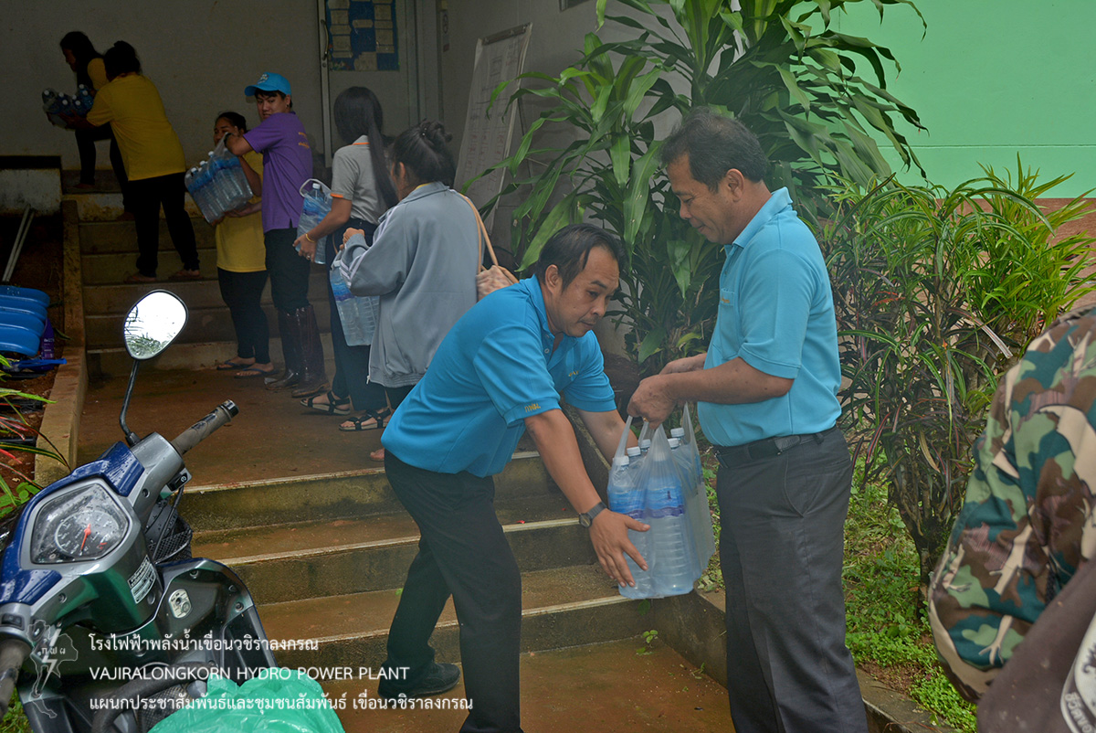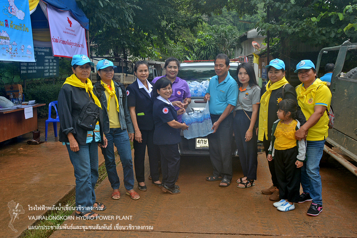เมื่อวันที่ 22 กรกฎาคม 2561 นายสุรพล กองแก้ว หัวหน้ากองบริหาร เป็นตัวแทน ผู้อำนวยการเขื่อนวชิราลงกรณ มอบน้ำดื่มทิพย์แควน้อย ขนาดความจุ 1500 ซีซี จำนวน 500 ขวด ส่งมอบน้ำดื่มให้กับ กิ่งกาชาดอำเภอสังขละบุรี เพื่อนำไปให้ความช่วยเหลือพี่น้อง บ้านสะเน่พ่อง ตำบลไล่โว่ อำเภอสังขละบุรี จังหวัดกาญจนบุรี ที่ประสบอุทกภัยน้ำท่วม