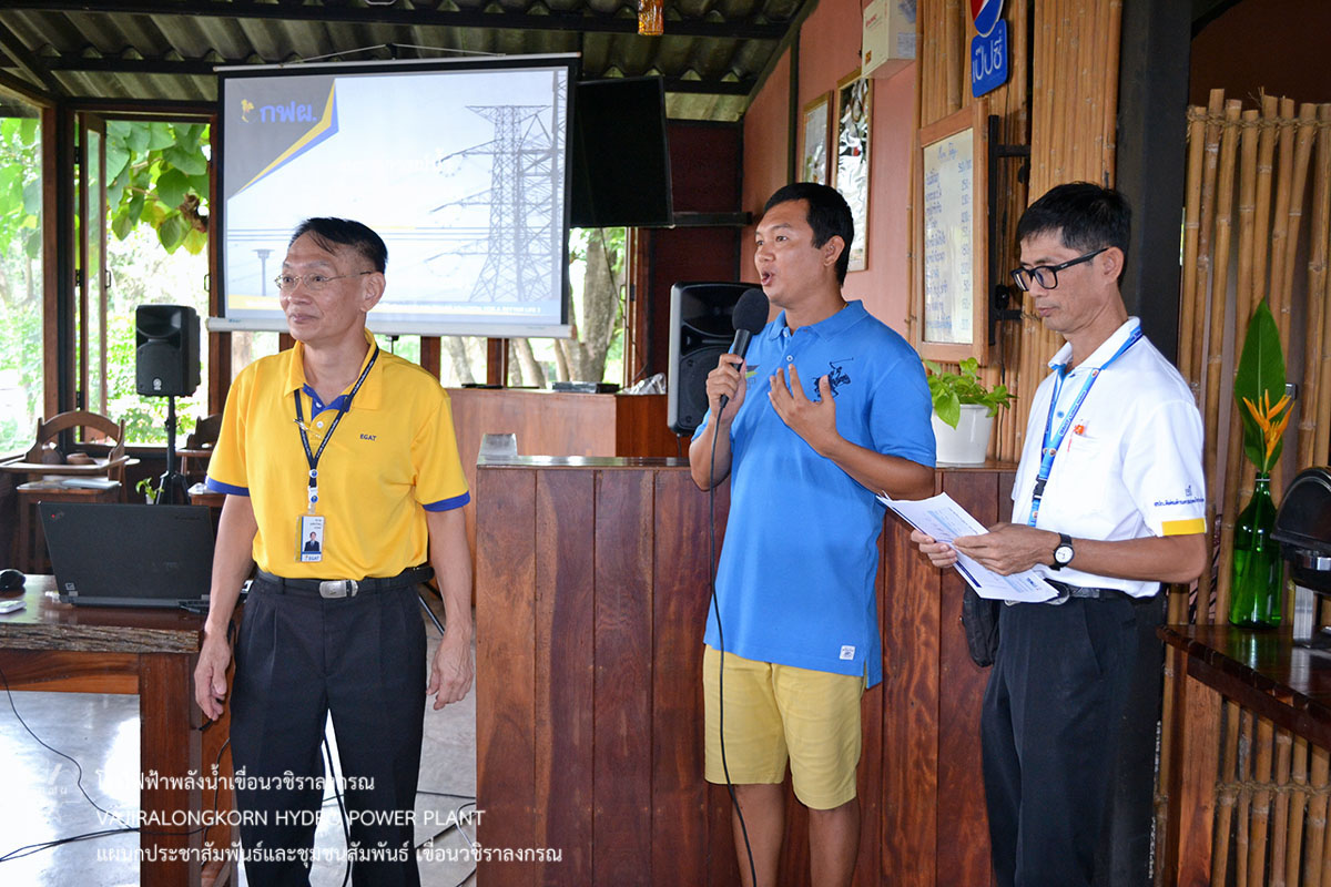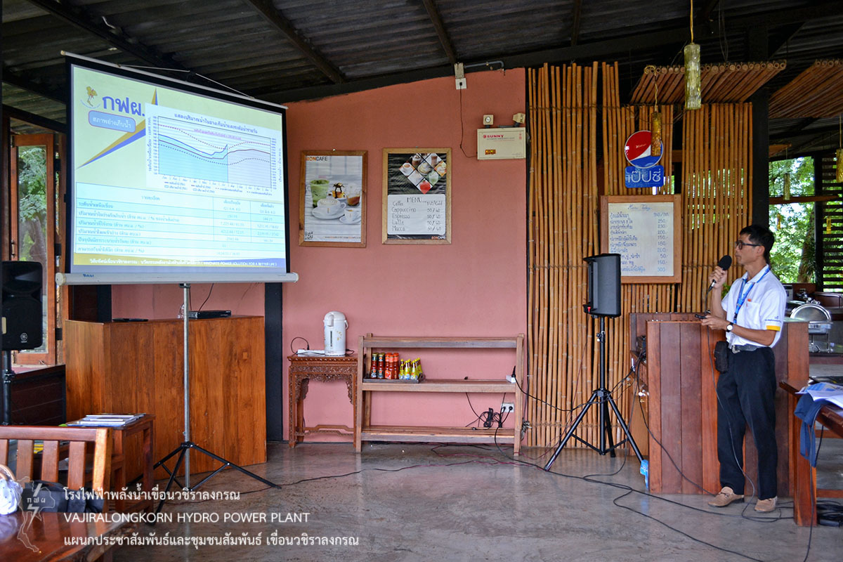 เมื่อวันที่ 2 สิงหาคม 2561 นายศราวุธ ธนศิลปวิทยา ผู้ช่วยผู้อำนวยการเขื่อนวชิราลงกรณ-ปฏิบัติการ (ช.อขว-ป.) นายบุญทรง ปิตานนชัยท์ ผู้ช่วยผู้อำนวยการฝ่ายสำรวจ (ช.อสร) สำนักงานกลาง กฟผ. นายไพรัตน์ ทับประเสริฐ ผู้อำนวยการส่วนบริหารจัดการน้ำและบำรุงรักษา สำนักงานชลประทานที่ 13 พร้อมด้วยผู้ปฏิบัติงานแผนกเดินเครื่องเขื่อนวชิราลงกรณ จัดประชุมชี้แจงสถานการณ์น้ำในอ่างเก็บน้ำเขื่อนวชิราลงกรณ และตอบข้อกังวลใจ ในโอกาสนี้มีผู้ประกอบการรีสอร์ทในลุ่มแม่น้ำแควกว่า 30 รีสอร์ท เข้ารับฟังการชี้แจง ณ บูติค ราฟท์ รีสอร์ท ต.ท่าเสา อ.ไทรโยค จ.กาญจนบุรี