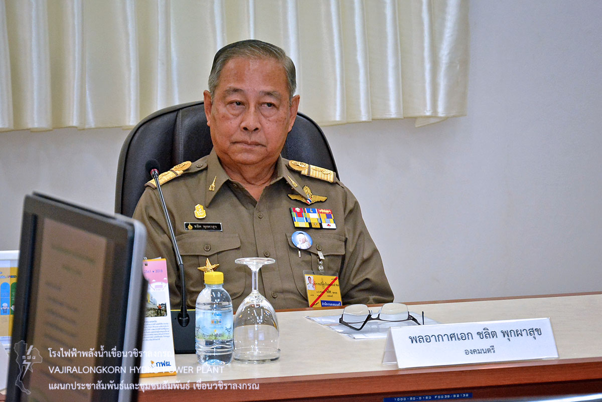 พลอากาศเอก ชลิต พุกผาสุข องคมนตรี กล่าวว่า “ขอขอบคุณทุกภาคส่วนที่มีการดำเนินการโครงการอันเนื่องมาจากพระราชดำริเป็นอย่างดี โดยเฉพาะ กฟผ. เขื่อนวชิราลงกรณ ที่มีการเก็บรวบรวมพันธุ์กล้วย 100 กว่าสายพันธุ์ภายในโครงการอนุรักษ์พันธุกรรมพืช (อพ.สธ.) ด้านการบริหารจัดการน้ำขอให้คำนึงถึงความเดือดร้อนของประชาชนเป็นหลัก ซึ่งขณะนี้มีการจัดตั้ง ศูนย์เฉพาะกิจชั่วคราวในภาวะวิกฤต ซึ่งทำหน้าที่ติดตามสถานการณ์น้ำตลอด 24 ชั่วโมง มีส่วนช่วยให้การบริหารจัดการน้ำของ กฟผ. และหน่วยงานที่เกี่ยวข้อง มีความคล่องตัวมากยิ่งขึ้น สุดท้ายนี้ขอให้เขื่อนวชิราลงกรณบริหารจัดการน้ำให้อยู่ในเกณฑ์ควบคุม สามารถรองรับปริมาณน้ำฝนที่คาดว่าจะตกหนักในเดือนกันยายนต่อไป”