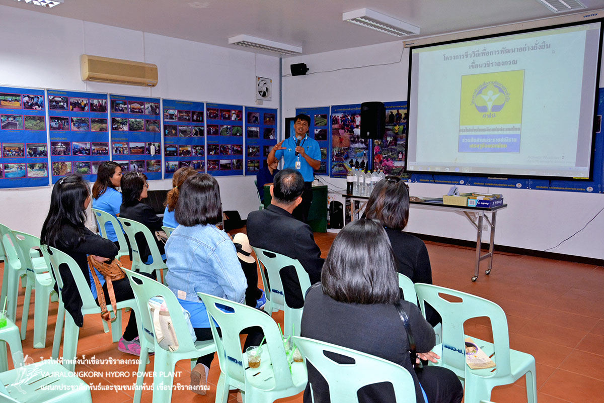 วันที่ 5 ตุลาคม 2561 นายอำนวย เข็มเงิน หัวหน้าแผนกบำรุงรักษาบริเวณ กองบำรุงรักษาโยธา เขื่อนวชิราลงกรณ ให้การต้อนรับนายรุ่ง อินสว่าง รักษาการผู้อำนวยการโรงเรียนวัดดงขี้เหล็ก ในโอกาสนำคณะครูโรงเรียนวัดดงขี้เหล็ก ตำบลวังหว้า อำเภอศรีประจันต์ จังหวัดสุพรรณบุรี จำนวน 10 คน เข้าฟังบรรยายโครงการชีววิถีเพื่อการพัฒนาอย่างยั่งยืน ณ เรือนเพาะชำ เขื่อนวชิราลงกรณ จากนั้นเดินทางเข้าชมโรงไฟฟ้าเขื่อนวชิราลงกรณ โดยมีนายเพชร ร่มโพธิ์ภักดิ์ วิศวกรระดับ 7 แผนกเดินเครื่องกะ 1 ให้การต้อนรับ