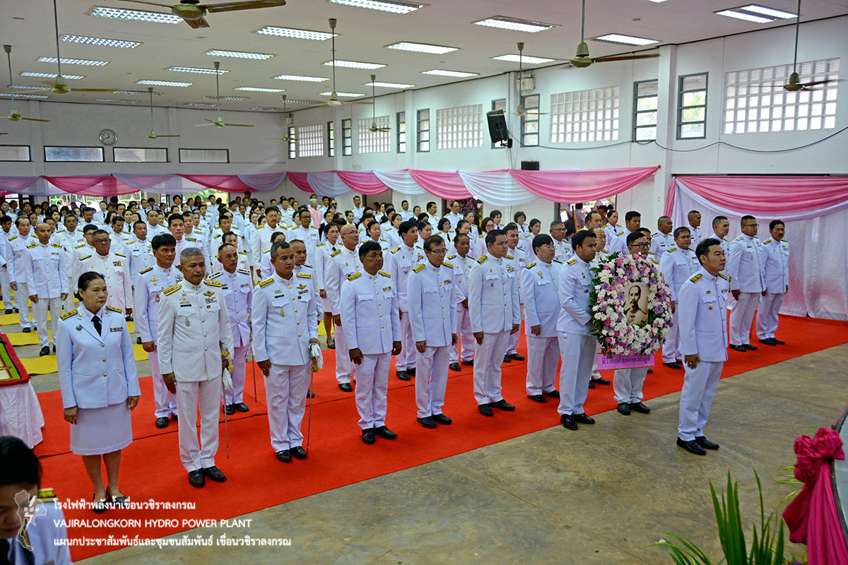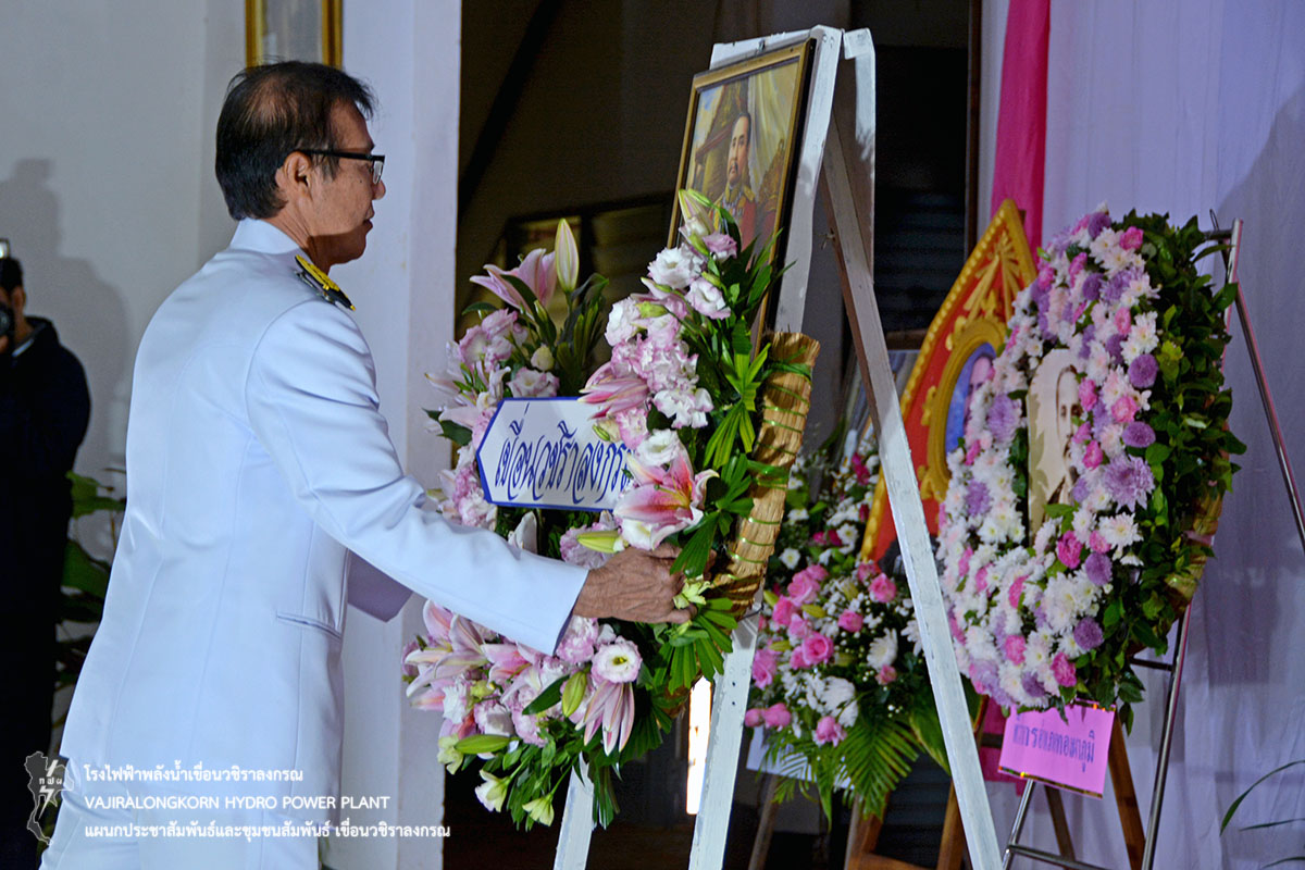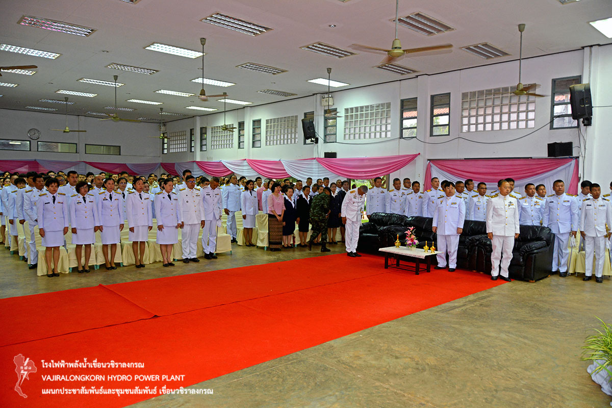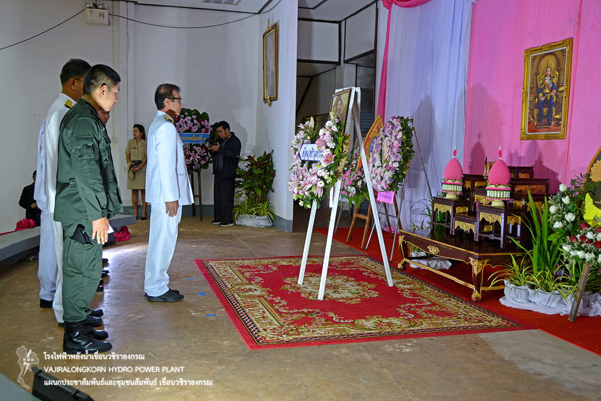 วันที่ 23 ตุลาคม 2561 ช่วงเช้านายไววิทย์ แสงพานิชย์ ผู้อำนวยการเขื่อนวชิราลงกรณ พร้อมด้วยนายนภฤทธิ์ ผดุงศรี ผู้ช่วยผู้อำนวยการเขื่อนวชิราลงกรณ-1. หัวหน้าแผนก และผู้ปฏิบัติงานเขื่อนวชิราลงกรณ ร่วมพิธีบำเพ็ญกุศลและกิจกรรมน้อมรำลึกเนื่องในวันคล้ายวันสวรรคตพระบาทสมเด็จพระจุลจอมเกล้าเจ้าอยู่หัว