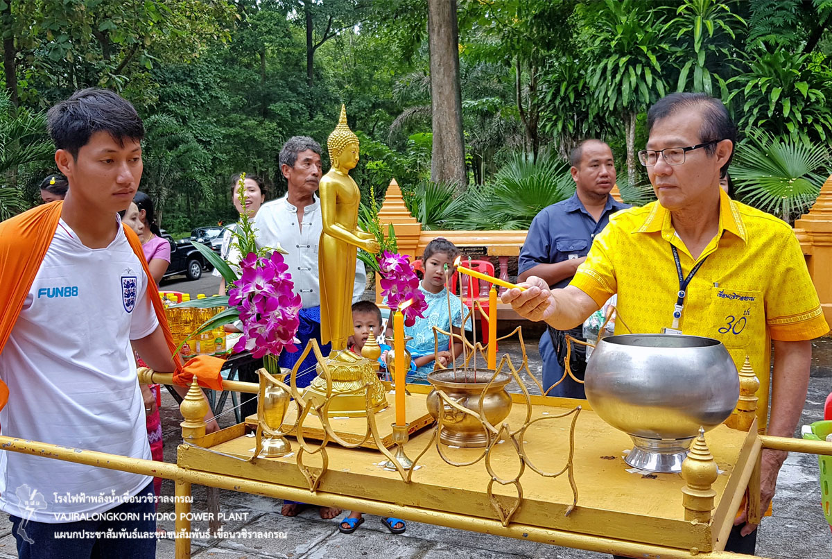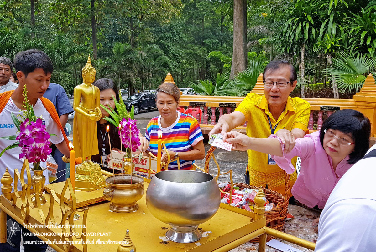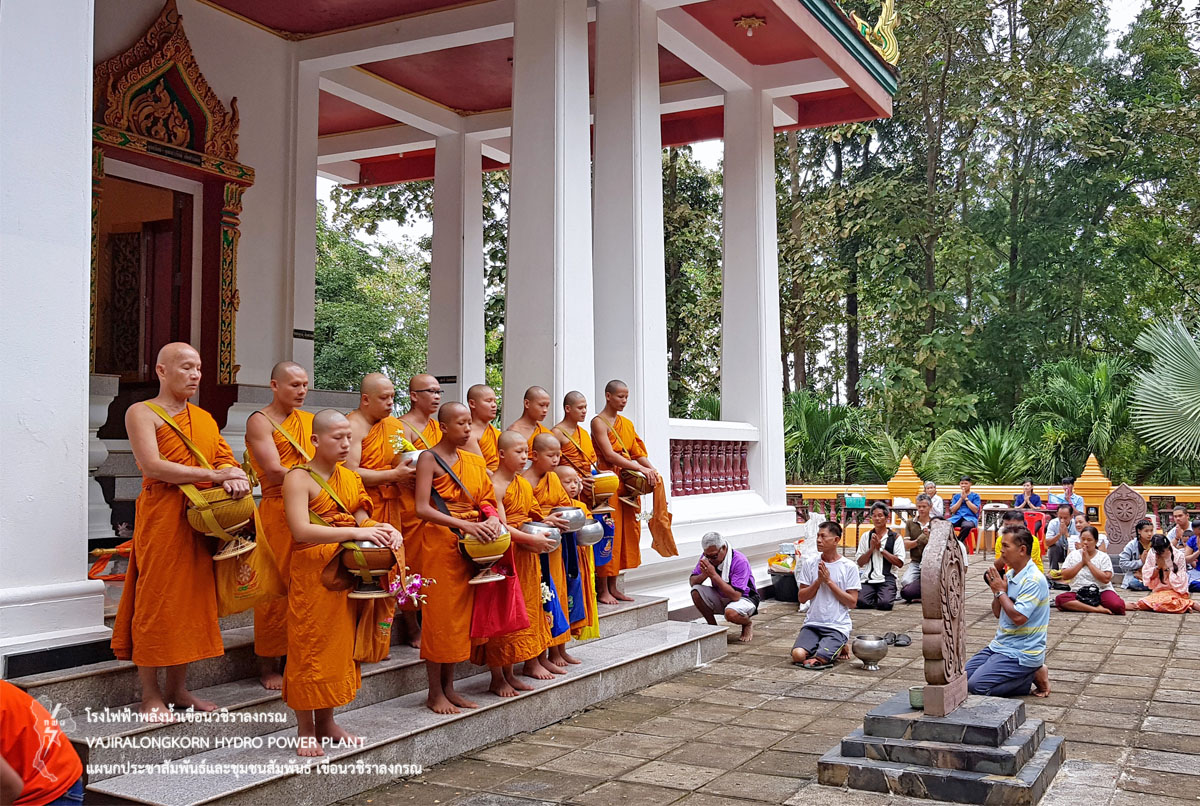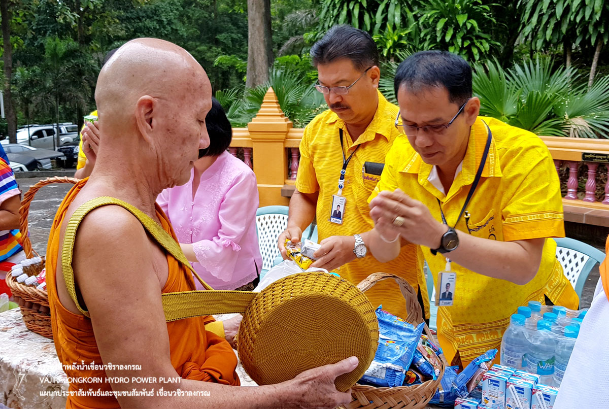 เมื่อวันที่ 25 ตุลาคม 2561 นายไววิทย์ แสงพานิชย์ ผู้อำนวยการเขื่อนวชิราลงกรณ พร้อมด้วยผู้บริหารและผู้ปฏิบัติงานเขื่อนวชิราลงกรณ และครอบครัว ร่วม “ประเพณีทำบุญตักบาตรเทโว ประจำปี 2561 ” เนื่องในวันออกพรรษา ณ วัดเขื่อนวชิราลงกรณ ตำบลท่าขนุน อำเภอทองผาภูมิ จังหวัดกาญจนบุรี โดยจัดพิธีตักบาตรข้าวสารอาหารแห้งแด่พระภิกษุสงฆ์และสามเณร และพิธีสมาทานศีล ฟังธรรม ทำบุญเลี้ยงพระสงฆ์ เพื่อสืบสานประเพณีที่ดีงามต่อไป