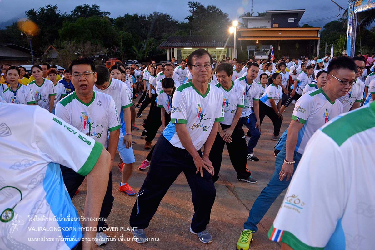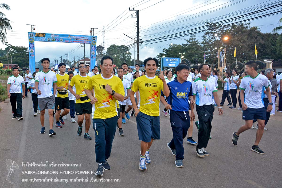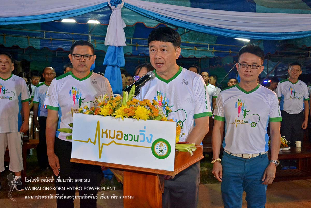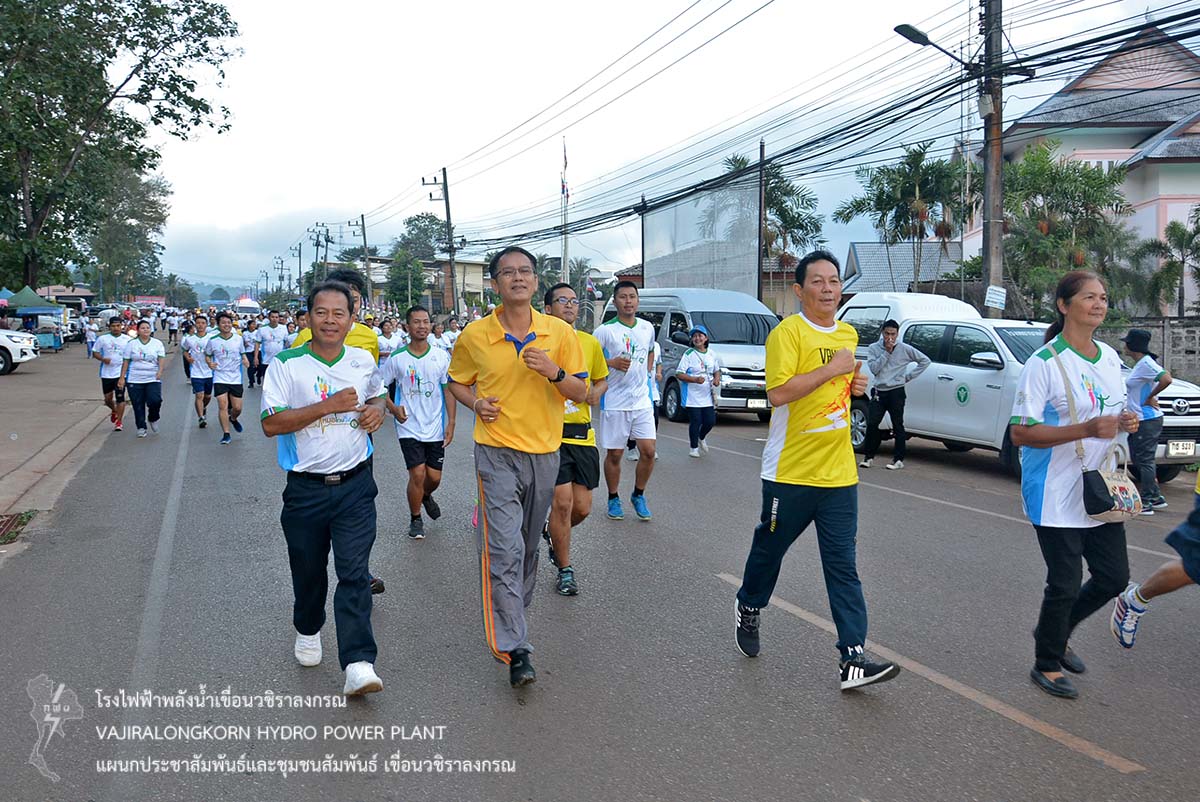 เมื่อวันที่ 19 พฤศจิกายน 2561 นายไววิทย์ แสงพานิชย์ ผู้อำนวยการเขื่อนวชิราลงกรณ นายธนสาร ฐานะวุฒฑ์ ผู้ช่วยผู้อำนวยการเขื่อนวชิราลงกรณ 2 นายอภิรักษ์ ทองโต วิศวกรระดับ11 พร้อมด้วยผู้บริหารและผู้ปฏิบัติงานเขื่อนวชิราลงกรณ ชมรมเดินวิ่งเขื่อนวชิราลงกรณ เข้าร่วมกิจกรรม "หมอชวนวิ่ง" เพื่อสร้างความร่วมมือระหว่างภาครัฐ เอกชนและประชาชน ในรูปแบบเสริมสร้างสุขภาพด้วยการออกกำลังกาย สร้างความตระหนักให้เห็นถึงความสำคัญในการดูแลสุขภาพของตนเอง ณ โรงพยาบาลทองผาภูมิ