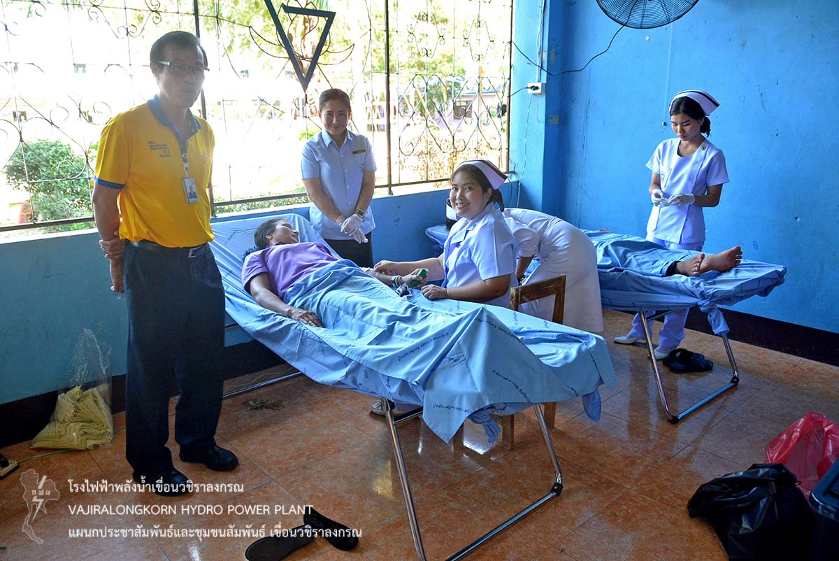 ในการนี้นายไววิทย์ แสงพานิชย์ ผู้อำนวยการเขื่อนวชิราลงกรณ เป็นผู้กล่าวรายงานถึงวัตถุประสงค์ของการจัดโครงการออกหน่วยแพทย์เคลื่อนที่ โดยมีคณะแพทย์ พยาบาล โรงพยาบาลสังขละบุรี ให้การตรวจรักษาโรคทั่วไป