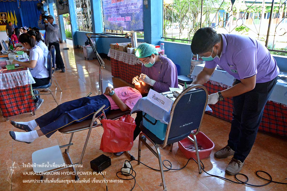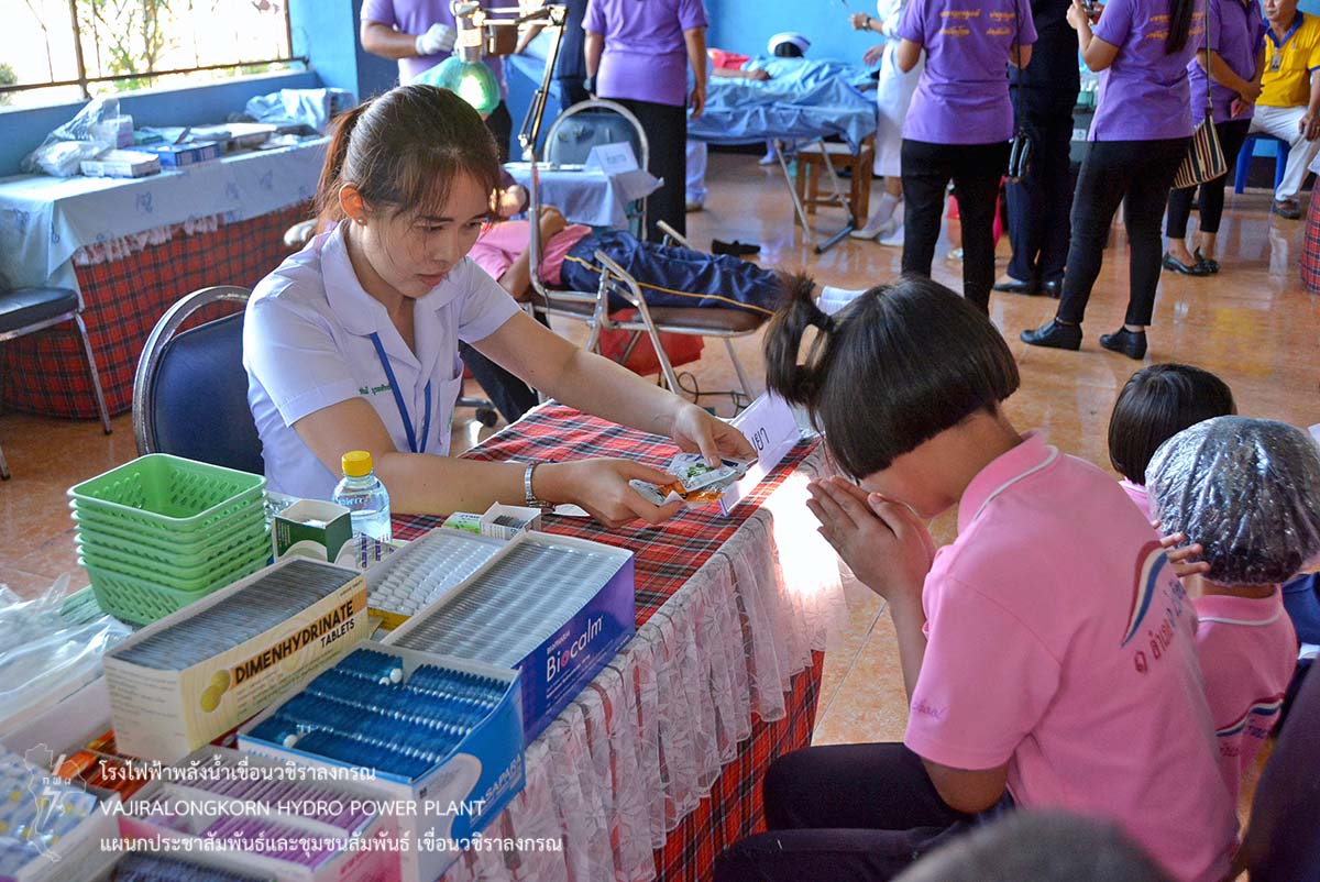 การไฟฟ้าฝ่ายผลิตแห่งประเทศไทย (กฟผ.) เขื่อนวชิราลงกรณ ร่วมกับโรงพยาบาลสังขละบุรี หน่วยเฉพาะกิจลาดหญ้า และกิ่งกาชาดอำเภอสังขละบุรี จัดหน่วยแพทย์เคลื่อนที่ ตรวจรักษาประชาชน โดยคณะแพทย์ผู้เชี่ยวชาญ พร้อมกับจัดโครงการชุมชนสัมพันธ์ ให้บริการตัดผม กำจัดเหาเด็กนักเรียน มอบอุปกรณ์กีฬา มอบยาสามัญประจำบ้าน มอบเงินสนับสนุนโครงการอาหารกลางวัน ณ โรงเรียนอนุบาลสังขละบุรี ตำบลหนองลู อำเภอสังขละบุรี จังหวัดกาญจนบุรี