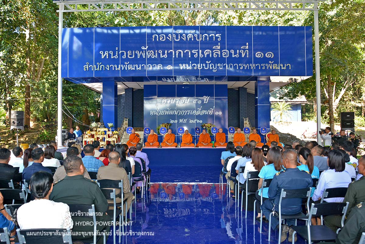 เมื่อวันที่ 23 พฤศจิกายน 2561 นายอภิรักษ์ ทองโต วิศวกรระดับ 11 เขื่อนวชิราลงกรณ เป็นตัวแทนผู้อำนวยการเขื่อนวชิราลงกรณ ร่วมงานวันคล้ายวันสถาปนาหน่วยงานพัฒนาการเคลื่อนที่ 11 สำนักงานพัฒนาภาค 1 หน่วยบัญชาการทหารพัฒนา กองบัญชาการกองทัพไทย ให้กับพันเอกปรีติ กุมภิรัตน์ ผู้บังคับหน่วยพัฒนาการเคลื่อนที่ 11 ณ หน่วยพัฒนาการเคลื่อนที่ 11 ตำบลท่าขนุน อำเภอทองผาภูมิ จังหวัดกาญจนบุรี