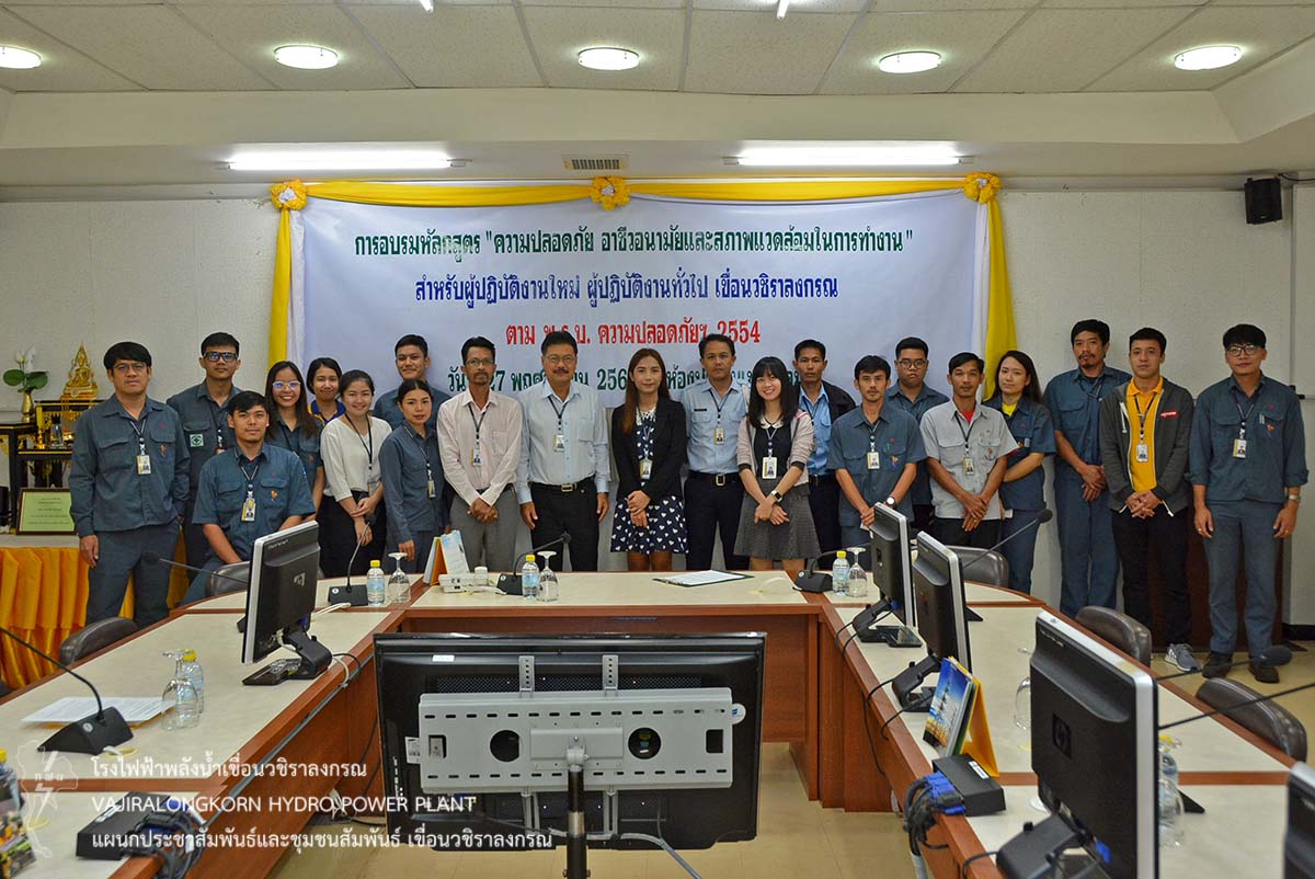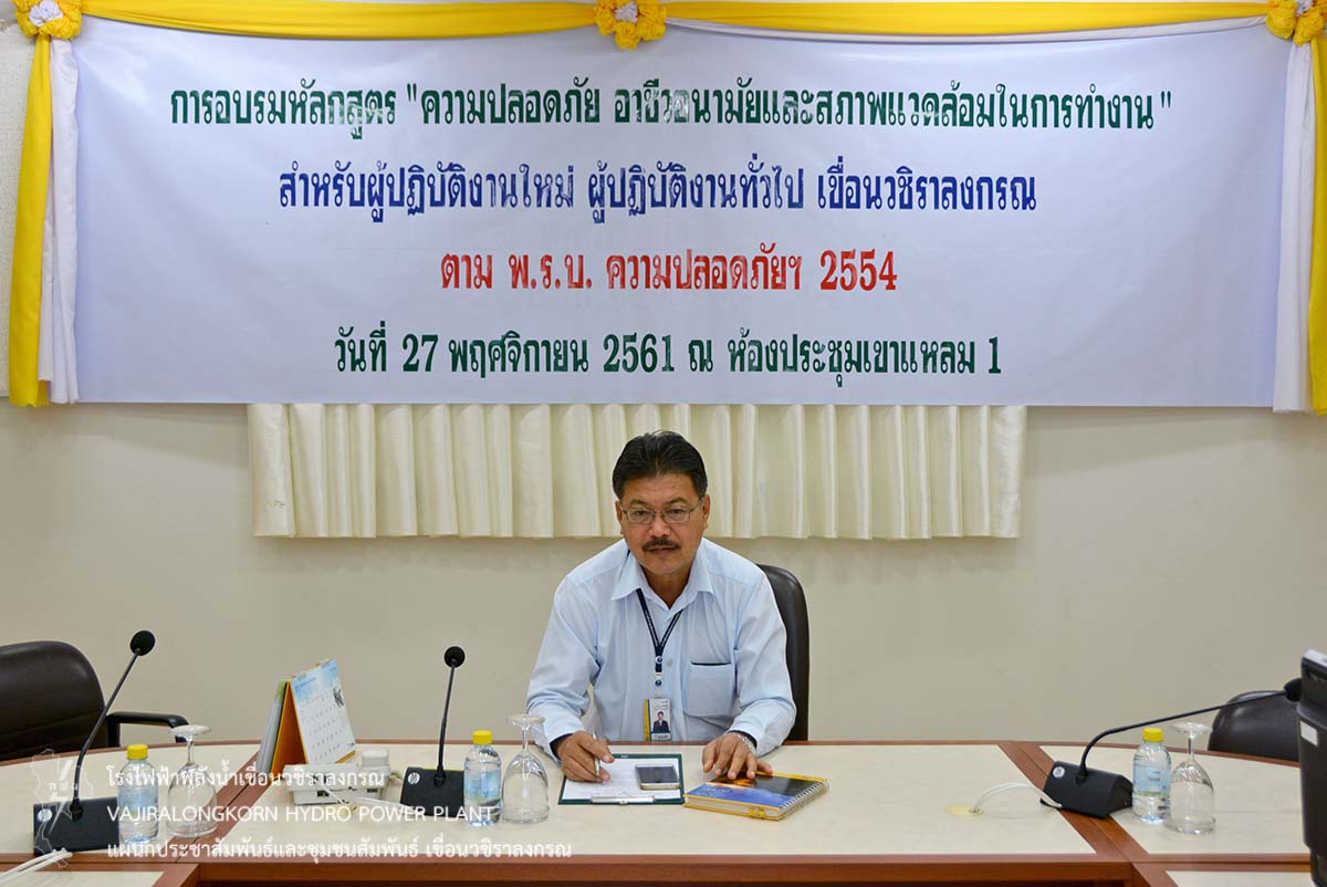 เมื่อวันที่ 27 พฤศจิกายน 2561 นายนภฤทธิ์ ผดุงศรี ผู้ช่วยผู้อำนวยการเขื่อนวชิราลงกรณ1 เป็นประธานเปิดการอบรมหลักสูตร"ความปลอดภัย อาชีวอนามัยและสภาพแวดล้อมในการทำงาน" ณ ห้องประชุมเขาแหลม 1 ที่ทำการเขื่อนวชิราลงกรณ โดยมีนายไชยยา สุขสมมล หัวหน้าแผนกความปลอดภัย อาชีวอนามัย และสภาพแวดล้อมในการทำงาน นายกันตินันท์ เพชรปัญญา นักวิทยาศาสตร์ระดับ 6 แผนกความปลอดภัย อาชีวอนามัย และสภาพแวดล้อมในการทำงาน เป็นวิทยากร ให้ความรู้แก่ผู้ปฏิบัติงานใหม่ ผู้ปฏิบัติงานทั่วไป เขื่อนวชิราลงกรณ ให้มีความรู้ ความเข้าใจ และทักษะที่จำเป็นในการทำงานอย่างปลอดภัย